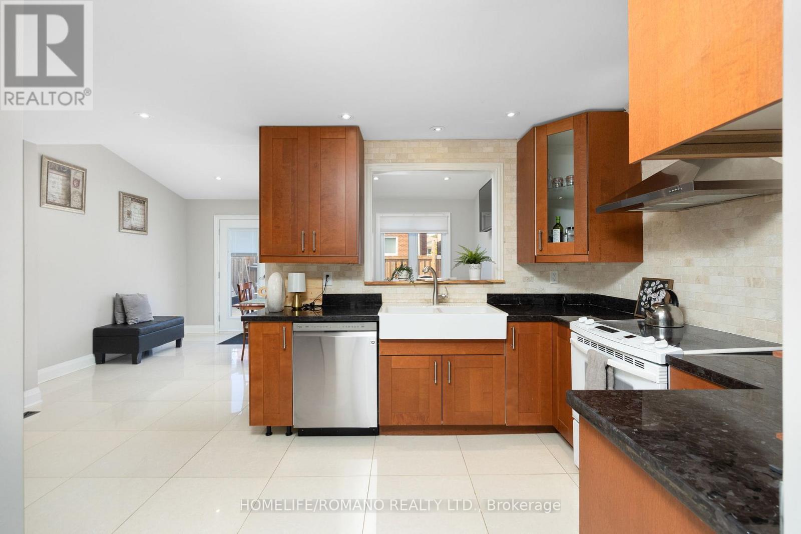 Discover this beautifully upgraded 3-bedroom, 3-bathroom semi-detached home in the heart of East Woodbridge. With over 1,500 sq. ft. of thoughtfully designed living space above grade, this two-storey gem offers a bright and functional open-concept layout, featuring large porcelain tiles, rich hardwood floors, and pot lights throughout the main level. The upgraded kitchen is a standout, equipped with stone countertops, stainless steel appliances, and a spacious walk-in pantry. A massive 209 sq. ft. rear extension-complete with double-door access-opens to a professionally landscaped backyard with patterned concrete, ideal for hosting large family gatherings or entertaining guests. Upstairs, a newly refinished staircase leads to a spacious primary bedroom with a walk-in closet, alongside two generously sized bedrooms featuring new laminate flooring and a beautifully updated 4-piece bathroom. The finished basement adds even more versatility, with tall ceilings, a large recreation room, and a full 3-piece bathroom-perfect for a home office, gym, or guest suite. The driveway comfortably fits up to four vehicles - no sidewalk ! Bonus: Existing footings are in place for a future front vestibule, offering an excellent opportunity to enhance both functionality and curb appeal. This one checks all the boxes - Located just minutes from essential amenities, top-rated schools-including the newly opened Ecole Secondaire Catholique de l'Ascension-and convenient transit options, this home is ideal for first-time buyers or growing families looking to upsize. (id:4555)