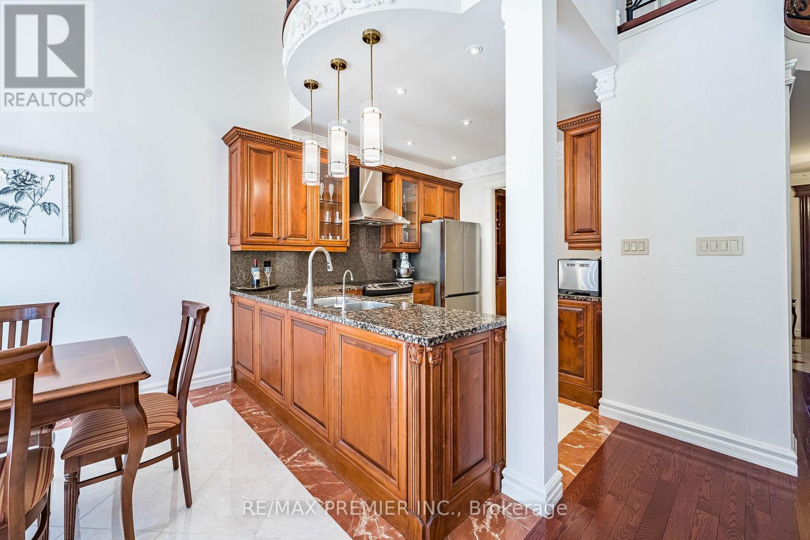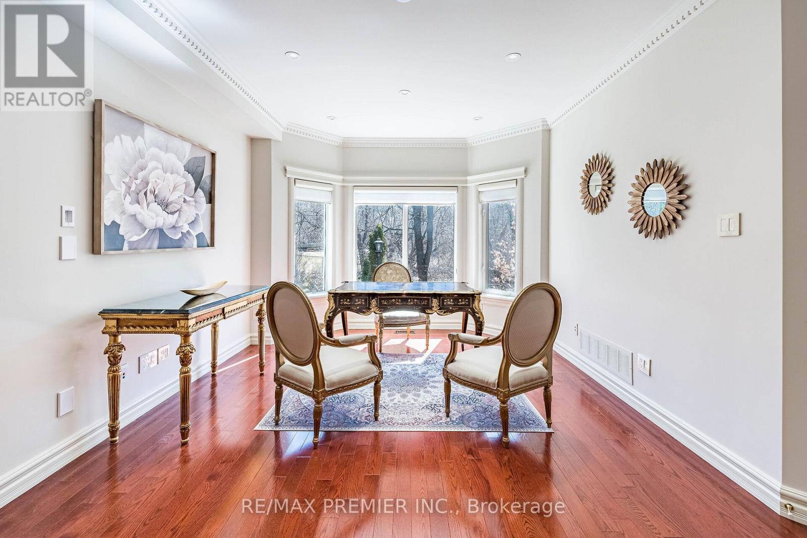 Nestled on a picturesque RAVINE lot in the exclusive Islington Woods Community, this European-inspired home sits on a quiet family-friendly court surrounded by Boyd Park's nature trails along the Humber River, and the Burton Trail. True craftsmanship tells this story. Walk through an oversized solid wood front entrance with motion sensored lighting and porcelain flooring. The open concept main level is anchored by a dramatic family room with soaring cathedral ceilings, crown moulding, cherry hardwood flooring, and best of all - breathtaking views. Great utilization of space and storage, enjoy built-in closet shelving. Solid wood doors with Italian mortise hardware throughout. Main-floor den offers the potential for a home office or fourth bedroom with a bathroom rough-in. The formal dining/living room features a large bay window, hand-painted plaster crown moulding and is open to a custom servery and coffee nook. The kitchen is equipped with stainless steel appliances, granite countertops, solid wood cabinetry, and a walkout to a newly constructed heated concrete patio with outdoor kitchen - granite counter, roughed-in BBQ, and under-mount stainless steel sink. A custom wrought iron floating staircase leads to the second level, where you will find the primary bedroom showcasing dual closets, motorized blinds, and a luxurious six-piece ensuite with ravine views. The third bedroom features an elegant Juliet balcony overlooking the great room which is adorned by lots of natural light. The garage is fully finished with porcelain tile flooring, spray foam insulation, upgraded openers, and a mezzanine for storage. Impeccably manicured, professionally groomed landscaping front to back accented by a tumbled stone driveway and walkway. Walking distance to Al Palladini Community Centre, bus routes to St. Michael's College, Villanova, and De La Salle - plus nearby shops, transit. Freshly painted, move-in ready! (id:4555)