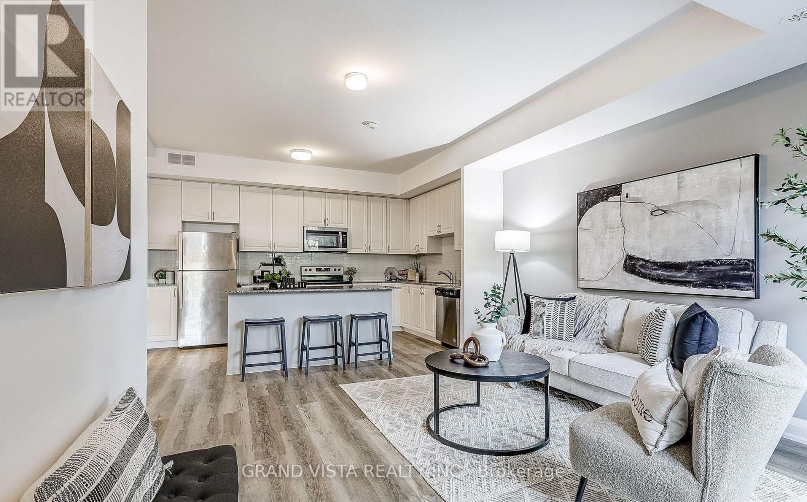 Welcome home! This bright and spacious stacked townhome offers a comfortable and functional layout with 3 bedrooms, a den, and 3 full bathrooms-perfect for families, professionals, or anyone looking for a little extra space. The open-concept main floor makes everyday living easy, with a natural flow between the kitchen and living area. The kitchen features stainless steel appliances, plenty of cabinet space, and a centre island that's great for quick meals or spending time with family. The living room opens onto a cozy porch, giving you a nice spot to enjoy your morning coffee or relax at the end of the day. There's also a bedroom on the main floor, ideal for guests or a home office. Upstairs, the primary bedroom includes its own ensuite and a walk-in closet, while the second bedroom is also generously sized. Both rooms have access to a private balcony, offering a quiet outdoor space to unwind. The open den on this level is perfect for working from home, studying, or creating a reading nook. You'll also appreciate the convenience of second-floor laundry. Additional features include underground parking and a private, oversized locker located right behind your parking space. The location is a major plus, with public transit just steps away and easy access to highways for commuting. You're also close to parks, shopping, restaurants, schools, Vaughan Mills, Canada's Wonderland, and more-everything you need is within reach. A great place to call home in a well-connected and growing community, A Must See!!! (id:4555)