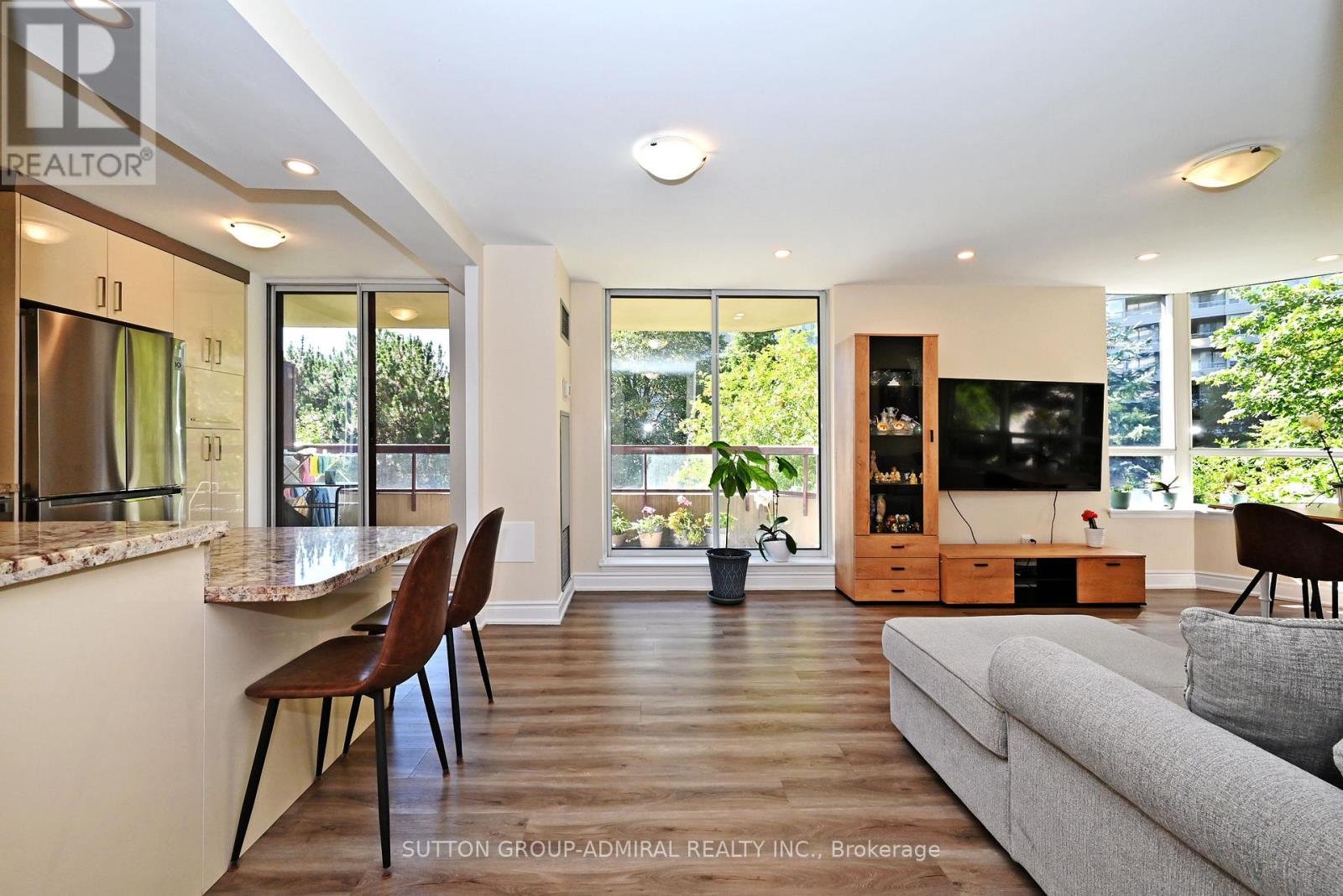 Welcome to a stunning, fully renovated 2-bed, 2-bath condo in a prime Thornhill location! This modern unit boasts a sleek open-concept layout with high-end finishes, including a new kitchen with stainless steel appliances, granite countertops, and a spacious living/dining area that opens to a private balcony. Enjoy fantastic building amenities such as a gym, whirlpool, outdoor pool, tennis court, and visitor parking. Ideally located near public transit, Promenade Mall, parks, and shopping. Includes 1 underground parking space and 1 locker. (id:4555)