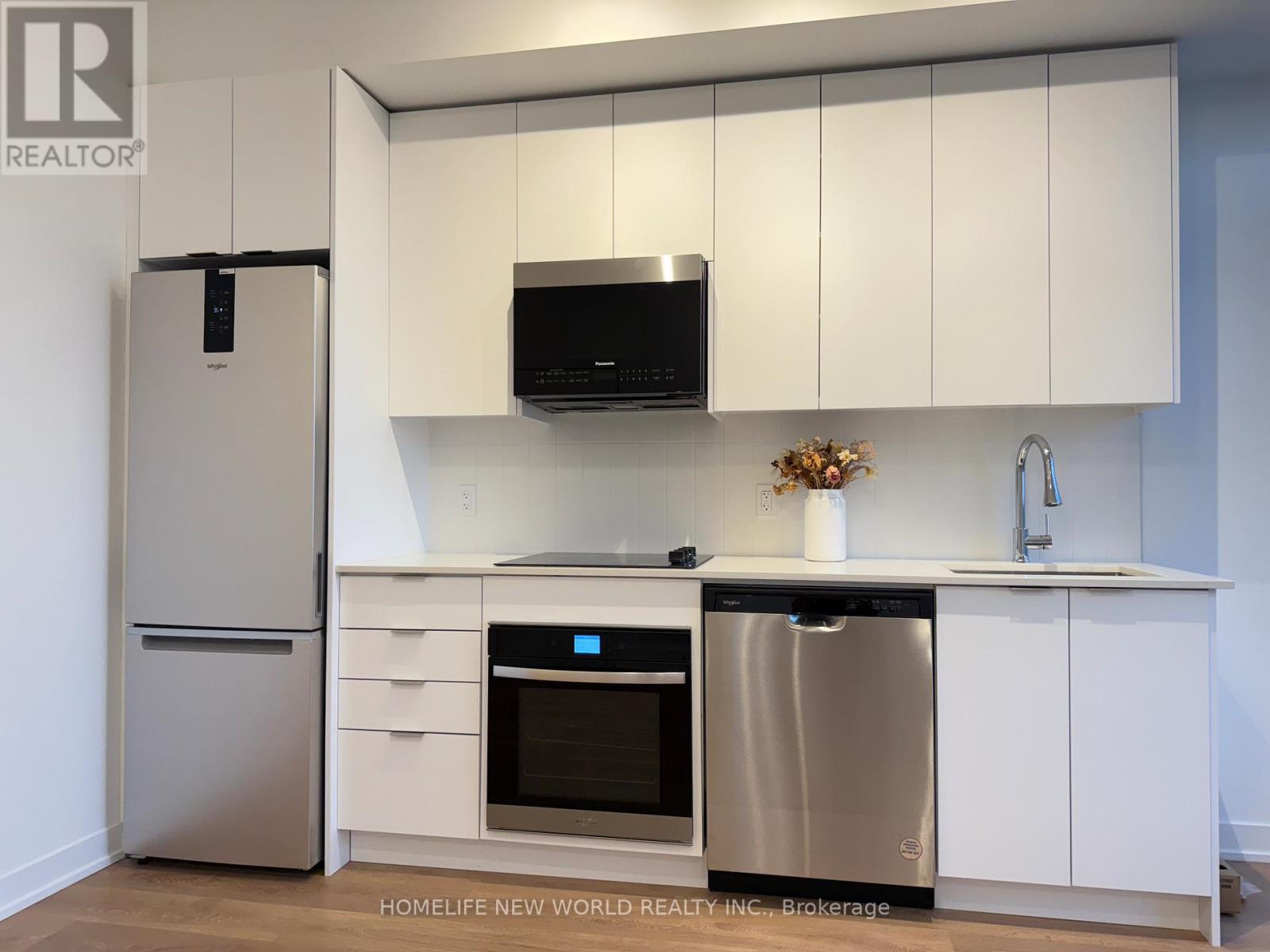 Welcome to this stunning well designed luxury new studio. This spacious, bright unit offers a modern layout with high-end finishes throughout. Natural light fills the space with large window. Unblocked wonderful view with 55 Sq Feet big balcony. It features combined dining and kitchen area to make living and hosting easy! Luxury kitchen features quartz countertops, stainless steel built-in appliances, and a trendy backsplash, making it as functional as it is beautiful. Walk out to balcony through kitchen with sliding glass doors. Coffered ceiling makes the room cozy and modern. Prime location, easy access to transit, major highways, Vaughan Mills Shopping Centre, Canadas Wonderland, and Cortellucci Vaughan Hospital, Vaughan Metropolitan Centre. and a curated selection of dining and grocery options. Don't miss out on this fantastic opportunity to experience the perfect combination of luxury living and convenience. Inclusions: New Appliances - S/S Fridge, Dishwasher, Stove. Washer & Dryer. Existing Light Fixtures. (id:4555)