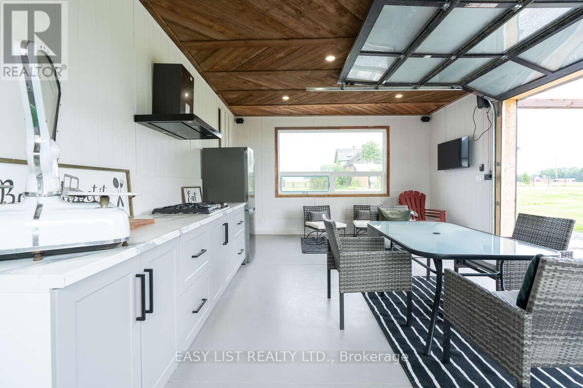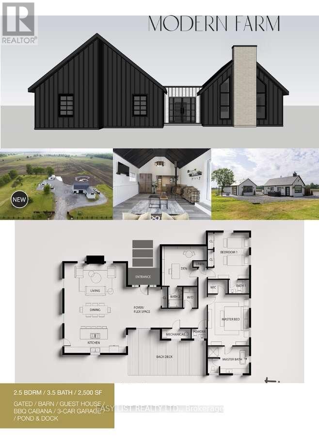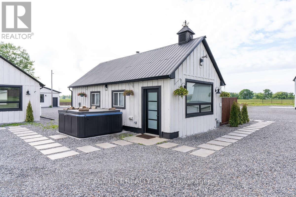 *** Visit the REALTOR website for further information about this Listing *** Welcome to a rare modern farmhouse estate on 4.5 fully approved acres, where refined design meets estate-scale versatility. Completely rebuilt and move-in ready, this private retreat offers a brand-new custom home, new 3-car garage, resort-style cabana, renovated legal guest house with loft, and an impressive approx. 6,500 sq ft two-storey post-and-beam barn that is insulated and heated, with concrete floors - each structure fully permitted and professionally finished. The main residence showcases bold black board-and-batten siding, modern rooflines, and oversized architectural windows. Inside, a vaulted great room anchors the home, seamlessly blending kitchen, dining, and living spaces for effortless entertaining. A flexible foyer/flex room, dedicated office/den, full laundry, and powder room enhance everyday function. The private bedroom wing features a serene primary suite with walk-in closet and spa-inspired 5-piece ensuite, plus a second bedroom with its own full ensuite. A sunlit rear deck overlooks peaceful greenery and leads to a picturesque bean-shaped pond with dock - an ideal setting for outdoor dining, fireside evenings, or quiet reflection. Designed for a true live-work lifestyle, the guest house and barn provide exceptional flexibility for studios, offices, creative work, consulting, storage, or income-generating uses (buyer to verify permitted uses). With acres to spread out, the property offers rare separation between living, working, and entertaining spaces. Additional highlights include a premium asphalt driveway, fully fenced grounds with custom gated entry, security monitoring, and upgraded utilities including a new 200 AMP service pole. Ideally located minutes to Port Colborne and Wainfleet, with easy access to beaches, golf, marinas, and under two hours from the GTA, this estate delivers privacy, luxury, and opportunity - without compromise. (id:4555)