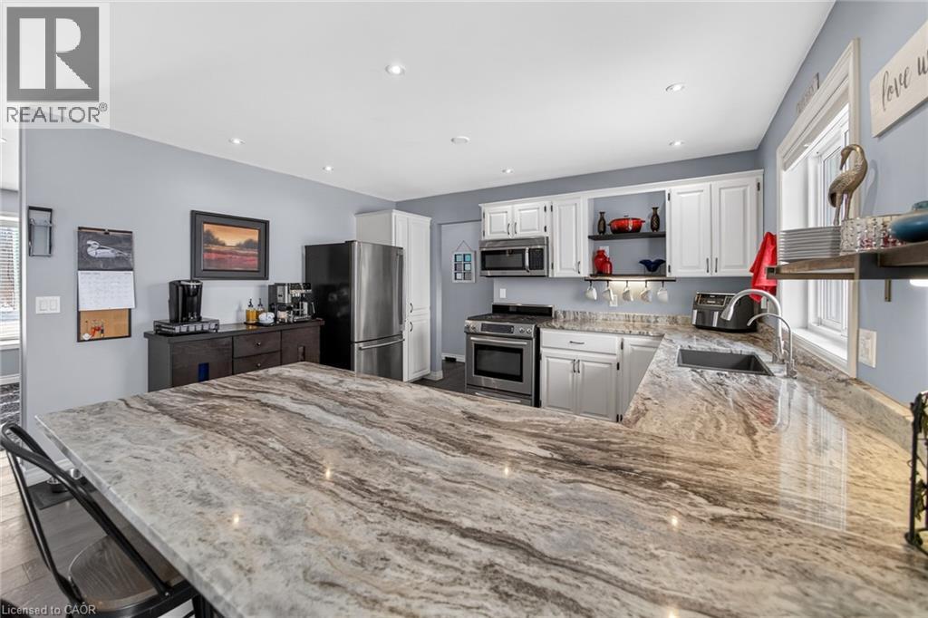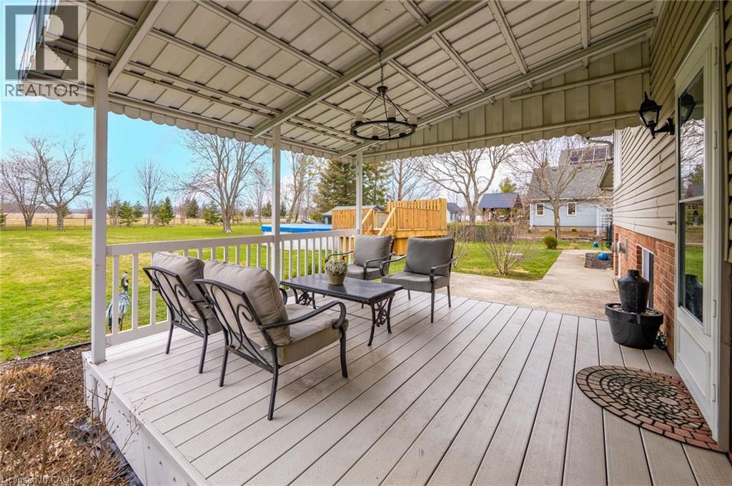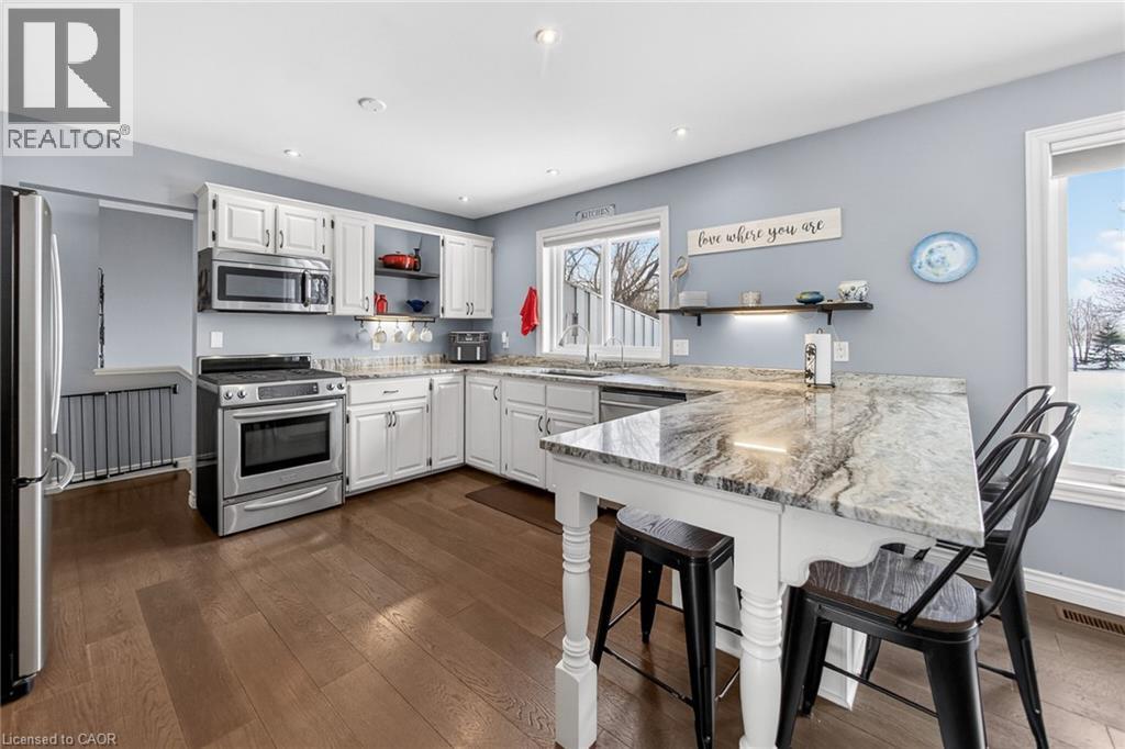 Immaculate raised brick bungalow in the heart of Wainfleet, just a short walk to schools, library, playgrounds, sports fields and the arena. Set on just over 1 acre with no rear neighbours, this beautifully maintained home offers privacy, open views and incredible sunsets. The inviting main floor features an open concept layout with a bright kitchen and dining area, spacious living room, and three generous bedrooms including a primary with walk-in closet. Wide plank hardwood floors add warmth throughout. The finished lower level offers large windows, a spacious rec room with gas fireplace, an additional large bedroom, bonus room and 3-piece shower. Ideal potential for an in-law suite setup. Exterior highlights include a private covered porch overlooking the expansive backyard, 15x24 pool with deck (2022), and chainlink fence (2021). Major updates provide peace of mind: furnace (2021), water heater (2024), full home filtration system (2025), three pumps replaced (2023), rear windows (2023), extended kitchen island with granite counters (2022), and Generac generator maintenance (2024). Attached double car garage completes this move-in ready property. Meticulously cared for inside and out. (id:4555)