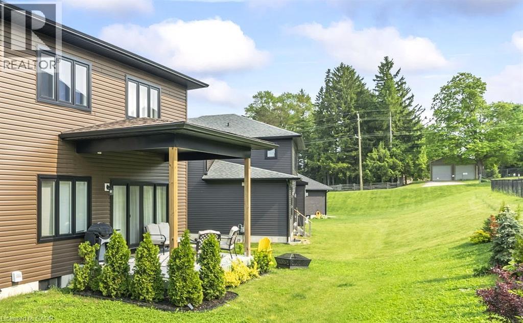 This luxurious, elegant and modern property, built with superior quality materials, will charm you with its abundant windows, high interior ceilings, large double doors, and charming entrance hall. The ground floor features a luxurious kitchen with marble backsplash, quartz countertops, a high-end Italian stove and dishwasher, a large refrigerator, and modern pendant lighting. You will also find an charming office, a large cozy living room with a modern fireplace, an cute powder room, and a mudroom with access to the garage. Upstairs, the house offers a spacious family sitting room, a laundry room for added convenience, three elegant large, bright bedrooms, and two large, modern bathrooms with exquisite finishes. The master suite features a luxurious 5-piece bathroom, a dressing room, and a private balcony. This magnificent home offers nearly 2400 Sq FT of living space. The basement 1100 Sq Ft of this house has loads of potential with walls already framed easily transform the space into a cozy rec room with add bedroom, and a three piece bathroom. Enjoy beautifully landscaped front and rear gardens, a large porch and a huge covered west-facing rear patio, perfect for entertaining. Ideal peaceful location, located in an exceptional natural setting, with quality craftsmanship throughout and close proximity to schools, amenities, hospital, near by golf, fishing, and much more, this home offers comfort and style, enjoy the serenity and location all in one. An exceptional property! This home is backed by the TARION New Home Warranty. Directions Hwy 9 West / Hwy 9 South (id:4555)