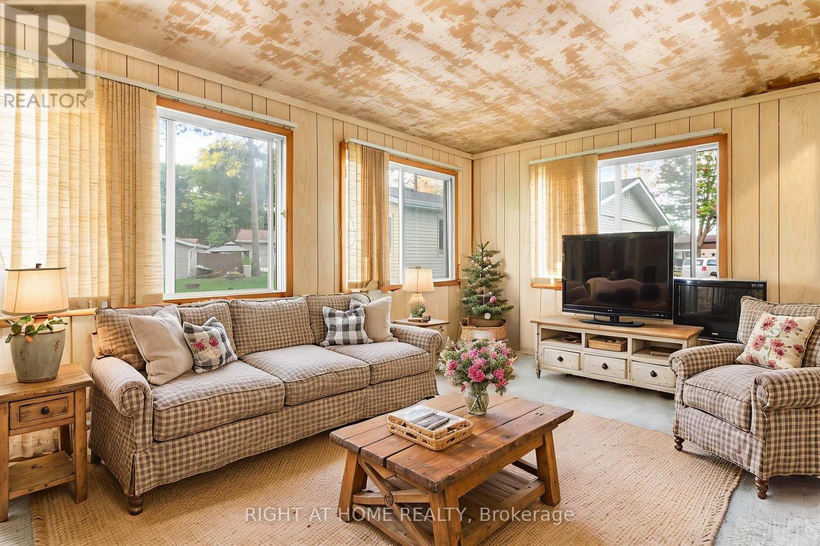 Welcome to a lifestyle where every day feels like a getaway. This charming modular home is located in one of Wasaga Beach's most sought-after 55+ adult communities, where relaxation, recreation, and connection go hand in hand. Golf carts are a way of life, and neighbours quickly become friends who look out for one another, creating a tight-knit, welcoming atmosphere that makes this community feel like home from the moment you arrive. With a little TLC and your personal touch, this 2-bedroom home can easily shine again. It features a versatile 4-season sunroom that could serve as a 3rd bedroom, offering flexibility for guests, hobbies, or simply more space to enjoy the light-filled interior. Outside, a spacious garage provides plenty of room for storage, or tinkering away the afternoon in comfort. As a resident, you'll enjoy access to resort-style amenities, including an outdoor pool, on-site 9-hole golf course, and a vibrant community clubhouse with regular events, games, and activities designed to keep life engaging and social. The location is perfect, shopping, restaurants, and amenities are just minutes away, making it easy to balance convenience with a peaceful, active lifestyle. Who says a golf course, an inground pool, and shuffleboard are only for the rich? This affordable modular home puts you right in the heart of it all, giving you the lifestyle you've dreamed of in a welcoming, fun, and serene environment. Land Lease: $725.00 Site: $35.49 Home: $28.86 WATER/SEWER: Metered quarterly. Total amount due Monthly: $789.35 (id:4555)