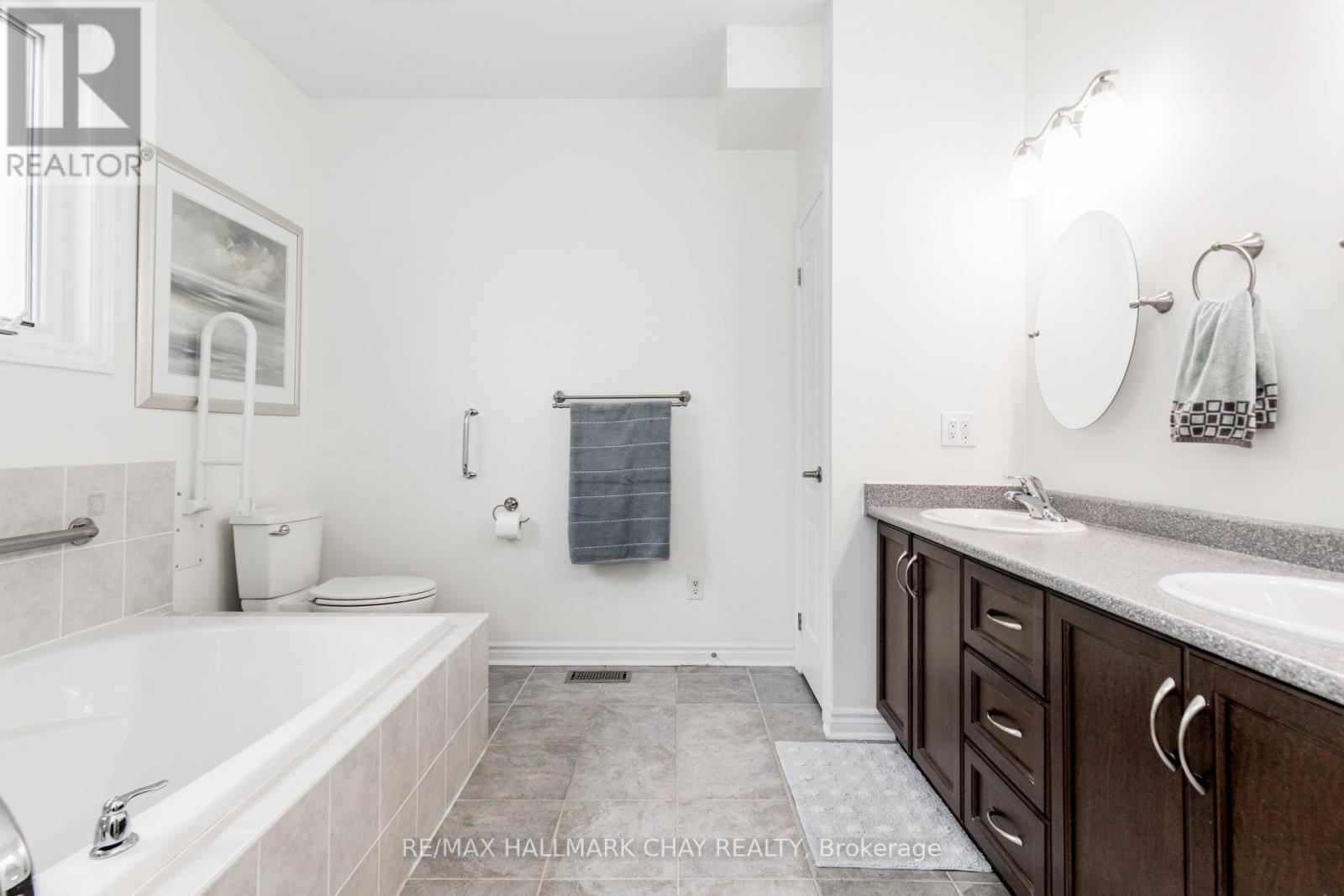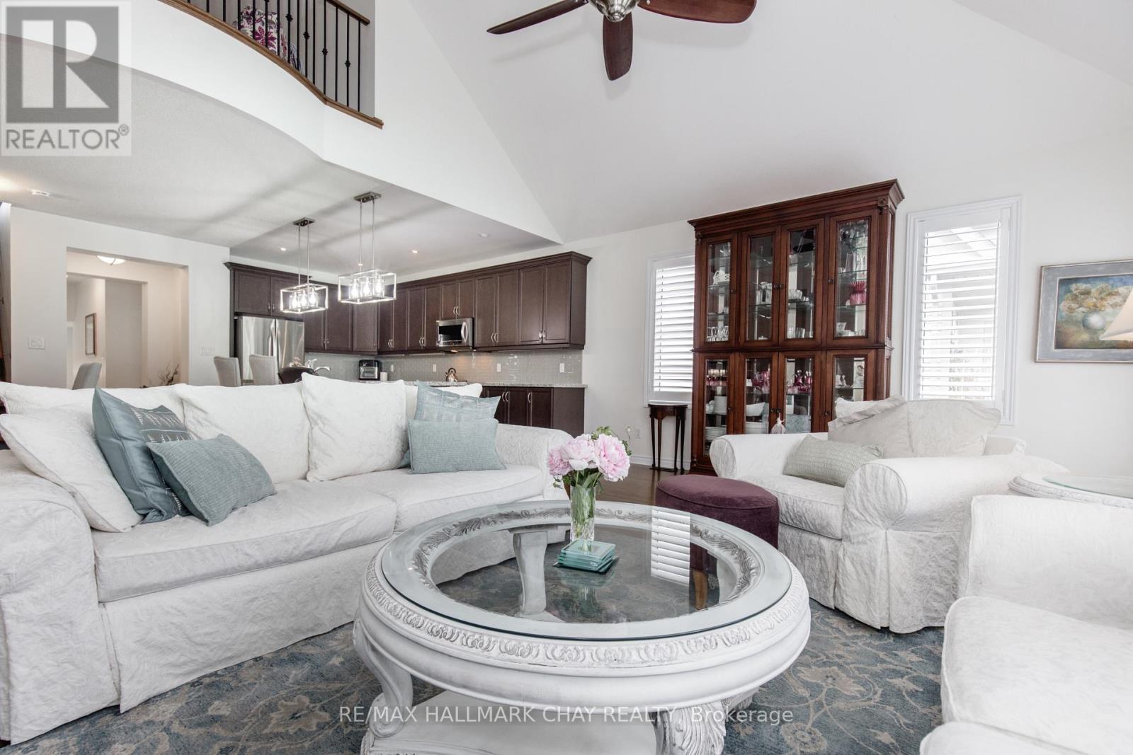 Welcome to Your Dream Escape in Bluewater on the Bay! Nestled along the shores of Georgian Bay, right on the boarder of Collingwood and Wasaga Beach, this stunning open-concept Bungaloft is more than a home it's a lifestyle. Set within the exclusive Bluewater on the Bay community, this bright, beautifully designed home invites you to relax, entertain, and enjoy the very best of Bayfront living.The sunlit main floor is an entertainers dream, featuring rich hardwood floors, California shutters, and a chefs kitchen with granite counters, under-cabinet lighting, glass backsplash and large island.The living room impresses with a cathedral ceiling, floor-to-ceiling gas fireplace, and a Juliet balcony peeks down from the loft above. Walk out to a peaceful, fully fenced backyard with flagstone patio perfect for morning coffee, quiet afternoons with a good book, or hosting close friends and family. The main-floor primary suite offers a peaceful retreat with a walk-in closet, spa-like 5-piece ensuite, and tranquil views of the backyard. Two additional bedrooms complete the main level.Upstairs, the loft includes a private bedroom with ensuite, a cozy gable nook, and an open flex space ideal for a home office or reading area.The unfinished basement is filled with natural light with above ground windows and endless potential with all mechanicals smartly tucked away to maximize design freedom. Enjoy resort-style living with exclusive access to a vibrant Clubhouse featuring a seasonal pool, gym, party space, lounge, card room, and stone patio - all with breathtaking views of the Bay! Lawn care and snow removal right to your door- access to the amenities and lawn, snow removal are included for just $306/month.This is more than a home-it's your next chapter filled with beauty, convenience to restaurants, shops, skiing and trails in Collingwood and a wonderful community. Come see why life is better by the Bay! (id:4555)