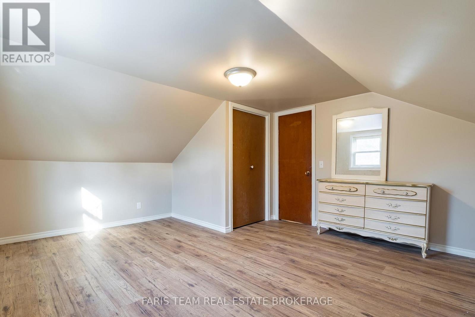Top 5 Reasons You Will Love This Home: 1) This tastefully updated one-and-a-half-storey brick home sits on an impressive nearly half-acre lot, offering timeless curb appeal and a layout perfectly suited for small families, retirees, or first-time buyers ready to put down roots 2) Thoughtful upgrades bring both comfort and peace of mind, including a durable metal roof completed in 2022, a refreshed kitchen with quartz countertops and a sleek gas range, and the convenience of main level laundry with a newer washer and dryer 3) The upper level features two generously sized bedrooms, while the main level offers an open, light-filled layout highlighted by large windows and a primary bedroom with a sliding glass-door walkout to a private side deck 4) Adding to its appeal, the property features versatile CD-H zoning, presenting a rare opportunity for continued residential use or future commercial potential 5) Prime location within minutes of downtown Collingwood, the beautiful sandy shores of Georgian Bay, and easy access to Highway 26, making it ideal for commuters and offering excellent commercial exposure if desired. 1,264 fin.sq.ft. *Please note some images have been virtually staged to show the potential of the home. (id:4555)