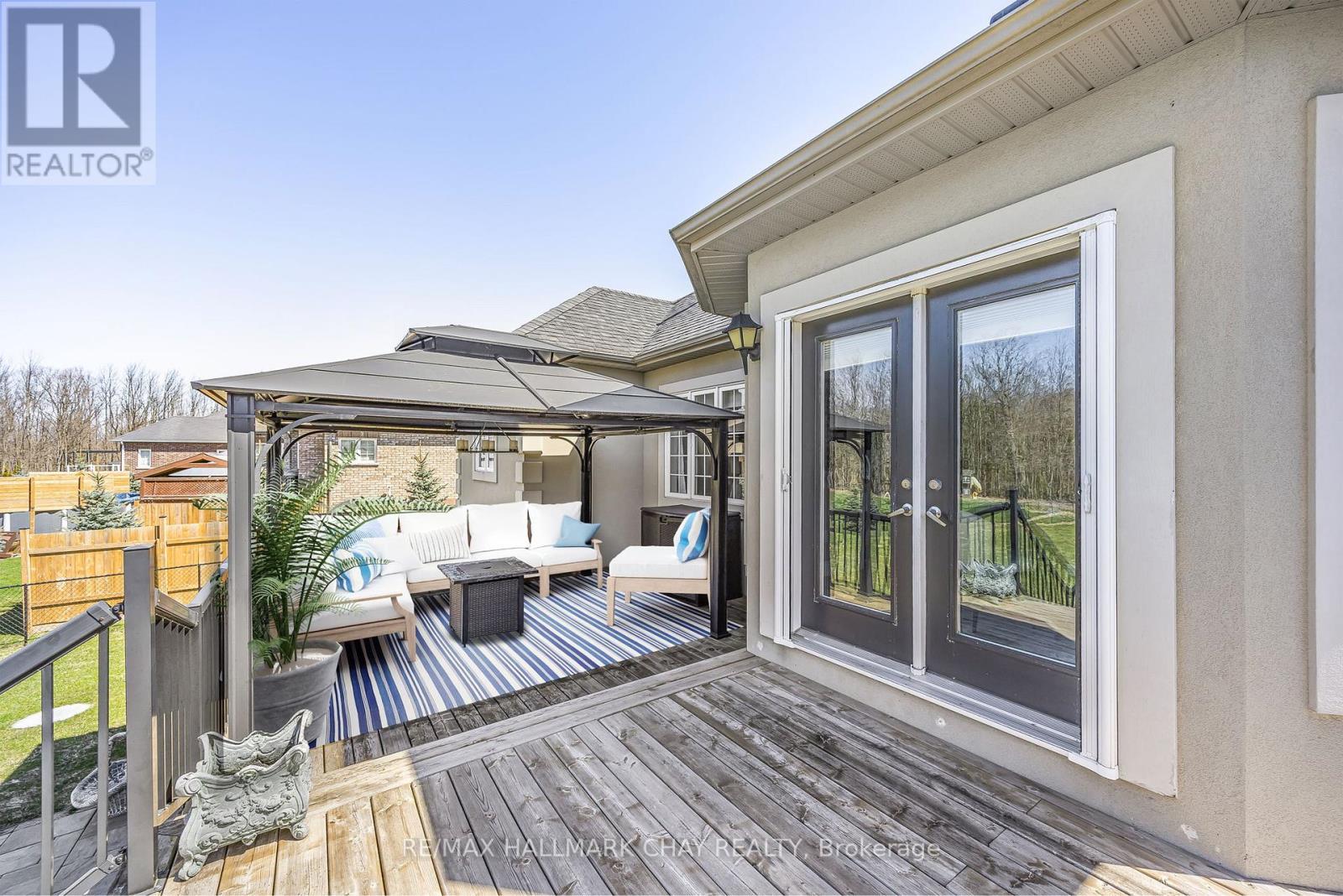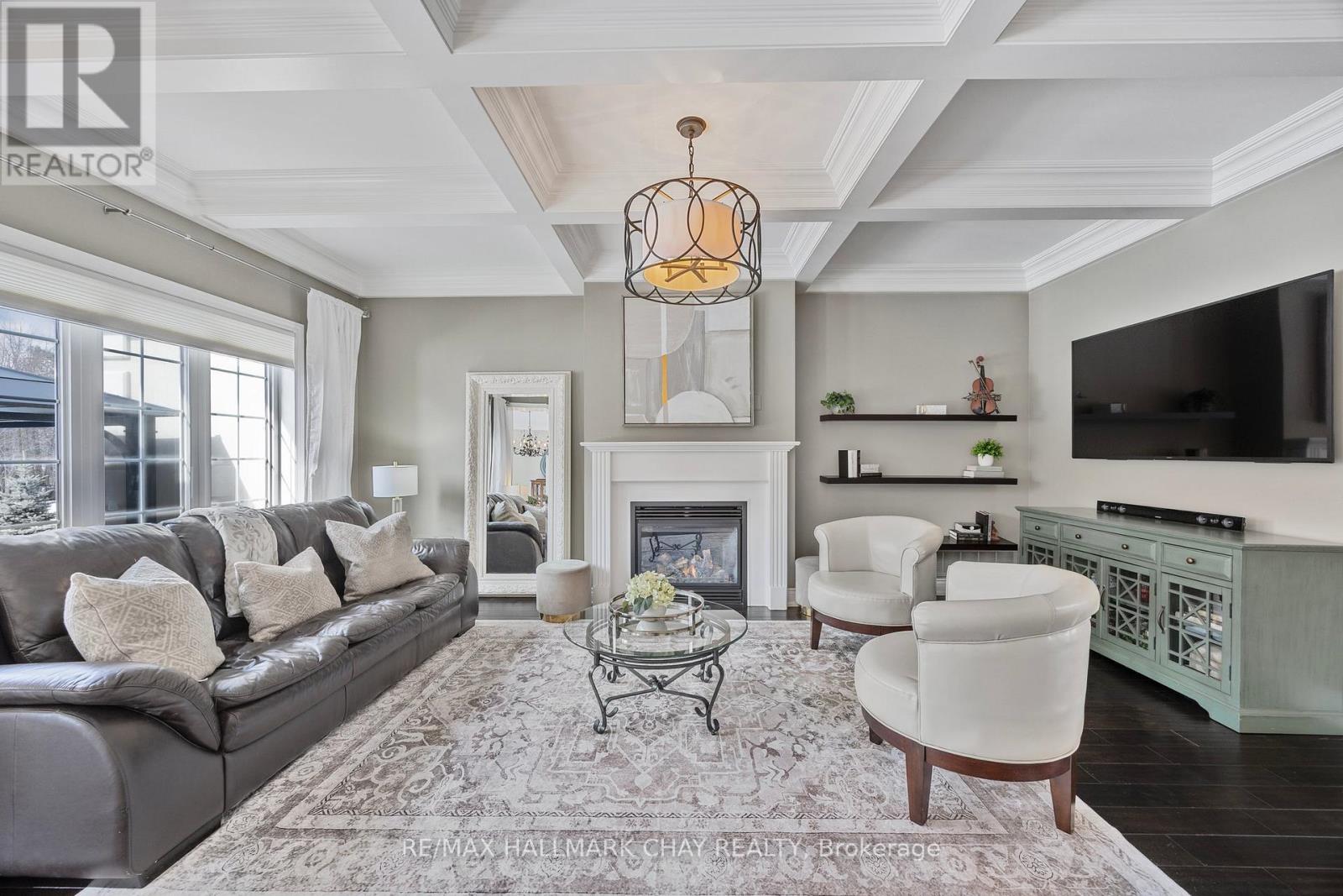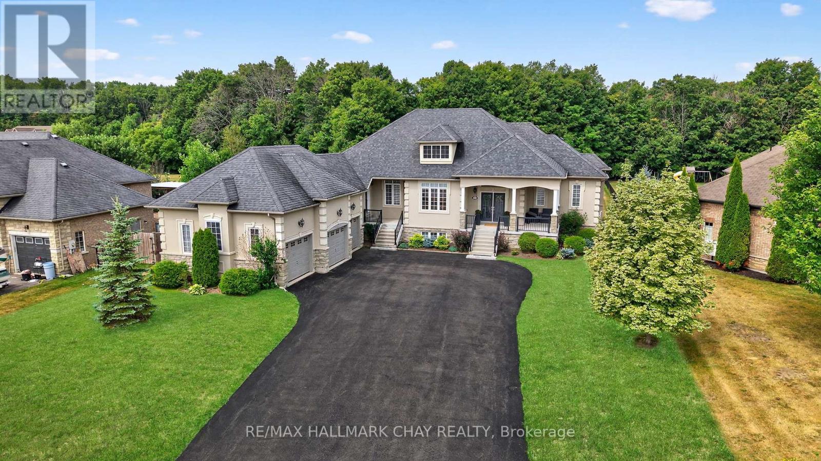 Step into this impressive raised bungalow in Wasaga Beach's prestigious Wasaga Sands Estates, set on a rare ravine lot surrounded by expansive estate properties. Offering over 2,500 sq ft on the main floor, this remarkable residence boasts incredible curb appeal, dual entrances, and a massive driveway leading to a spacious three-car garage. The backyard is a private retreat featuring an oversized deck and patio with picturesque views of Macintyre Creek and tranquil trails. Inside, you'll find refined details such as wainscoting, hardwood floors, and 8-inch cornice moldings. The family room is enhanced by a beautiful coffered ceiling and fireplace, while the kitchen shines with quartz countertops and a premium Viking stove. The open-concept layout flows effortlessly to the backyard, perfect for entertaining. The primary suite is complemented by three additional bedrooms, one of which serves as a versatile space ideal for an office, or nursery. A practical mudroom offers easy access to the garage and second entrance. With 9' ceilings throughout, ample natural light, and an unfinished basement featuring 10' ceilings and a bathroom rough-in, this home presents endless opportunities. Enjoy peaceful living just minutes from shops, restaurants, the beach and Blue Mountain resort. 9ft Ceilings on Main, Hardwood Floors, Newer Carpet In Bedrooms, Mud Room With Man Door To Garage & To Front Entrance, Elegant Wainscotting Throughout, Walk In Pantry, Coffered Ceilings, 8" Cornice Molding, 10ft Ceilings In Bsmt & Above Grade Windows, Quartz Counters, Double Deck, Backing Onto Macintyre Creek +Trails. (id:4555)