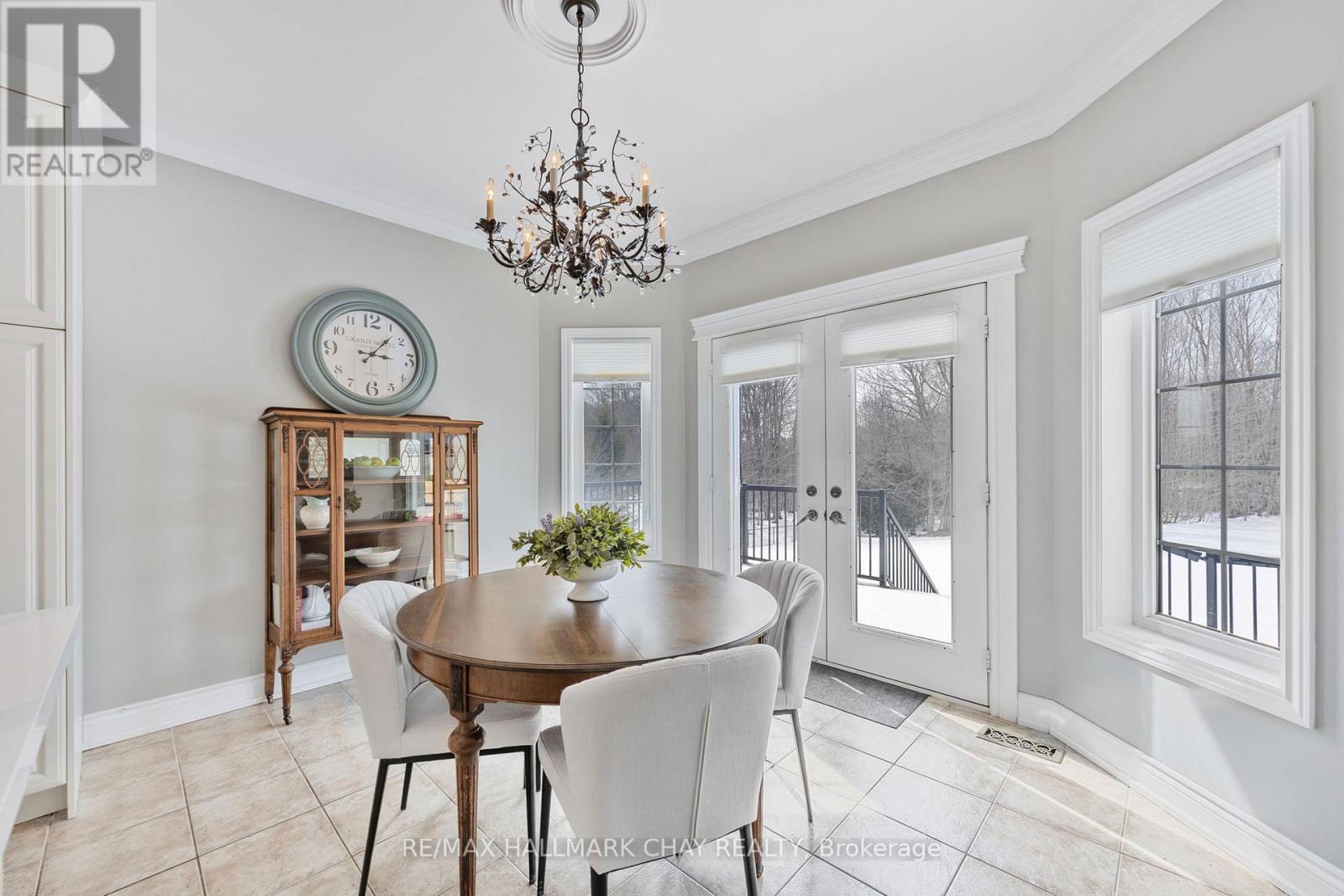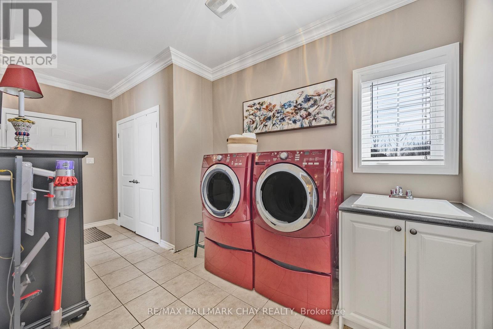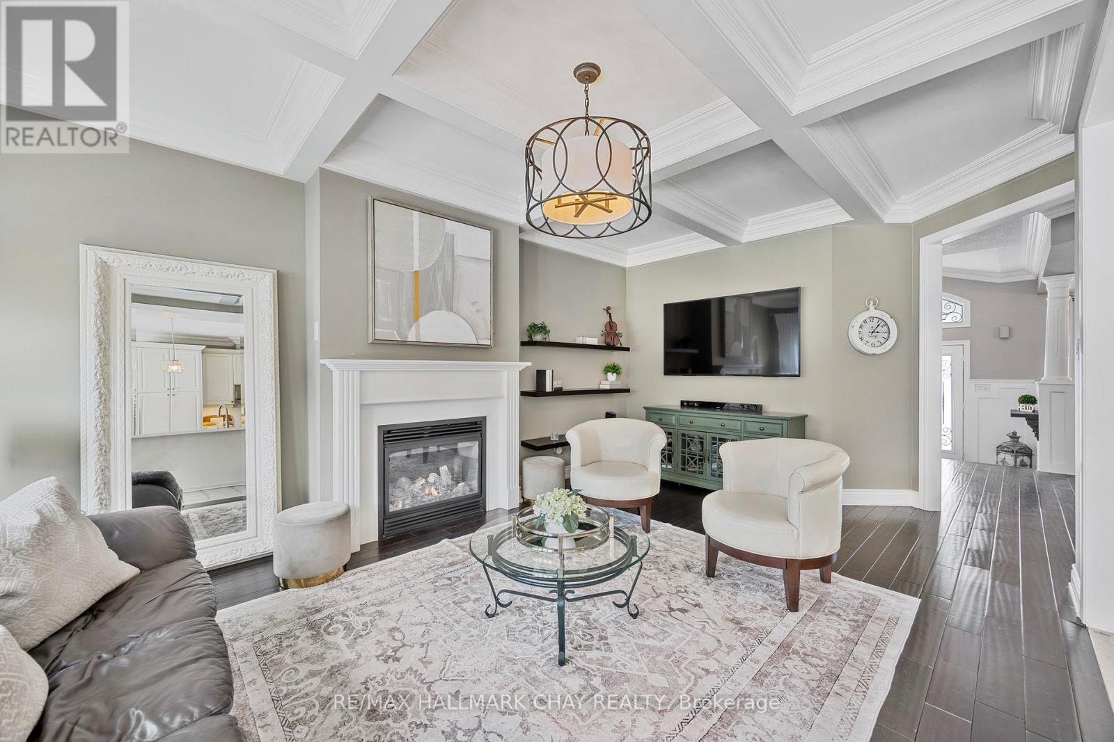 Step into this impressive raised bungalow in Wasaga Beach's prestigious Wasaga Sands Estates, set on a rare ravine lot surrounded by expansive estate properties. Offering over 2,500 sq ft on the main floor, this remarkable residence boasts incredible curb appeal, dual entrances, and a massive driveway leading to a spacious three-car garage. The backyard is a private retreat featuring an oversized deck and patio with picturesque views of Macintyre Creek and tranquil trails. Inside, you'll find refined details such as wainscoting, hardwood floors, and 8-inch cornice moldings. The family room is enhanced by a beautiful coffered ceiling and fireplace, while the kitchen shines with quartz countertops and a premium Viking stove. The open-concept layout flows effortlessly to the backyard, perfect for entertaining. The primary suite is complemented by three additional bedrooms, one of which serves as a versatile space ideal for an office, or nursery. A practical mudroom offers easy access to the garage and second entrance. With 9' ceilings throughout, ample natural light, and an unfinished basement featuring 10' ceilings and a bathroom rough-in, this home presents endless opportunities. Enjoy peaceful living just minutes from shops, restaurants, the beach and Blue Mountain resort. 9ft Ceilings on Main, Hardwood Floors, Newer Carpet In Bedrooms, Mud Room With Man Door To Garage & To Front Entrance, Elegant Wainscotting Throughout, Walk In Pantry, Coffered Ceilings, 8" Cornice Molding, 10ft Ceilings In Bsmt & Above Grade Windows, Quartz Counters, Double Deck, Backing Onto Macintyre Creek +Trails. (id:4555)