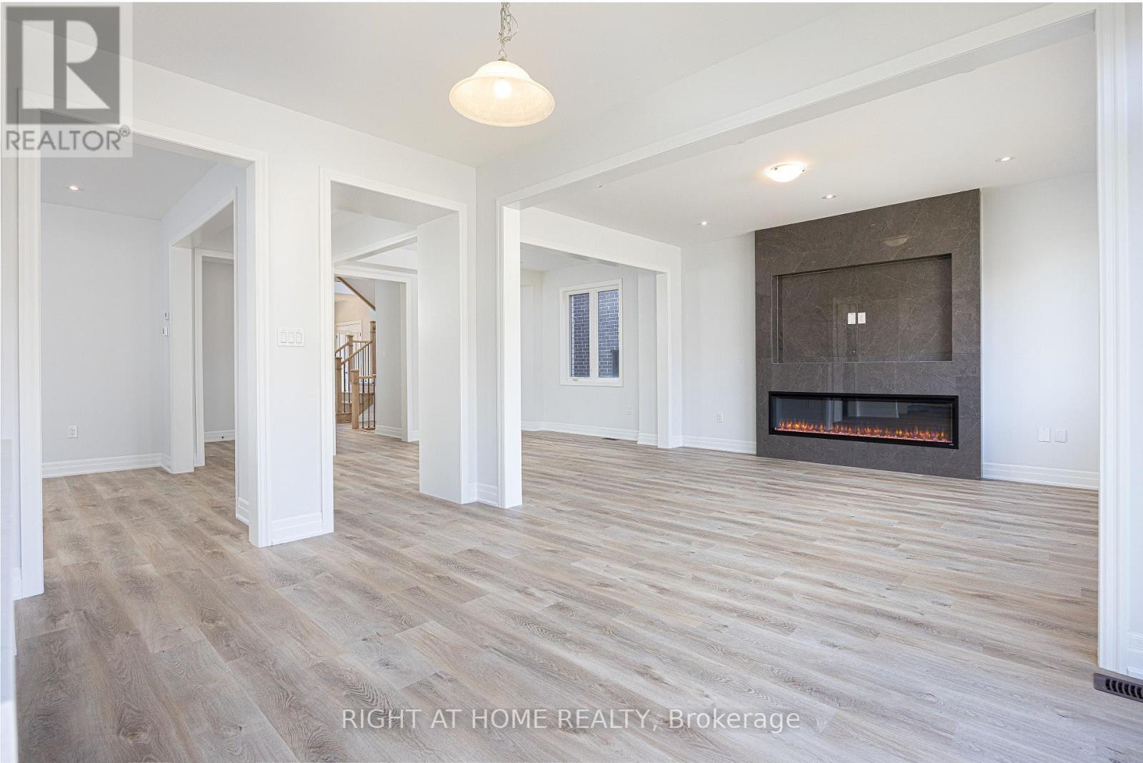 Welcome to River's Edge-where modern design meets everyday comfort. This stunning 2-storey brick and stone home offers 2,715 sq. ft. of beautifully finished living space with 4 bedrooms and 3.5 baths. From the dramatic stone entrance and spacious sun-filled foyer, luxury vinyl plank flooring in a stylish light tone, oak staircase, smooth ceilings throughout, and sleek matte black door hardware, every detail is thoughtfully designed. The chef-inspired kitchen features quartz countertops and backsplash and upgraded cabinetry, positioned next to the dining room. An impressive 8-ft sliding door floods the space with natural light and provides seamless backyard access. The open-concept living and great room create an inviting main living area, highlighted by a sleek linear fireplace with custom tile surround. The living room offers flexibility as a playroom or home office. A large laundry/mudroom with upper cabinetry and mosaic tiled floors adds convenience and style. Upstairs, enjoy four generous bedrooms, a reading nook, and spa-like en-suites, all with quartz counters, including a luxurious primary retreat with free-standing tub and glass shower. Additional conveniences include garage door openers, central air conditioning, pot lights inside and out, and a side entrance to the unfinished basement with enlarged windows and bathroom rough-in, offering excellent potential for future finishing. Electrical rough-ins for a security system and EV charger add extra convenience. Perfectly situated just minutes to the beach and close to walking trails, this home blends style, functionality, and location. Quick closing available-just move in and enjoy! (id:4555)