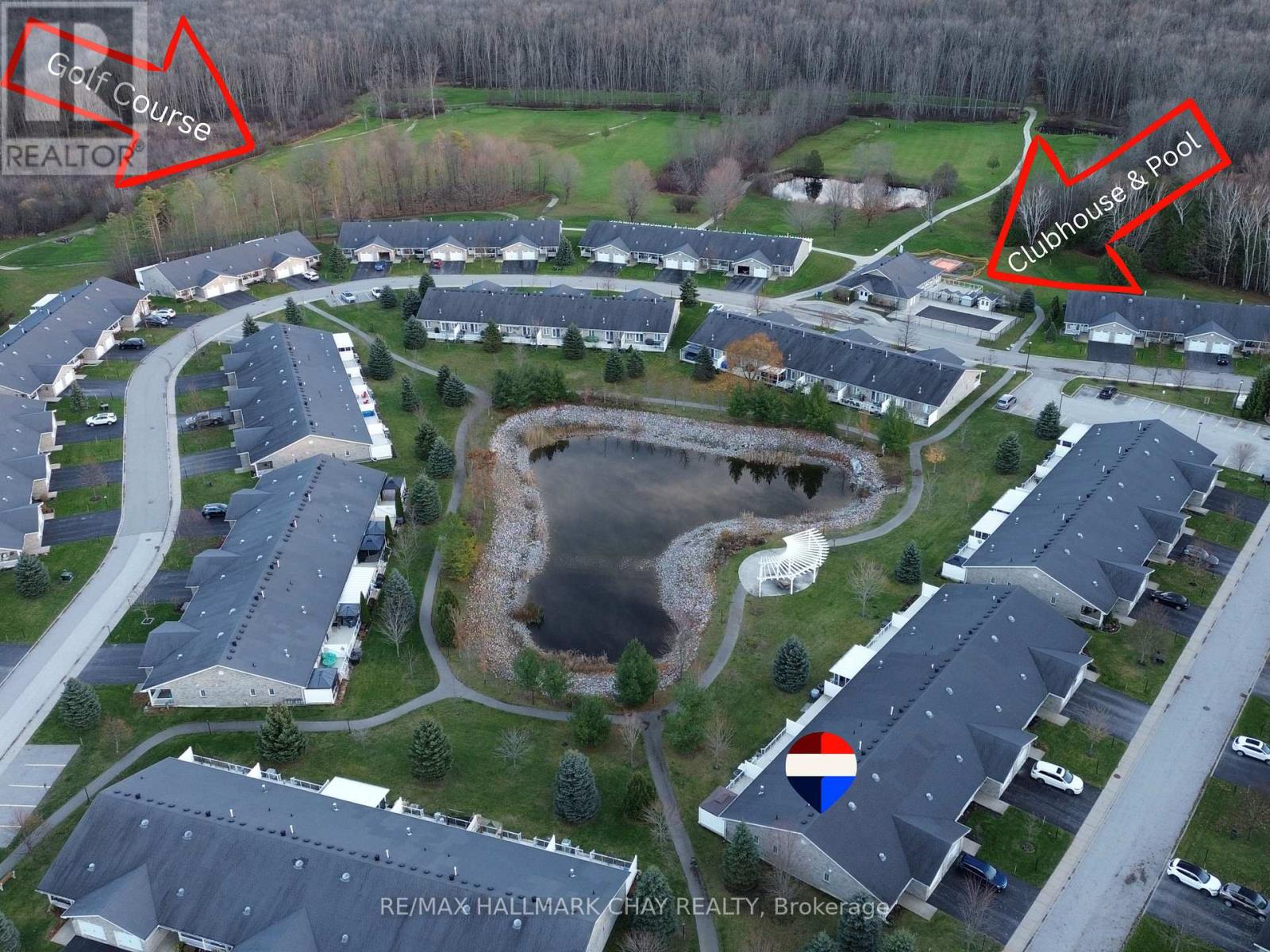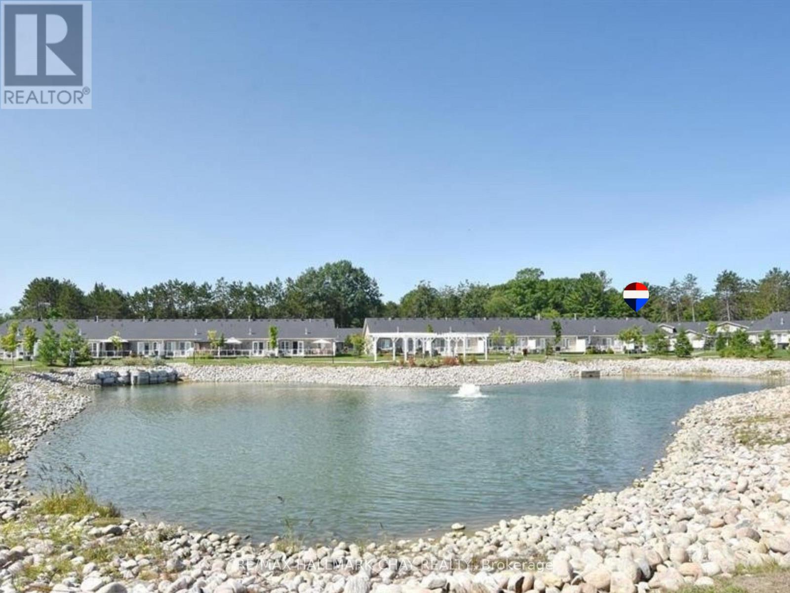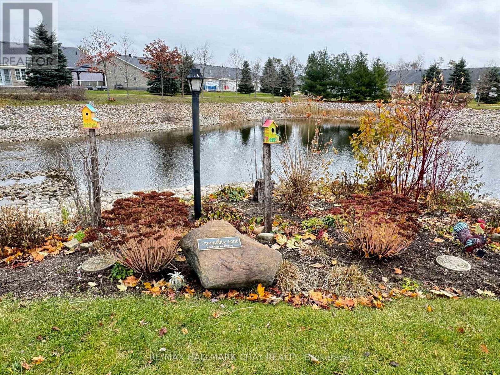 Retire in Style! Welcome to this fabulous turnkey bungalow in the sought-after Country Meadows in Wasaga Beach. This premium end unit backs onto the pond, tranquil walking paths and a pergola for gathering with friends or just enjoying the serenity. This beautiful home offers 2 bedrooms, 2 bathrooms, and a HUGE great room with vaulted ceilings. A welcoming covered front porch leads into a bright foyer with inside access to the garage. The open-concept living area allows for a variety of furniture placement options. The well-appointed kitchen boasts stainless steel appliances, pantry storage, and a skylight, making it both functional and inviting. The spacious primary suite includes an ensuite with a walk-in shower and two closets (one is a walk-in). The second bedroom is adjacent to the guest bathroom. The laundry room has a sink and additional cabinetry. The great room has a walkout to the large deck that features a permanent gazebo, retractable awning, resin decking and glass railings for unobstructed views. Other upgrades included a gas fireplace, ceramic and engineered hardwood floors as well as custom window coverings. Located in one of Parkbridge's premier communities. Ownership comes with access to an array of premium amenities including the 9 hole golf course, outdoor heated pool, community center with billiard table, shuffleboard, darts, library, kitchen and patio areas. This home is ready for you to move in and enjoy a retirement lifestyle filled with comfort, convenience, and community. Parkbridge land lease fees are: $800 (Rent) + $40.57 (Lot Tax) + $149.02 (Home Tax) = $989.59 per month. (id:4555)