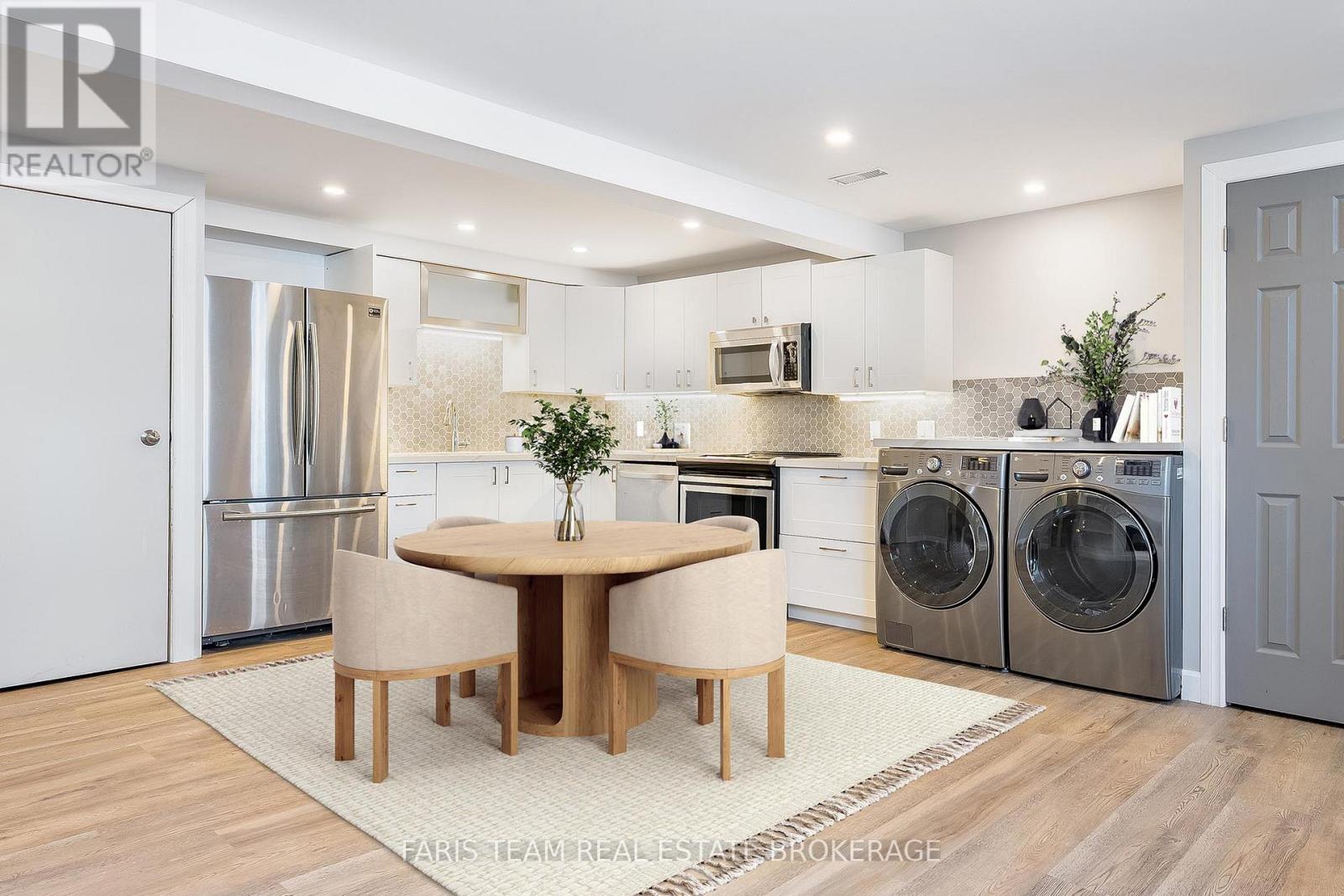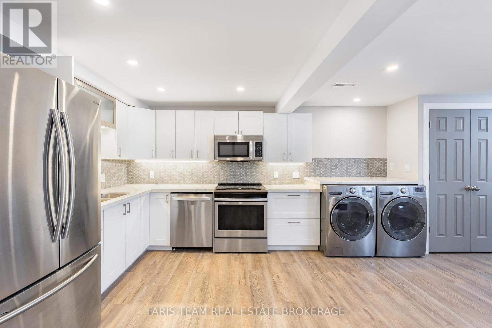 Top 5 Reasons You Will Love This Home: 1) Fantastic opportunity for investors or homebuyers seeking income while enjoying their own space, this property was renovated in 2019 with stunning finishes and offers 3+3 bedrooms spread across two levels with a generous 2,319 square feet of living space, including a main level residence, occupied with amazing tenants, while the lower level features a vacant, move-in-ready legal accessory dwelling unit 2) Nestled in a peaceful residential neighbourhood settled on a spacious lot, featuring a bright and airy main level with three bedrooms, an open-concept living room, kitchen, and dining area, two full bathrooms, and a side porch with its own private entrance from Helena Street 3) Legal accessory dwelling located on the lower level, accessible from Frank Street providing a light-filled space with three bedrooms, a 4-piece bathroom, an additional 2-piece bathroom, and a welcoming foyer, all enhanced by an open layout and a convenient built-in laundry area 4) Both units are beautifully designed with soft white walls, built-in electric fireplaces, and custom bookshelves, featuring quartz countertops in the lower level and laminate countertops on the main level, each featuring its own private deck or patio, along with separate parking spaces for added convenience 5) Located in Wasaga Beach close to stunning beaches, golf courses, skiing, and water activities, with shopping, schools, churches, and endless recreational options just moments away. 1,241 above grade sq.ft. plus a finished lower level. *Please note some images have been virtually staged to show the potential of the home. (id:4555)