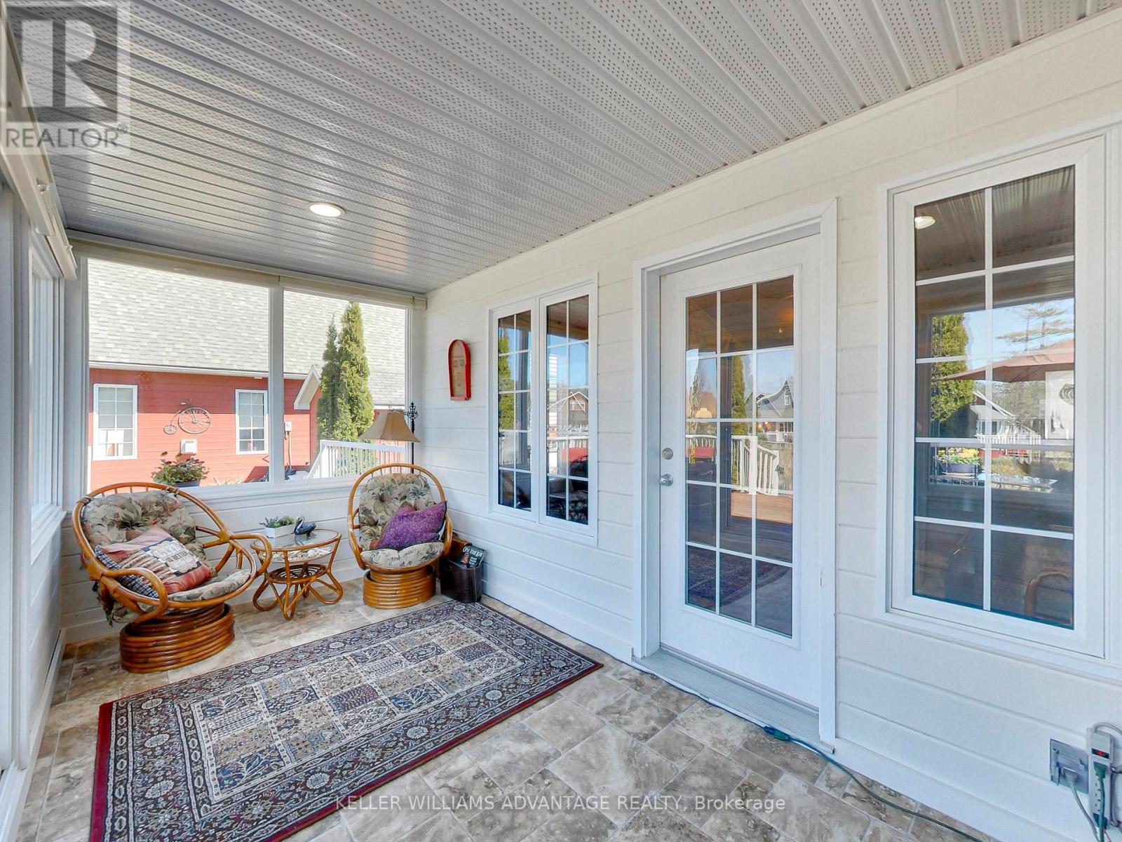 Welcome to your new home in Wasaga! This land lease home is the perfect option for 4-season living without the high purchase price. We're located in the most desirable part of the extended seasonal area of the Wasaga CountryLife resort, which means the owner is required to be away for a minimum of 30 days, which can be accumulated throughout the calendar year. This two bedroom, one washroom chalet style home features an open concept living, dining and kitchen area with cathedral ceilings and a large front porch. The kitchen includes a gas stove, built-in microwave and dishwasher as well as a fridge and reverse osmosis water system, and the gas fireplace in living room makes the space feel cozy and warm. With a washing machine and dryer in the hall between the bedrooms and washroom, you have everything on one floor and no stairs! The home is built on a full block crawlspace, where the furnace and hot water tank as well as lots of storage is located, making the 700 sf of the main floor fully available. The back of the home has an expansive sunroom, with rebuilt and insulated exterior walls, new windows (2023) and window treatments. Add insulation to the floor and ceiling and you've got the perfect 4-season sunroom. On the outside of the home, the large driveway has easy parking for two cars, a wide front deck and wonderful landscaping around the sides, plus a shed for storage. One of our favourite parts of the home is the large back deck with railings, facing onto the man-made Lake Nipissing. The spacious backyard has a fire pit for relaxing evenings and the SW exposure means you're in for some fantastic sunsets! In addition to everything this home has to offer, you have access to all of the amenities in the resort, including tennis courts, indoor and outdoor pools and much more. If you love the beach, then you'll really love the fact that it is only a short walk away, as are local shops and services. If you're ready for a new home in Wasaga Beach, come check us out! (id:4555)