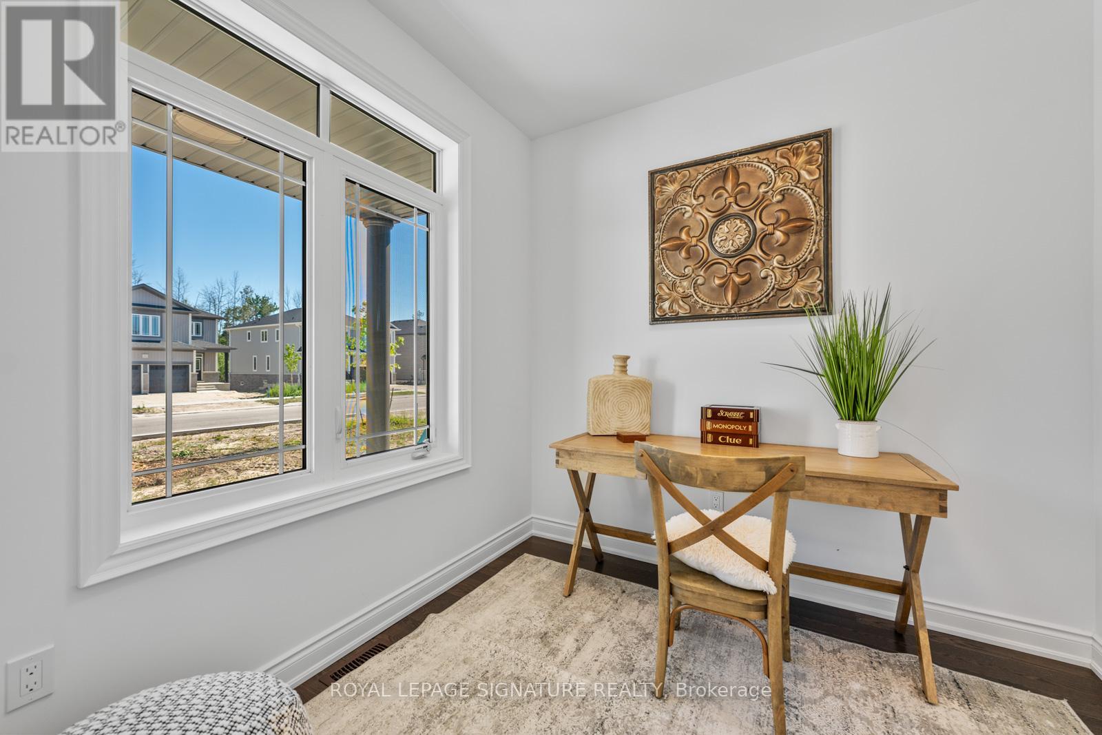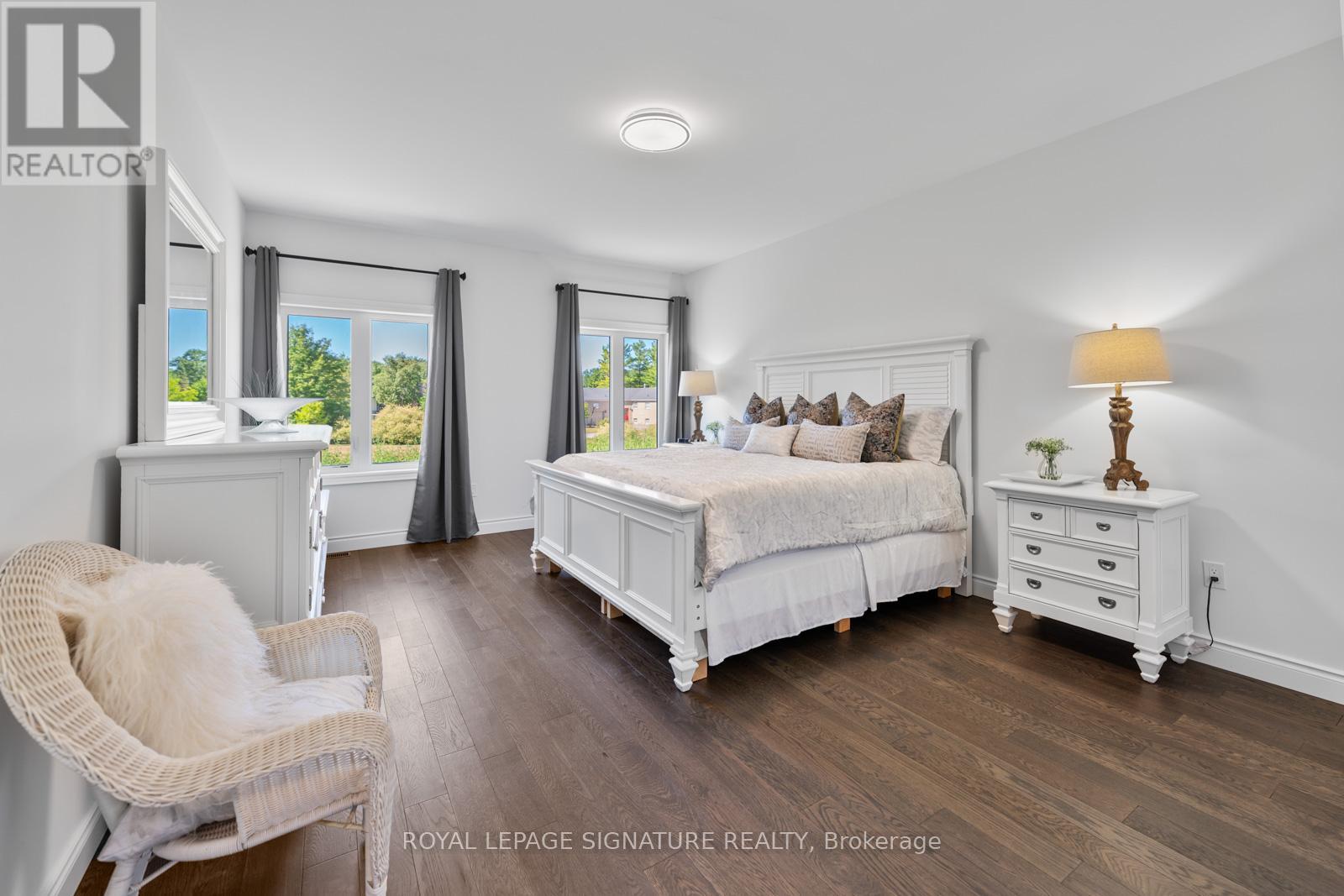 Located in the highly sought-after Wasaga Sands community, this beautifully upgraded Cedar Model by Baycliffe Communities offers 1,948 sq. ft. of thoughtfully designed living space. Just 1 year old and set on a premium 62.99 ft x 160 ft lot, this bungalow blends modern elegance with functional comfort in a serene natural setting surrounded by mature neighbourhoods and scenic trails Key Features:Striking brick and vinyl exterior*Grand double-door entry*3 spacious bedrooms + dedicated office (ideal for remote work)*9' ceilings and upgraded hardwood flooring throughout*Custom closet organizers*Modern white kitchen with upgraded cabinetry, granite/quartz countertops & large island*Open-concept layout perfect for entertaining*Primary suite with walk-in closet (with organizers) and spa-inspired ensuite featuring quartz vanity & glass shower*Laundry room with built-in cabinetry and sink*Double garage with direct access into the home*Private Backyard backing to open space/parkette*Enjoy peaceful living just 3-4 minutes to Wasaga Beach, and close to amenities, trails, and everything this vibrant lifestyle community has to offer*A perfect opportunity to own a nearly new home in one of Wasaga Beach's most desirable neighbourhoods* (id:4555)