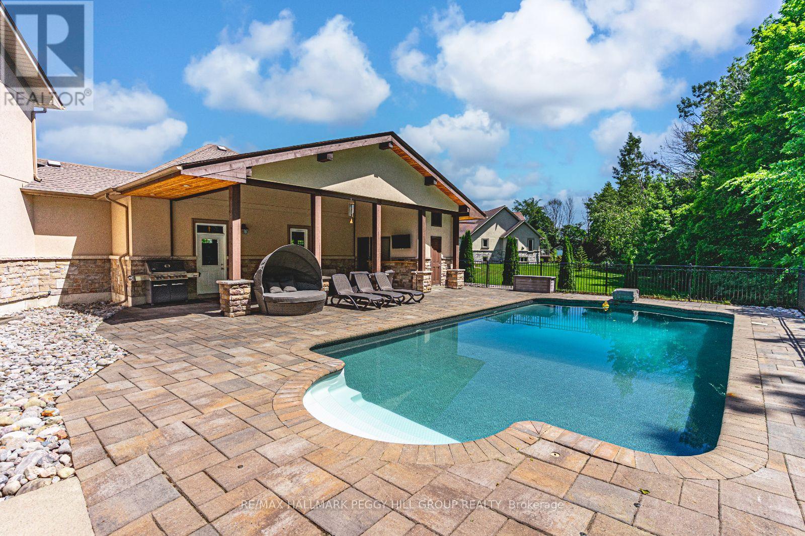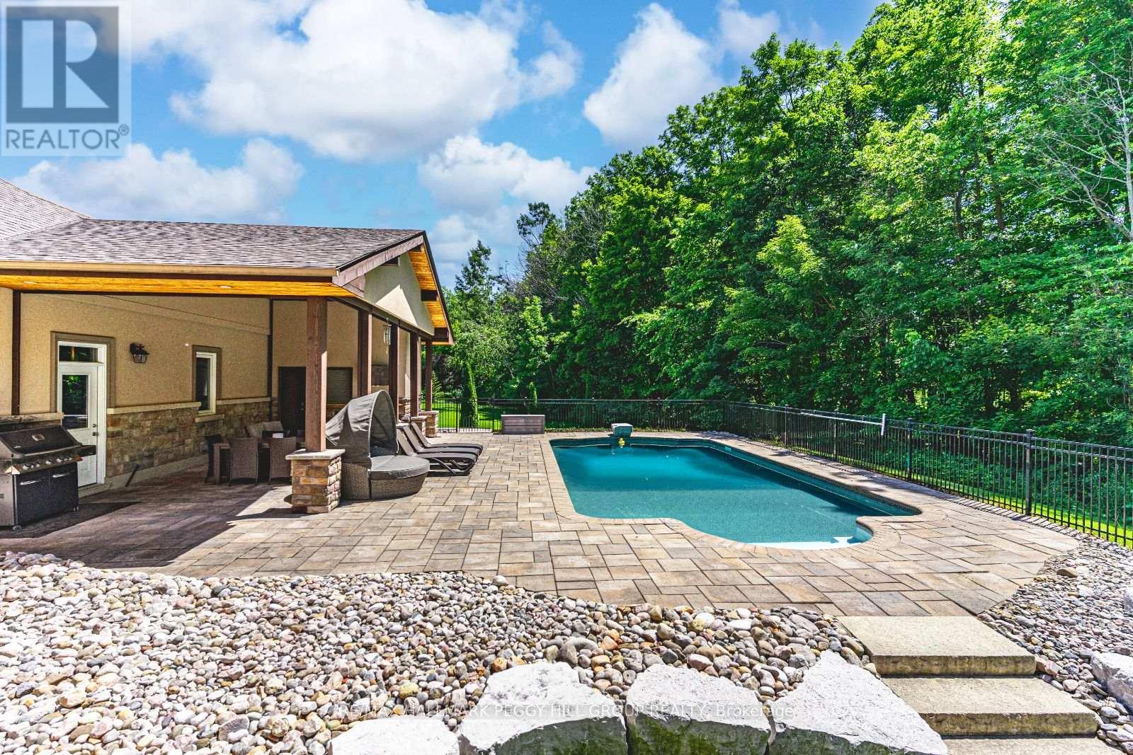 PRESTIGIOUS 2 + ACRE ESTATE WITH OVER 5,200 SQ FT, RESORT-STYLE BACKYARD & A PRIME CUL-DE-SAC SETTING! This extraordinary residence is situated in the highly coveted Wasaga Sands Estates on a private 2.12-acre estate lot with no homes directly behind, backing onto McIntyre Creek and the former Wasaga Sands Golf Course. Nestled at the end of a quiet cul-de-sac, it offers a peaceful setting just minutes from shopping, dining and daily essentials. Curb appeal presents a stone and stucco exterior, a three-car garage, manicured landscaping and a commanding architectural presence. Outdoor living is exceptional, with a heated 18 x 36 ft saltwater pool, a stone interlock patio, a pool house with a bathroom and outdoor shower, and a covered entertaining area. A composite back deck with a hot tub overlooks a private treed yard, while a fire pit, invisible pet fence, and garden shed add further charm. Over 5,200 sq ft of beautifully finished living space includes a gourmet kitchen showcasing white cabinetry, granite countertops, a centre island with a second sink, a pantry, a breakfast bar and stainless steel appliances. The open-concept dining room leads to the great room boasting expansive windows, a gas fireplace and a soaring vaulted ceiling. The main floor primary bedroom features dual walk-in closets, a walkout to the backyard and a spa-like ensuite with a soaker tub and glass shower. An elegant office with built-ins and a vaulted shiplap ceiling, a laundry room with cabinets and sink, and a mudroom with built-in bench, hooks and storage enhance main floor functionality. Upstairs, a sitting area overlooks the great room and connects to three generously sized bedrooms and a well-appointed bathroom. The finished basement, accessible via a separate entrance, adds even more space with a large rec room, two bedrooms, bonus room, and full bathroom. Designed for refined living in a tranquil setting, this remarkable #HomeToStay brings together space, comfort and elegance! (id:4555)