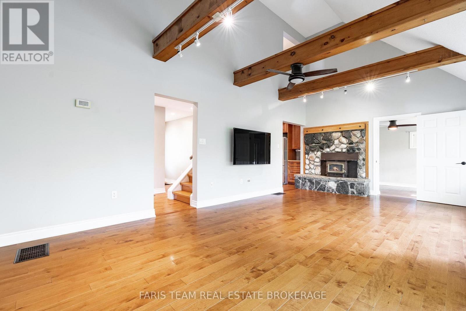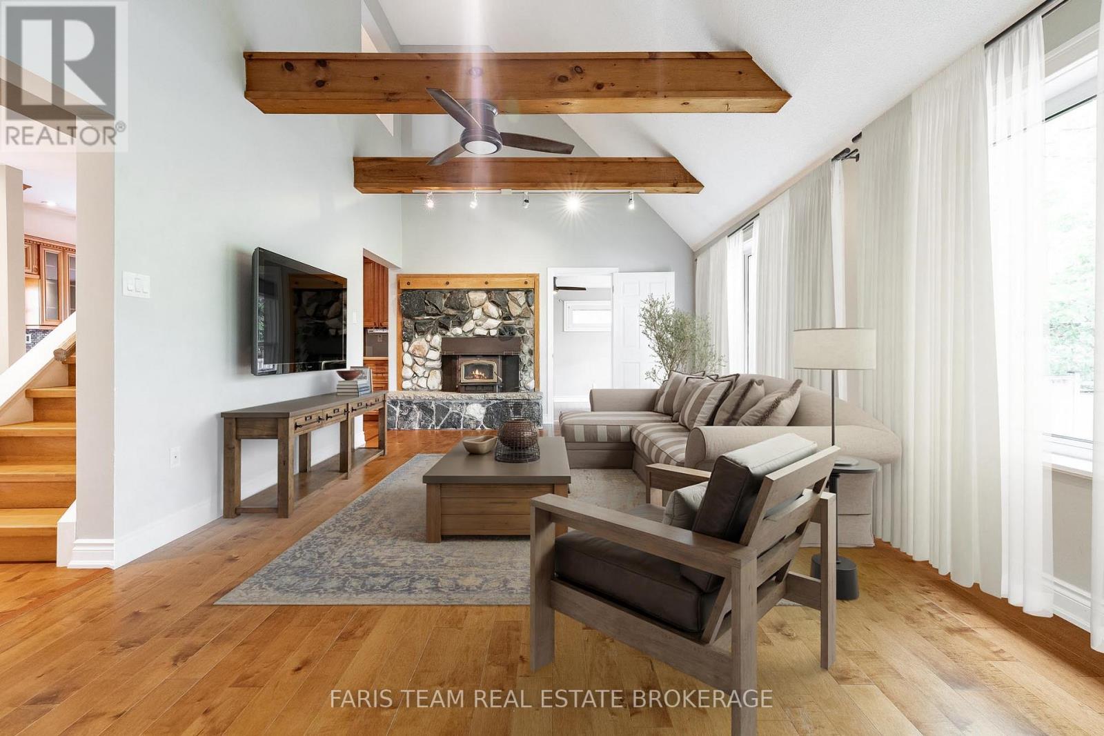 Top 5 Reasons You Will Love This Home: 1) Enjoy a generous 50'x230' lot with over 50' of waterfront, spacious backyard areas perfect for entertaining, relaxing, or heading down the stairs to kayak, boat, fish, or simply take in the river views 2) This detached 2-storey home with a finished basement features a welcoming covered front deck, main level laundry, a bright bedroom with walkout to the backyard, and a renovated4-piece bathroom with a soaker tub and separate shower for added comfort 3) The kitchen includes stainless-steel appliances, a pantry, and dining space, while the living room offers a cozy wood fireplace with a stone surround and oversized windows showcasing peaceful backyard and river views; upstairs, the primary bedroom has a walkout to a large balcony overlooking the water, plus a third bedroom and another 4-piece bathroom, great for guests or extended family 4) Expansive basement hosting a large family room, a recreation area with rough-in for a kitchen or wet bar, a fourth bedroom, another full bathroom, and an oversized cold room ideal for extra storage 5) Set on a quiet street ending in a cul-de-sac, this home offers peace and privacy close to schools, shops, golf, ski hills, and the sandy beaches of Georgian Bay, while still being a convenient commute to Barrie and the GTA. 1,743 above grade sq.ft. plus a finished basement. *Please note some images have been virtually staged to show the potential of the home. (id:4555)