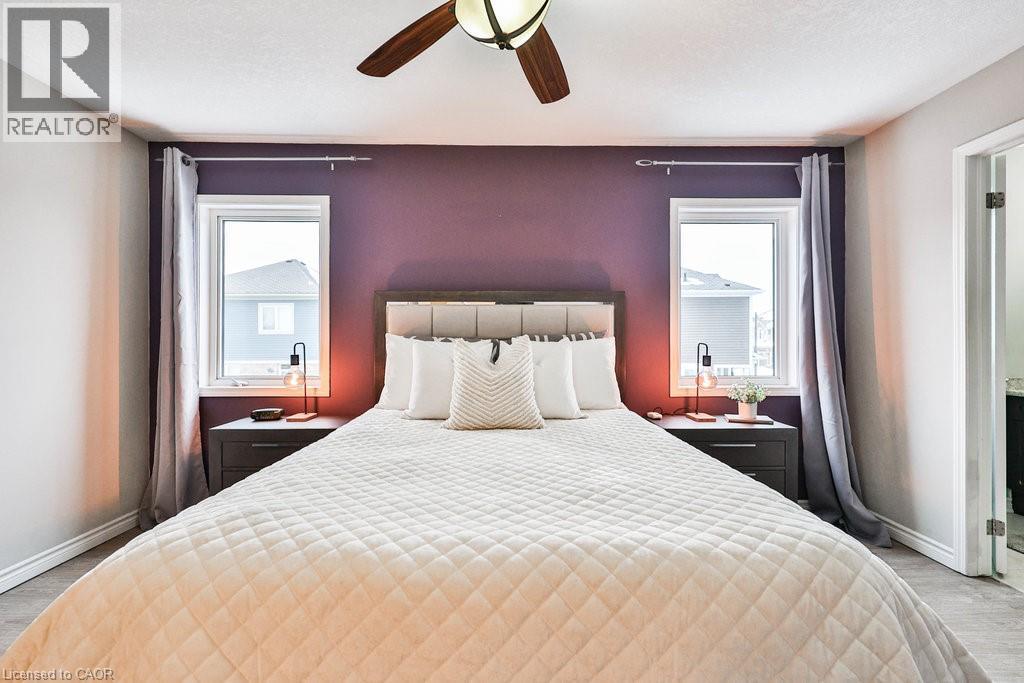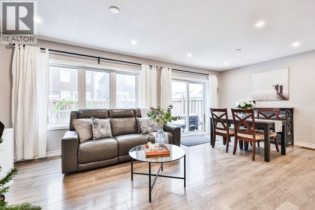 Welcome to an ideal first step into homeownership—a lovely freehold townhome nestled in one of Waterdown’s most sought-after family communities. This warm and welcoming 2-storey residence is perfectly tailored for new families looking for comfort, convenience, and room to grow. Tucked onto a quiet street with minimal through traffic, it offers peace of mind while still being just moments from parks, green space, trails, schools, shopping, and everyday essentials. Commuters will appreciate the easy access between Hamilton and Burlington, making daily routines smoother for the whole family. The inviting front exterior features professional landscaping, a deep covered porch for morning coffees, a 2-car driveway, and an automatic garage. Inside, the main level showcases an open-concept layout designed for connection, whether it’s little ones playing nearby or hosting family and friends. Laminate flooring flows throughout, leading to an eat-in kitchen with custom white cabinetry and a bright walkout to the yard. The family room is filled with natural light, creating a warm backdrop for everyday moments. Upstairs, the floorplan continues to shine for growing families. The spacious primary suite includes both a walk-in closet and an additional closet, plus a private 4-piece ensuite. Two additional bedrooms share a 4-piece main bath, giving kids, guests, or a home office their own dedicated spaces. The lower level includes laundry and the opportunity to customize further as your family’s needs evolve. Outdoors, the fully fenced yard offers a safe and private place for kids and pets to play, complete with a wooden deck for summer BBQs and mature greenery—including a beautiful hydrangea tree that blooms year after year. This is the perfect starter home in a community where families put down roots. Move in, make memories, and begin your next chapter with confidence. (id:4555)