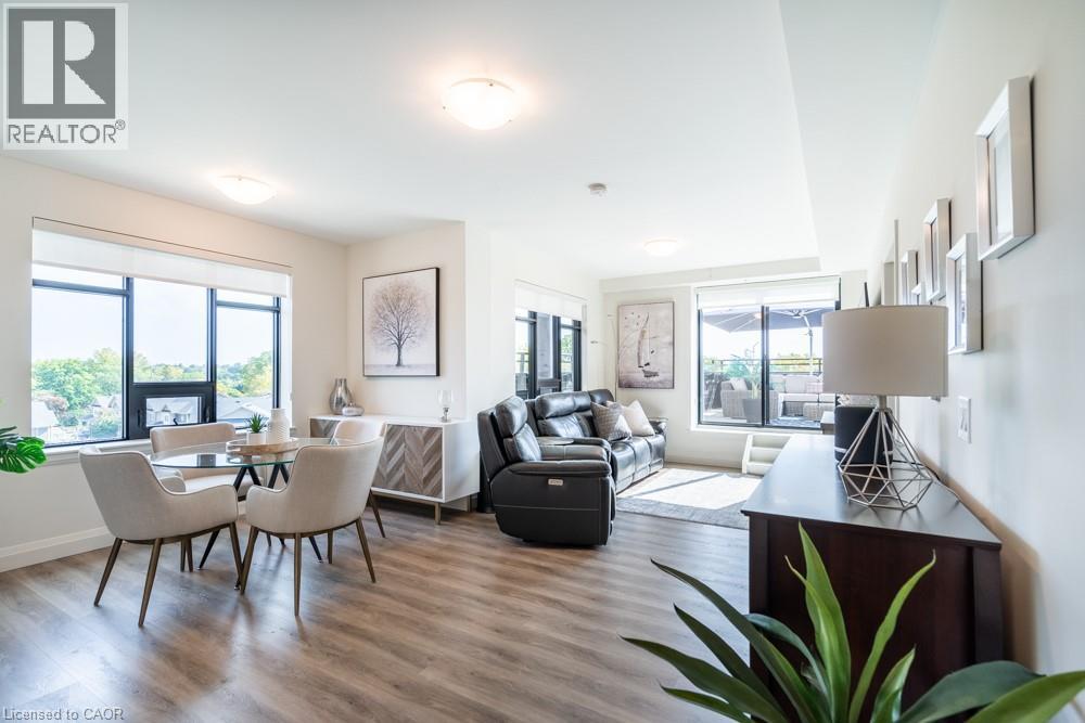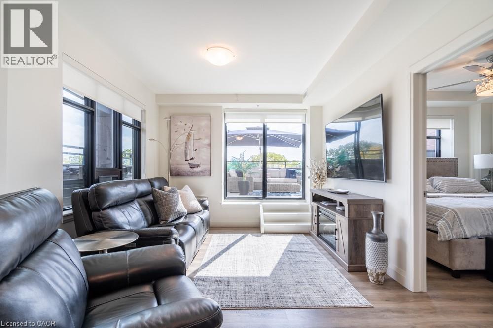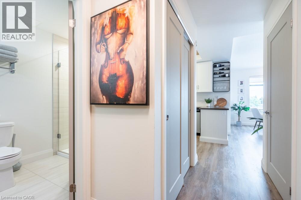 Dreaming of condo living without giving up your outdoor space? This rarely offered corner unit delivers the best of both worlds with a massive 600 sq ft private terrace perfect for entertaining, relaxing and soaking up incredible lake AND city views. Inside, you’ll find a 2-bed, 2-bath gem loaded with upgrades: a chef’s kitchen with beautiful quartz counters, clean white subway tile backsplash, soft-close custom cabinetry, undercabinet lighting and a breakfast bar. The bedrooms are spacious, and the primary suite has its own four-piece ensuite. Enjoy in-suite laundry for your convenience. That’s not all, this building has stunning amenities including a lavish party room, a dog wash station, a gym and rooftop patio. And the location? Unbeatable. Steps to restaurants, groceries, trails and highway access, all in the heart of Waterdown. This one has it all. Don’t be TOO LATE*! *REG TM. RSA. (id:4555)