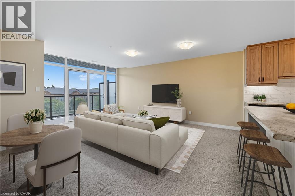 Welcome to your next home in the heart of Waterdown—a vibrant community that blends small-town charm with modern convenience. This stunning 2-bedroom, 2-bathroom condo offers stylish, open-concept living designed for comfort and connection. The bright, south-facing living and dining area is bathed in natural light and opens onto a spacious balcony, perfect for sipping your morning coffee or unwinding in the evening. The kitchen, featuring soft-closing cabinetry, under-counter lighting, a sleek backsplash, and a large island with extra storage and a breakfast bar for casual dining or entertaining. The generous primary suite is a true retreat, complete with a massive walk-in closet and a 4-piece ensuite boasting double sinks and an oversized shower. With in-suite laundry and ample storage throughout, this home checks every box for functionality and ease. Whether you’re a nature lover or a social butterfly, the location is unbeatable—just steps from scenic hiking and biking trails, parks, and a variety of shops, pubs, and restaurants. Plus, you’re only a short drive from the YMCA and library, and minutes from the Aldershot GO Station, making commuting a breeze. This is modern living with a warm community feel—don’t miss your chance to call it home. Pets permitted. Max weight for dogs is 50 pounds. (id:4555)