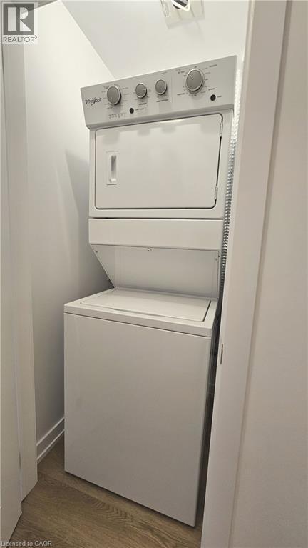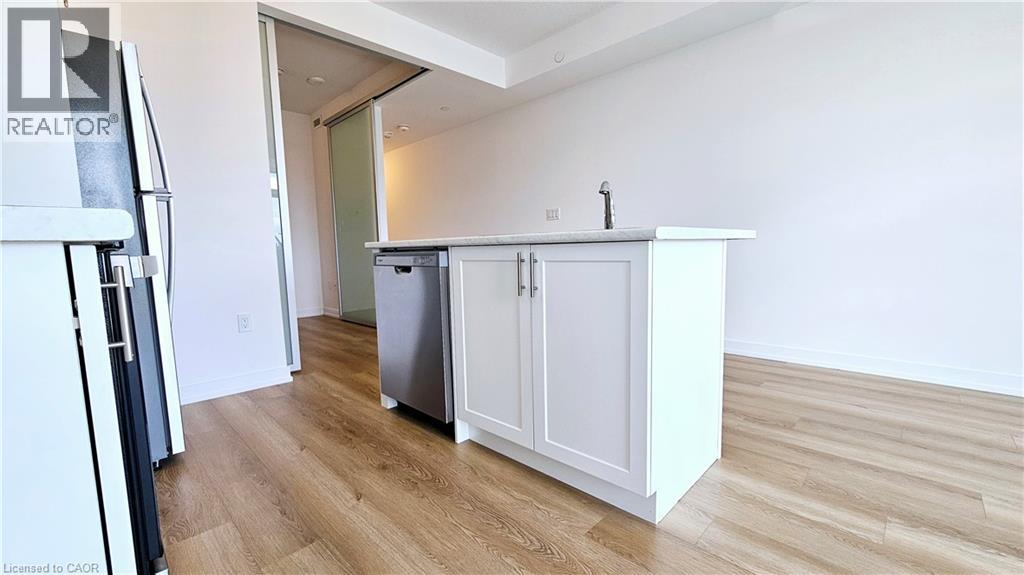 Welcome to 470 Dundas St East, a brand new condo building in a great location. Located on the 3rd floor this bright modern unit features, stainless steel appliances, a kitchen island, sand coloured vinyl plank flooring, 4 piece bathroom, large private bedroom, insuite laundry & south facing balcony with great views. Building amenities include exercise room, party room, and rooftop patio with deck & bbqs. Includes one surface parking spot & dedicated locker. Close to amenities, old Waterdown, 407, minutes from Aldershot Go & highway access. Move in ready perfect for bachelor, young professional or couple. (id:4555)