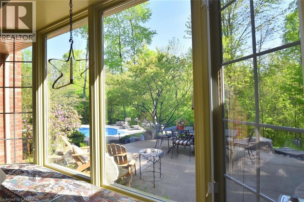 A truly magical property! Strategically positioned to capture the woodland views & natural sunlight in the house & on the pool, this custom built, meticulously maintained home on the outskirts of Waterdown is a family's dream come true. Whether playing games on the sprawling lawn, reading in the gazebo, lounging by the pool, hiking through your own woods or finishing your day with smores by the campfire, this home is sure to suit a growing family. Entertain in the formal living room, dining room with recessed buffet, cozy up by the fire in the family room or take in the views in the sun filled sunroom and count the endless number of bird species always at the feeder. Enjoy gathering around the island in the spacious kitchen with ample cabinets & a desk area. Enjoy a restful primary suite and 3 additional bedrooms in the main house. Work from home with a separate private entrance to office. Also there is a 3pce bath conveniently located to serve the main floor & pool guests adjacent to the laundry room entrance and access to the loft / office with kitchen area that can easily accommodate a nanny/ in-law /teenager suite and has its own heat pump for heating & cooling. The lower level has an excellent workshop & is otherwise an open canvas for whatever your heart desires. This is where dreams do come true! (id:4555)