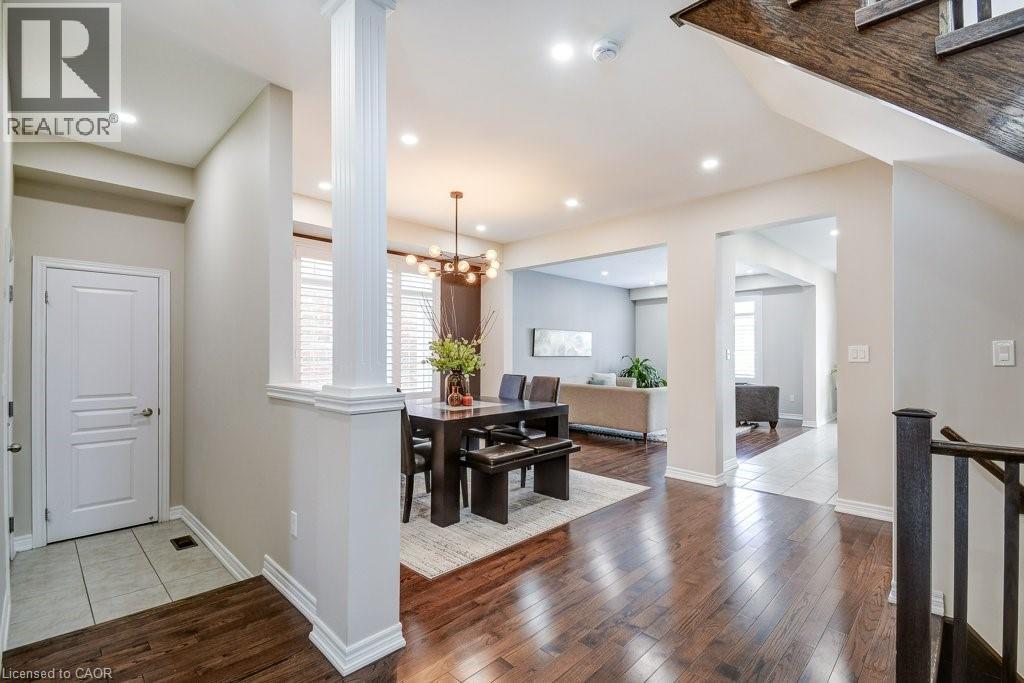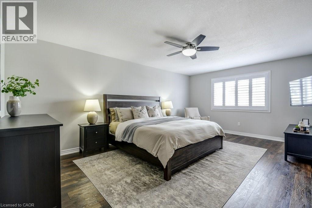 Turnkey detached home on a rare cul-de-sac. Tucked away on a quiet, child-friendly court, this gorgeous, detached home is in one of the lucky few newer subdivisions with a park, playground and basketball court. Set on a pool-size lot, the backyard features a maintenance-free composite deck, a stunning stamped concrete patio with space for both dining and lounging, plus plenty of grassy area for kids and pets to play_ Inside, the bright, carpet-free layout showcases upgraded oversized windows with transoms and California shutters throughout. The open-concept main floor offers a spacious dining room, great room and eat-in kitchen with direct backyard access, ideal for everyday living and entertaining. Escape to the oversized Primary Suite with private ensuite, double sinks, large shower and walk-in closet. The professionally finished lower level makes an ideal teenage retreat, featuring a 5th bedroom, spacious family room, gym area, study, and full bathroom. Close to schools, YMCA, trails, golf courses, everyday amenities, and offering quick access to Aldershot GO, Hwy 6, 403, 407 and the QEW. Truly a move-in ready home in a family-friendly neighbourhood. (id:4555)