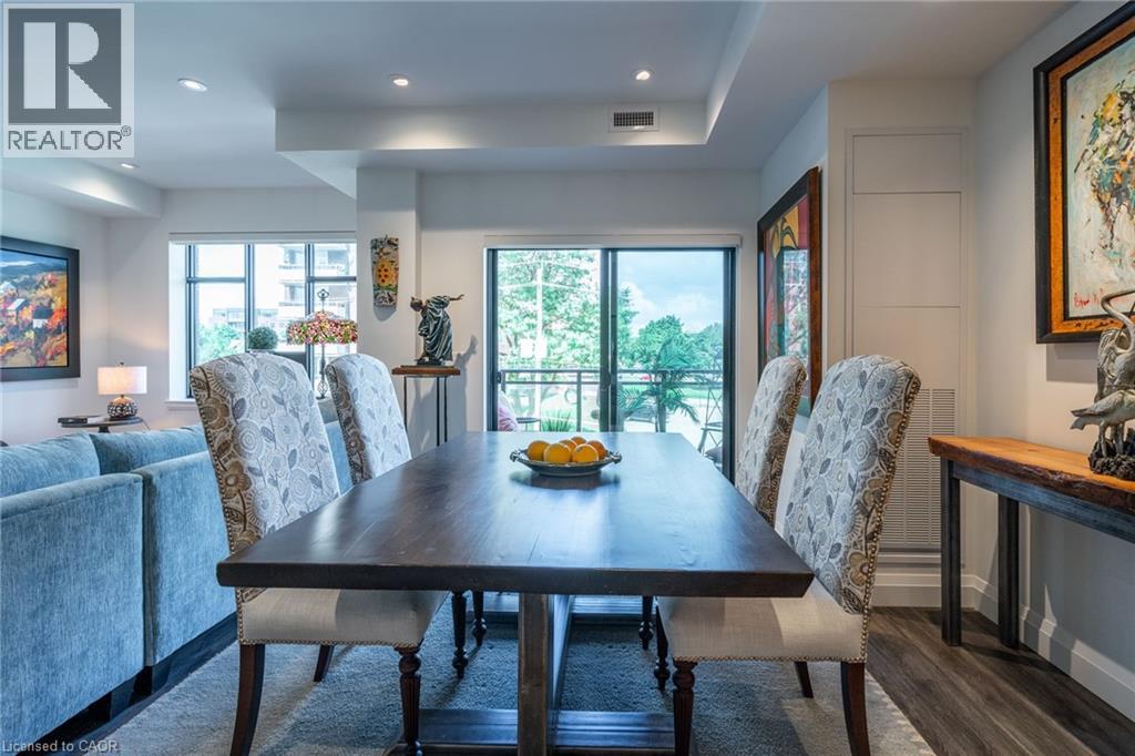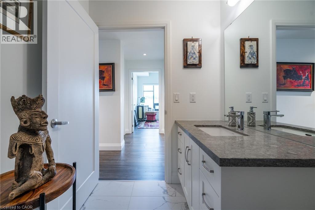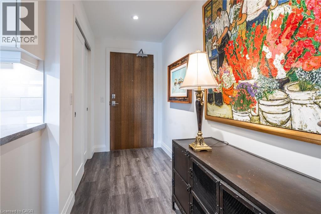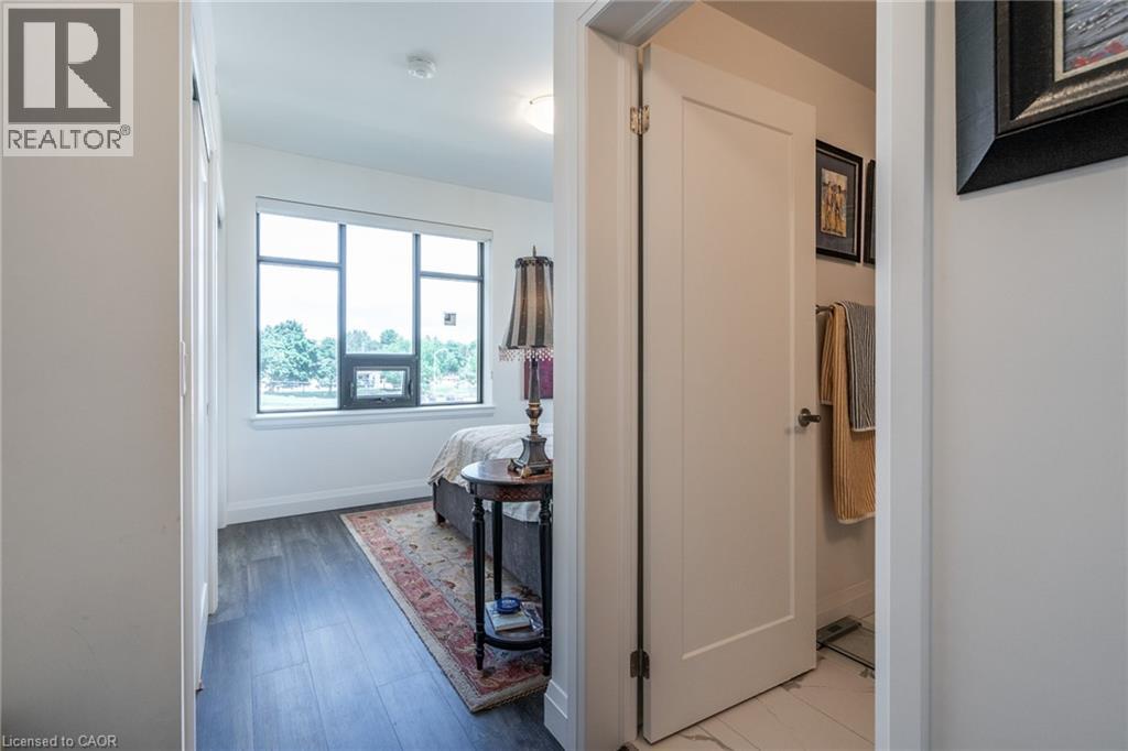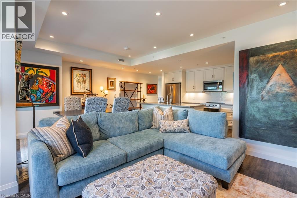 Experience upscale living at 213-30 Hamilton Street South, a sophisticated two-bedroom, two-bathroom, 1,170 square foot corner residence in the prestigious The View Condominium, in downtown Waterdown. This contemporary building offers exceptional amenities—concierge service, a state-of-the-art fitness center, stylish party room, pet washing station, rooftop terrace, and lush garden. Inside, floor-to-ceiling windows frame sweeping views and flood the open-concept living, dining, and kitchen spaces with natural light. The kitchen features a large island, premium appliances, and elegant finishes. Step onto your private balcony to savor morning coffee or take in breathtaking sunsets. The primary suite impresses with two walls of windows and a serene ambiance, complemented by a spa-inspired ensuite. The second bedroom is perfect for guests or a refined home office. In-suite laundry, underground parking, and a storage locker complete the offering. Stroll to boutiques, fine dining, cafés, and markets, with quick access to major highways. Luxury, location, and lifestyle—perfectly combined. Don’t be TOO LATE*! *REG TM. RSA. (id:4555)