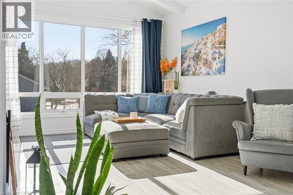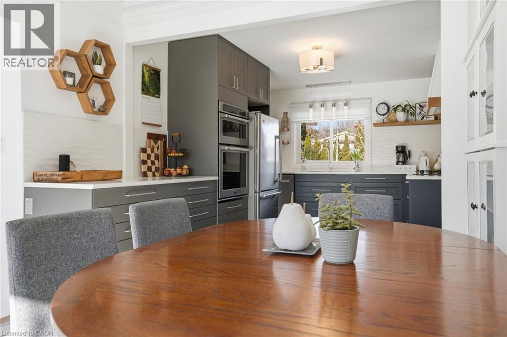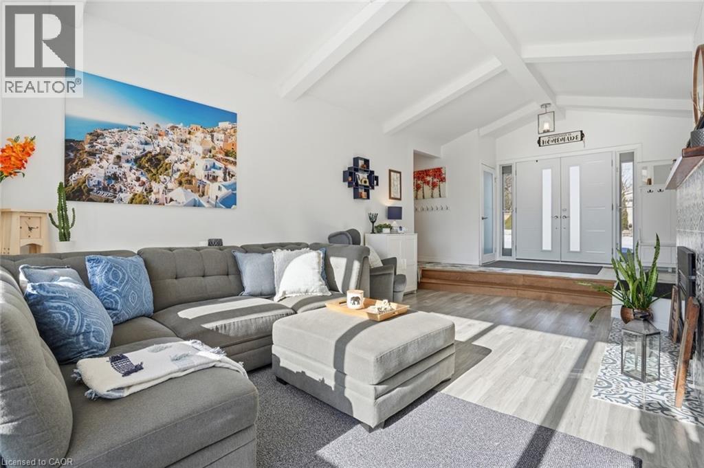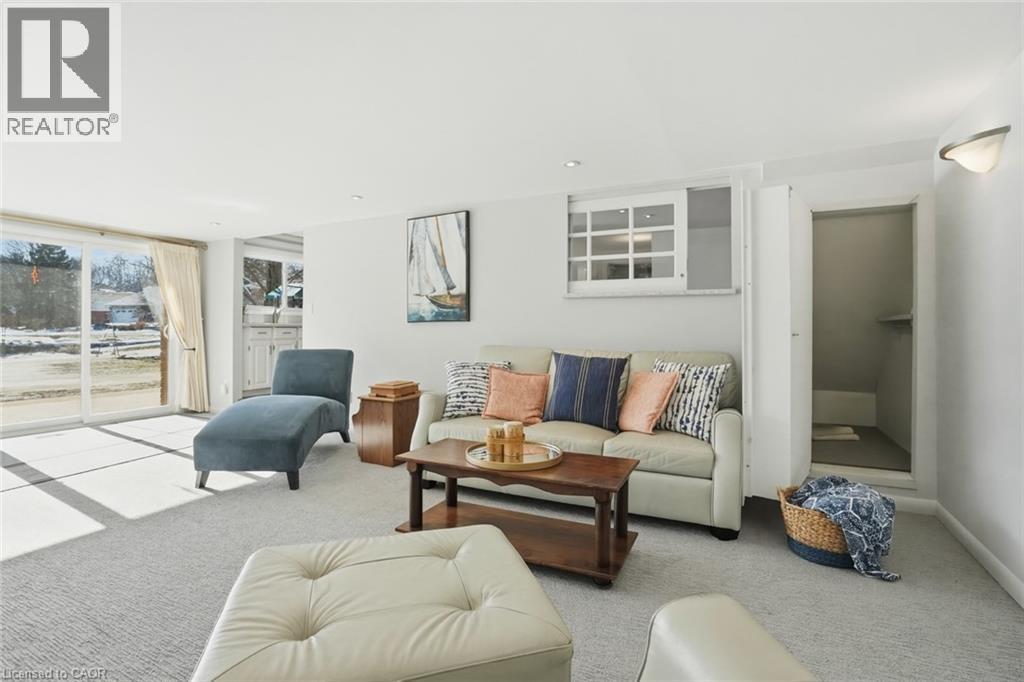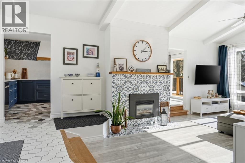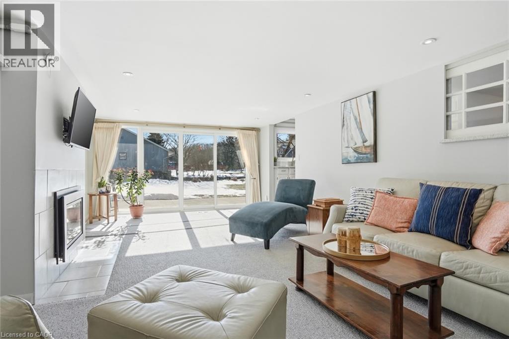 Incredible and rare opportunity to call this bungalow home—complete with an above-grade in-law suite—situated on an oversized lot in the mature south end of Waterdown. Step inside the main level and be greeted by a bright, airy living room highlighted by cathedral ceilings, a cozy gas fireplace and expansive sun-soaked windows. The updated kitchen impresses with navy shaker cabinetry, stainless steel appliances, quartz countertops, an abundance of drawers and thoughtfully designed built-in storage. A bonus office/den is conveniently located just off the kitchen. Down the hall are three tastefully updated bedrooms, two of which feature balconies—ideal for enjoying your morning coffee. An updated full bathroom with a dual vanity completes this level. The lower level offers a fully self-contained in-law suite with its own entrance, featuring two bedrooms, a full bathroom, a bright white kitchen, a spacious family room with a gas fireplace, a den/office and a dedicated laundry room. Floor-to-ceiling sliding doors and large windows flood the space with natural light, creating an exceptionally comfortable living environment. Outside, the impressive lot provides endless possibilities. Enjoy a detached single garage/shop, a second single garage, two driveways for ultimate convenience and an expansive yard where the kids can run, play and make lifelong memories. Homes like this are truly rare—just the second owner in over 61 years. This is the one. Don’t be TOO LATE*! *REG TM. RSA. (id:4555)
