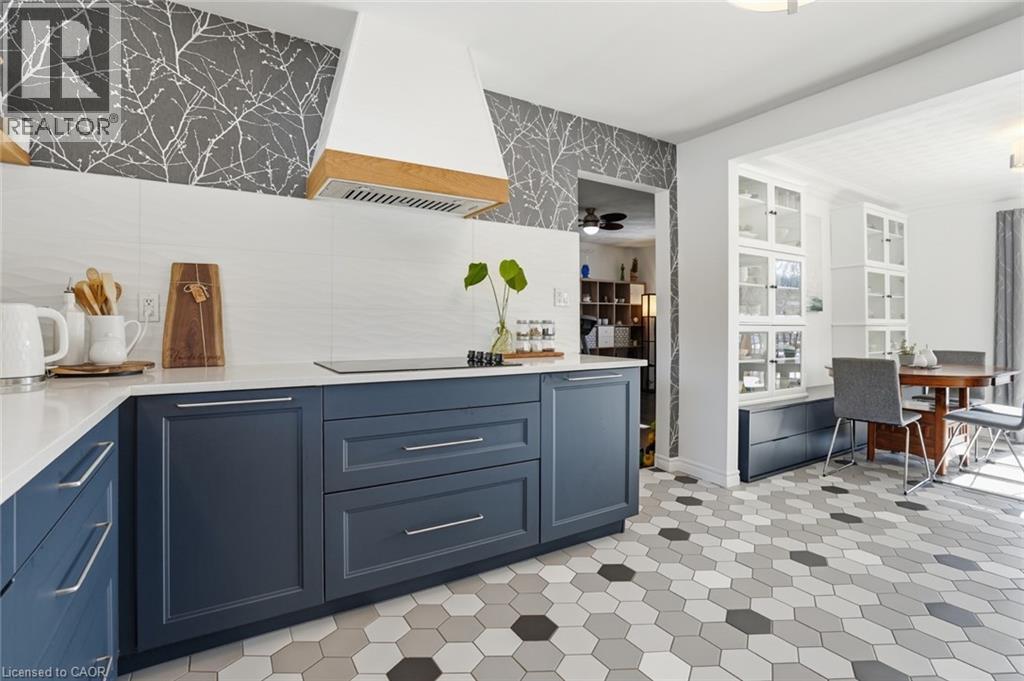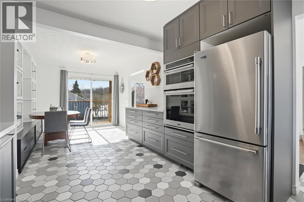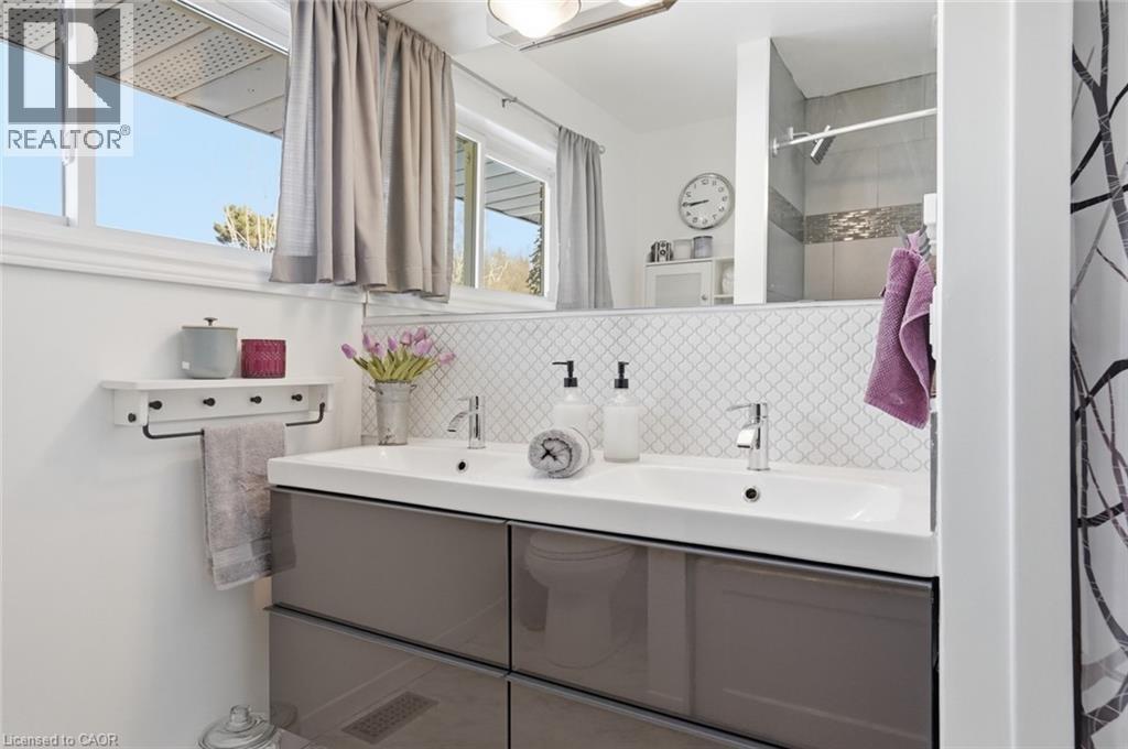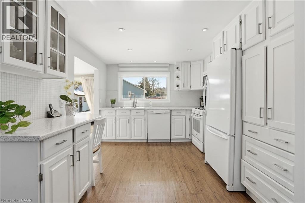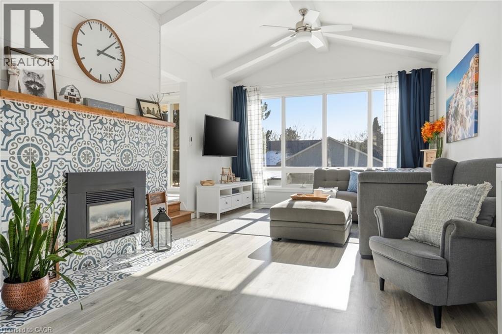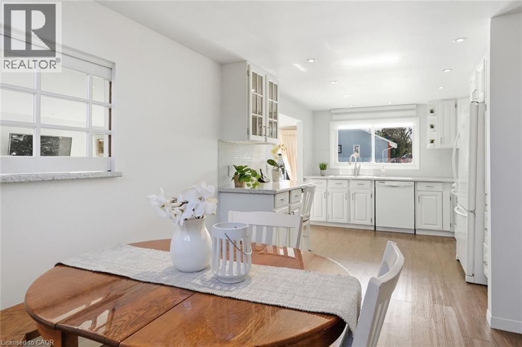 Incredible and rare opportunity to call this bungalow home—complete with an above-grade in-law suite—situated on an oversized lot in the mature south end of Waterdown. Step inside the main level and be greeted by a bright, airy living room highlighted by cathedral ceilings, a cozy gas fireplace and expansive sun-soaked windows. The updated kitchen impresses with navy shaker cabinetry, stainless steel appliances, quartz countertops, an abundance of drawers and thoughtfully designed built-in storage. A bonus office/den is conveniently located just off the kitchen. Down the hall are three tastefully updated bedrooms, two of which feature balconies—ideal for enjoying your morning coffee. An updated full bathroom with a dual vanity completes this level. The lower level offers a fully self-contained in-law suite with its own entrance, featuring two bedrooms, a full bathroom, a bright white kitchen, a spacious family room with a gas fireplace, a den/office and a dedicated laundry room. Floor-to-ceiling sliding doors and large windows flood the space with natural light, creating an exceptionally comfortable living environment. Outside, the impressive lot provides endless possibilities. Enjoy a detached single garage/shop, a second single garage, two driveways for ultimate convenience and an expansive yard where the kids can run, play and make lifelong memories. Homes like this are truly rare—just the second owner in over 61 years. This is the one. Don’t be TOO LATE*! *REG TM. RSA. (id:4555)