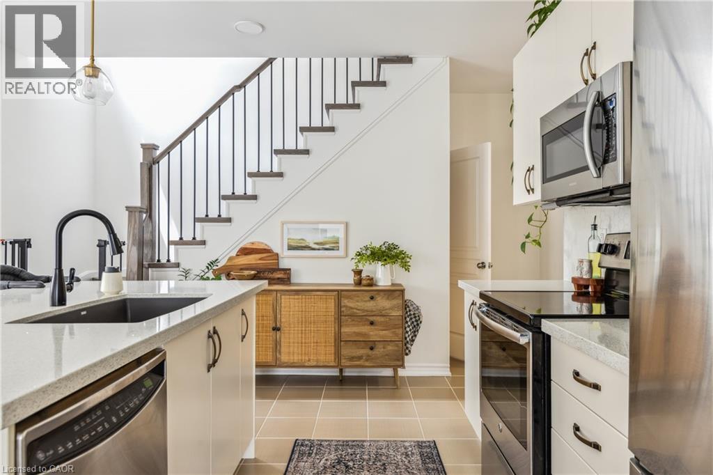 URBAN ELEGANCE MEETS MODERN COMFORT! Welcome to this fabulous freehold townhome nestled in a highly desirable area of Waterdown. This rare end unit boasts three spacious bedrooms and a double car garage allowing for four vehicle parking a true luxury in today's market! With an impressive 2,200 square feet of finished living space, this home offers room to breathe and grow. The gourmet kitchen features an extended island with a convenient breakfast bar, premium stainless steel appliances, and abundant cabinet space for all your culinary needs. Upstairs, you'll discover three generously sized bedrooms, including a stunning primary bedroom complete with a three-piece ensuite and a walk-in closet expertly fitted with organizers. Step outside to enjoy morning coffee or evening relaxation on your private balcony, complete with a gas line for barbecuing enthusiasts. Second-floor laundry with a utility sink adds everyday convenience. The professionally finished lower level provides additional entertaining space perfect for family movie nights or hosting friends. A 3 pc bathroom, and ample storage complete the level. Recently refreshed with fresh paint throughout, this immaculate home is move-in ready. The child-friendly neighbourhood offers peace of mind for families, while proximity to Waterdown District High School (just 381 meters away) and Memorial Park makes this location ideal. Enjoy the convenience of walking to shops, restaurants, and recreational areas. Commuters will appreciate easy highway access and just a 10-minute drive to Aldershot GO Station. Your urban oasis awaits! (id:4555)