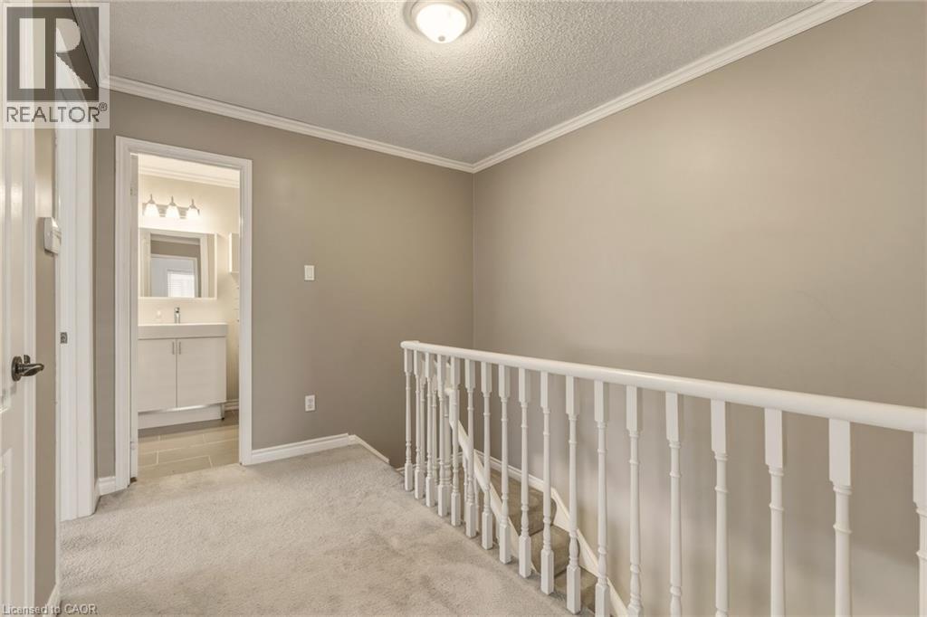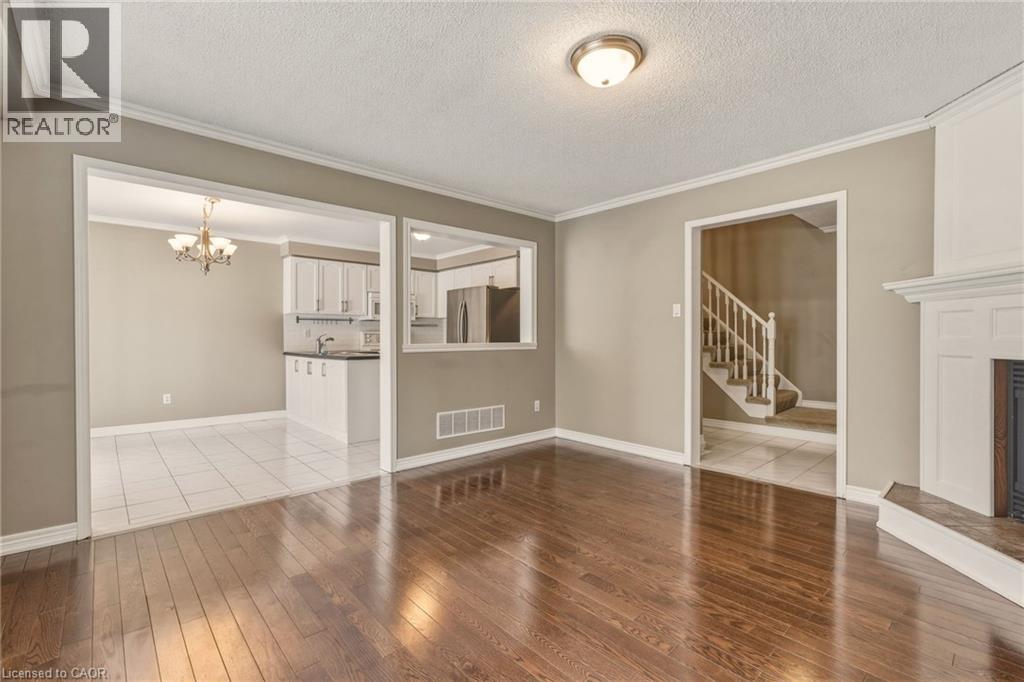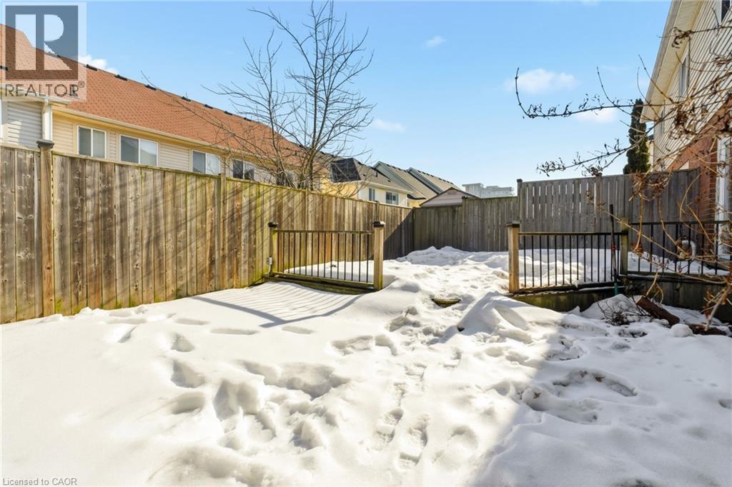 Presenting this 3-bedroom freehold townhouse featuring 2 bathrooms and a fully finished basement, offering over 1,450 sq ft of living space and ready for your personal finishing touches. The spacious bedrooms provide plenty of room for a growing family, while the open-concept main floor offers a bright and functional layout with direct access to the backyard—perfect for entertaining family and friends. The finished basement, complete with a bar, creates the ideal retreat for relaxing or enjoying movie nights at home. Recent updates include a new roof completed in 2025, providing added peace of mind for the next owner. Located on the east end of Waterdown, this home is ideal for commuters with convenient access to major highways, Aldershot GO Station, and nearby parks, schools, and amenities. The property also includes two parking spaces, adding everyday convenience for homeowners and guests. A fantastic opportunity to add your own style and make this home truly your own. (id:4555)