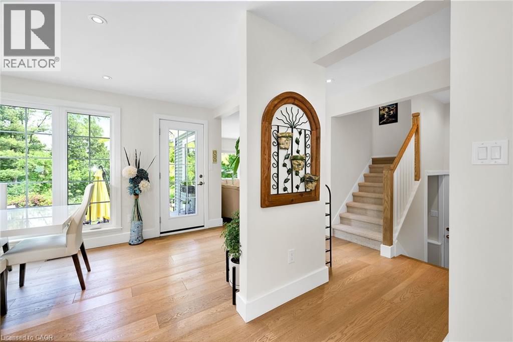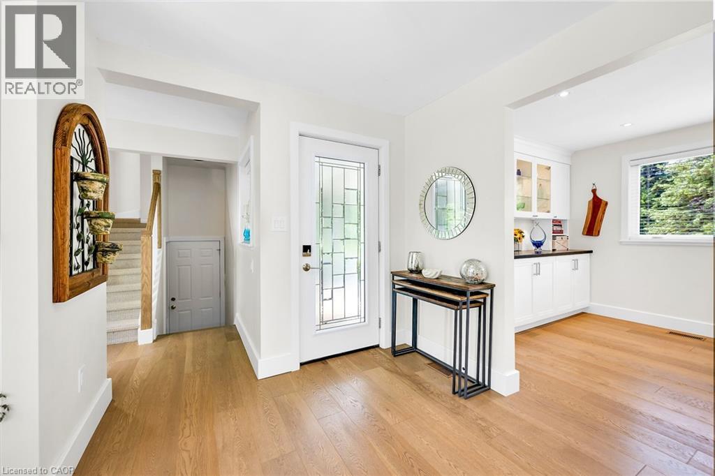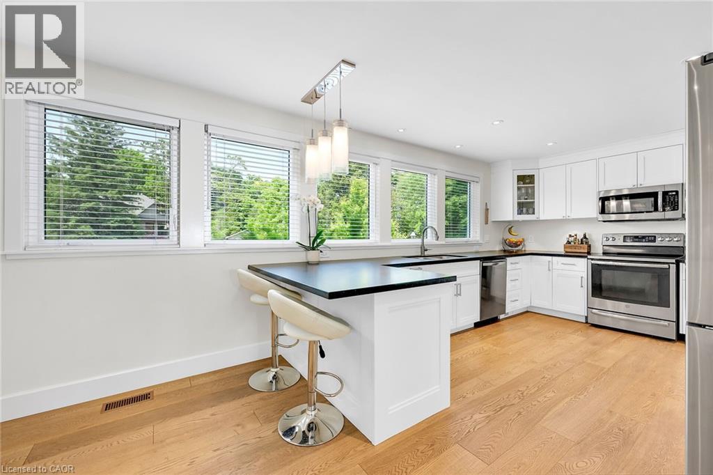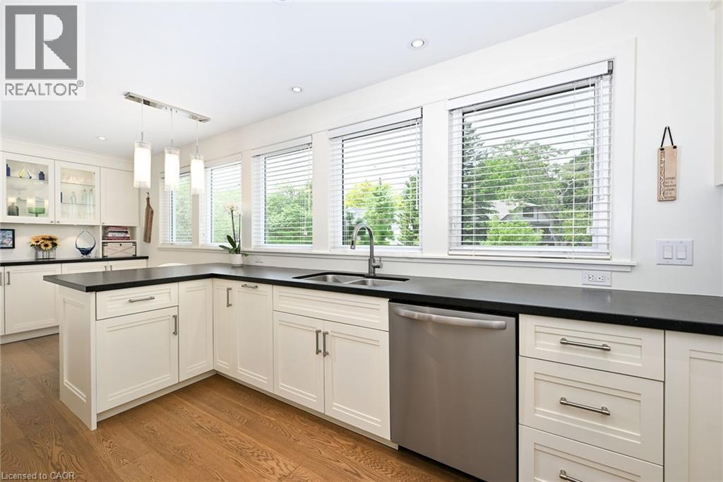 Dreaming of a beautifully updated home, on a picturesque 0.45 acre private lot, located in a family friendly neighbourhood, at the end of a quiet court? Welcome to 140 Wellington Street in charming Old Waterdown, being offered for the first time in over 30 years! The curb appeal is exceptional with a custom stone patio, water feature and gorgeous gardens. Inside, a calming neutral palette and engineered hardwood flow across the main level. The custom eat-in kitchen is a chef’s delight, featuring granite counters, abundant cabinetry, a breakfast bar and a large picture window overlooking the lush front gardens. Adjoining dining and living areas are bright and airy, with wall-to-wall windows framing stunning views of the park-like backyard. The private second-level primary retreat offers peaceful seclusion and beautiful views overlooking your pristine property. The main floor also includes two generous bedrooms and an updated 4-piece bath. The lower level adds a fourth bedroom with a walk-in closet, a modern 3-piece bath, laundry, lots of storage, a workshop and excellent potential for a future rec room. The backyard is an outdoor enthusiast’s paradise, featuring stunning perennial gardens, mature trees for exceptional privacy, a tranquil water feature, custom stone patios perfect for entertaining, newer fencing, and a fully enclosed vegetable garden. Practical extras include a double driveway, attached double garage with inside entry and direct basement access, and parking for up to six cars. Ideally located within walking distance to shops, restaurants, trails, schools and parks, with quick access to the GO train and major highways. Extensively updated and move-in ready. Simply unpack and enjoy your new home! (id:4555)
