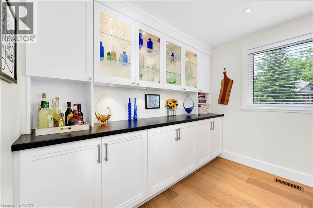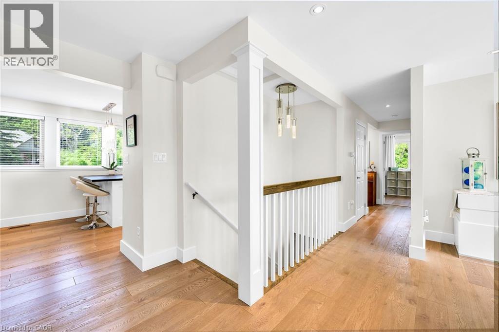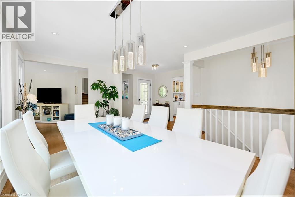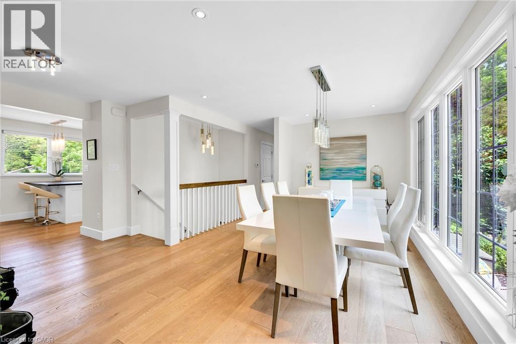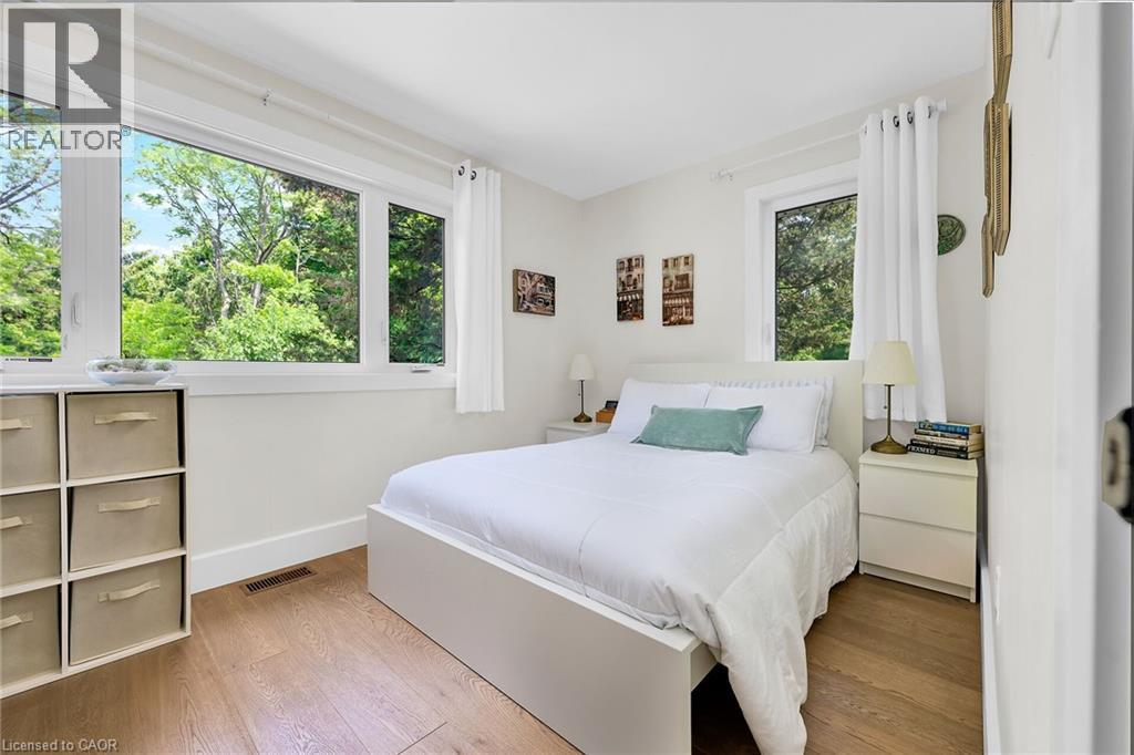 Dreaming of a beautifully updated home, on a picturesque 0.45 acre private lot, located in a family friendly neighbourhood, at the end of a quiet court? Welcome to 140 Wellington Street in charming Old Waterdown, being offered for the first time in over 30 years! The curb appeal is exceptional with a custom stone patio, water feature and gorgeous gardens. Inside, a calming neutral palette and engineered hardwood flow across the main level. The custom eat-in kitchen is a chef’s delight, featuring granite counters, abundant cabinetry, a breakfast bar and a large picture window overlooking the lush front gardens. Adjoining dining and living areas are bright and airy, with wall-to-wall windows framing stunning views of the park-like backyard. The private second-level primary retreat offers peaceful seclusion and beautiful views overlooking your pristine property. The main floor also includes two generous bedrooms and an updated 4-piece bath. The lower level adds a fourth bedroom with a walk-in closet, a modern 3-piece bath, laundry, lots of storage, a workshop and excellent potential for a future rec room. The backyard is an outdoor enthusiast’s paradise, featuring stunning perennial gardens, mature trees for exceptional privacy, a tranquil water feature, custom stone patios perfect for entertaining, newer fencing, and a fully enclosed vegetable garden. Practical extras include a double driveway, attached double garage with inside entry and direct basement access, and parking for up to six cars. Ideally located within walking distance to shops, restaurants, trails, schools and parks, with quick access to the GO train and major highways. Extensively updated and move-in ready. Simply unpack and enjoy your new home! (id:4555)