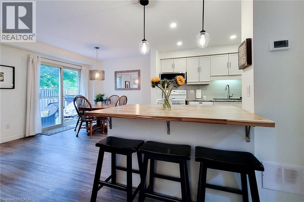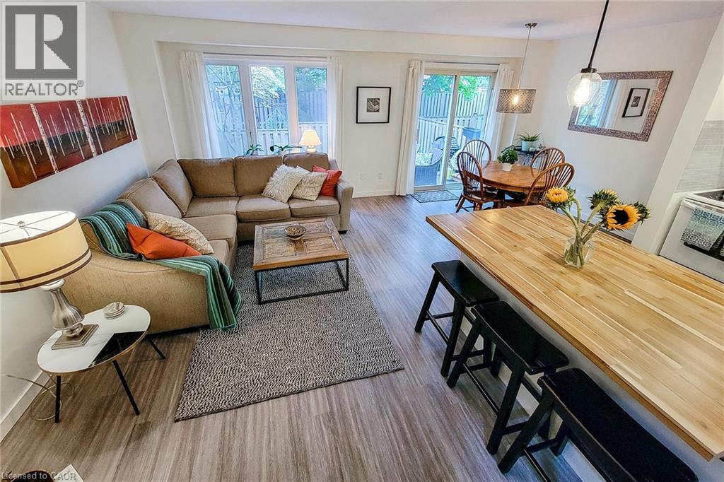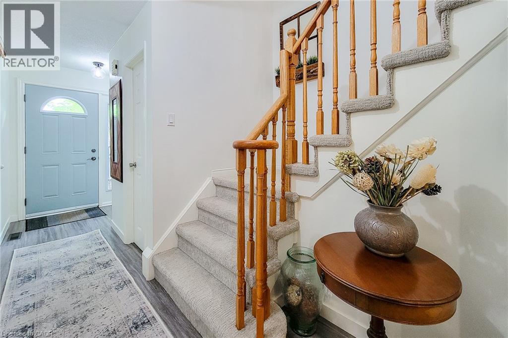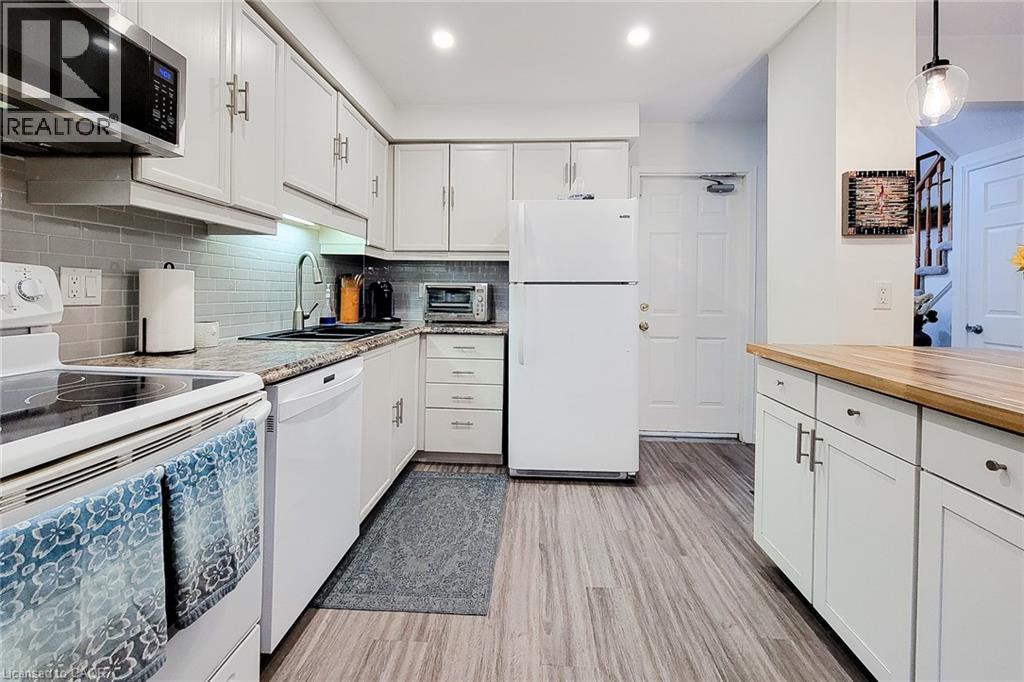 Welcome to this charming townhouse in a mature, family-friendly neighbourhood surrounded by single-family homes and an Elementary school. Ideally located within walking distance to schools, shopping, the YMCA, transit, medical facilities, parks and more. This home offers unbeatable convenience and a great lifestyle. The bright and spacious main floor features an open-concept layout with a modern kitchen, including an island, flowing into the dining area and a great room with a cozy fireplace. Enjoy easy access to the rear deck, a convenient two-piece bathroom and direct entry from the garage. Upstairs, you'll find three generous bedrooms. The primary bedroom offers ensuite privileges to the main four-piece bath for added comfort. The partially finished basement includes a laundry area, utility and storage space and a versatile area ready for your personal touch-ideal for a home office, gym, or recreation room. Professionally painted, this home is move-in ready and shows beautifully. Book your private showing today-this one won't last. * Recent renovations to the front porch/steps not reflected in photos. Please do not let the cat out. (id:4555)