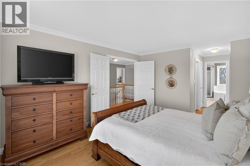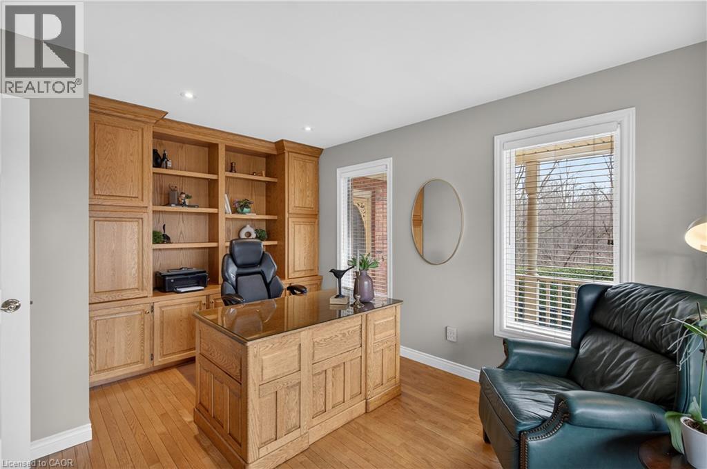 Tucked away on a quiet street in one of South Waterdown’s most desirable neighbourhoods, this spacious home sits on a pie-shaped lot backing onto a forest and the Bruce Trail; offering the kind of space, privacy, and setting that families are always searching for. The main floor features generous living spaces filled with natural light from large windows overlooking the private backyard. Crown moulding throughout adds a finishing touch. At the heart of the home, the kitchen offers a large island, abundant cabinetry, a walk-in pantry, along with a convenient butler’s pantry connecting the kitchen to the dining room which is perfectly designed for effortless hosting and everyday living. A sunken family room adds warmth and character, while a dedicated main floor office and main floor laundry provide the practical spaces today’s households want and need. Upstairs, the primary suite features a four-piece ensuite, a walk-in closet, and additional closet space. Three additional bedrooms provide plenty of room for growing families, complemented by a spacious main bathroom designed to easily accommodate busy mornings.The finished lower level adds even more living space with a large recreation room, a charming playroom, an additional bedroom, and a four-piece bathroom, making this space ideal for guests, teens, or extended family. Large above-grade windows fill the space with natural light, creating a bright and welcoming lower level, while the walkout provides direct access to the backyard. Outdoors, the private lot is truly spectacular, offering a peaceful setting surrounded by mature trees. Also featuring a rarely offered workshop with garage-door access provides incredible flexibility for hobbyists, storage, or creative projects. Complete with a charming front porch and a double garage with loft-style storage, this is a home defined by generous space, thoughtful design, and a truly special setting in South Waterdown offering the ultimate in privacy and tranquility. (id:4555)