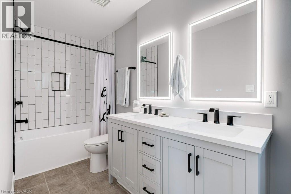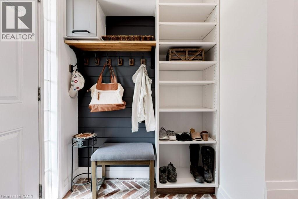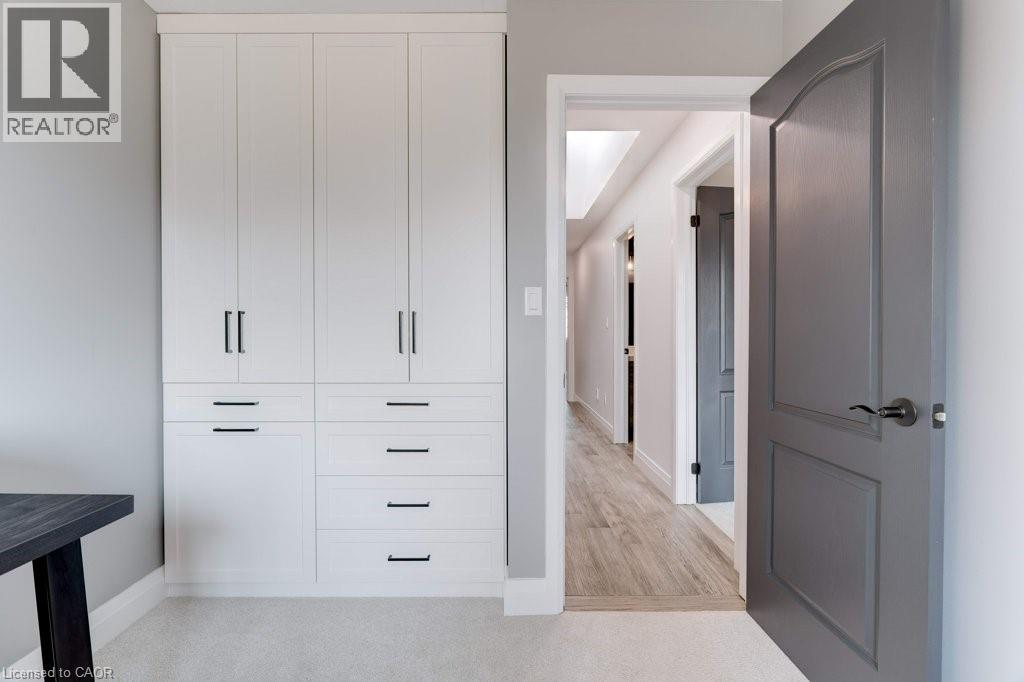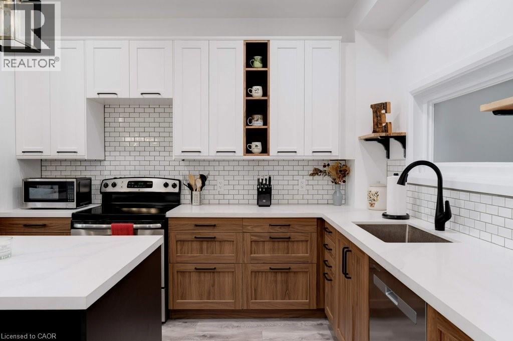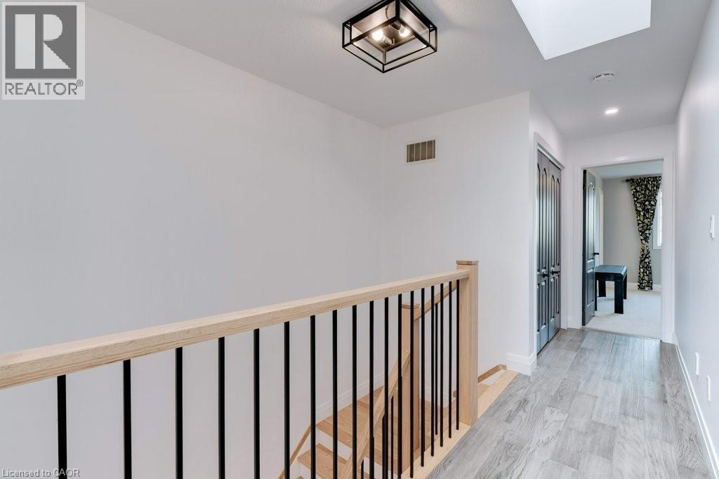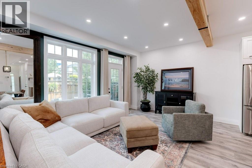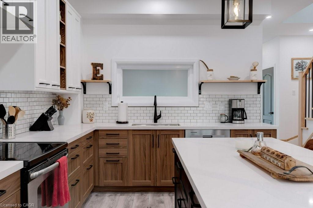 This beautifully upgraded freehold townhome in the heart of Waterdown delivers an exceptional blend of modern design, everyday comfort, and unbeatable convenience. Bathed in natural light, the home feels bright and inviting throughout, with a striking central skylight that fills the upper level with warmth. Completely renovated with permits in 2022, the thoughtfully reimagined layout offers seamless open-concept living that effortlessly connects indoor and outdoor spaces—ideal for both family life and entertaining. At the centre of the home is a stunning custom kitchen, completed in 2023, combining style and functionality with high-end finishes. A handcrafted hickory-clad beam adds character, while the custom staircase and railings create a standout architectural feature. Organization is elevated with built in custom California Closets installed in every bedroom and the upper-level laundry area, ensuring practical, well-designed storage throughout. Extensive upgrades provide both comfort and peace of mind, including a new roof in 2023 with a 40-year warranty, updated flooring, carpet, trim, and fresh paint. Roxul Safe ’n’ Sound insulation has been added to the main floor ceiling, interior walls, and party walls for enhanced privacy and quiet. The ducts and furnace were professionally cleaned in 2023, completing the home’s comprehensive list of improvements. Outside, professionally landscaped yard feature low-maintenance turf in the back, offering year-round greenery with minimal upkeep. Perfectly situated close to schools, parks, trails, the YMCA, shopping, dining, and vibrant downtown Waterdown, this home also provides quick access to Aldershot GO Station and major highways including the QEW, 403, 407, and Highway 6. Stylish, turnkey, and impeccably maintained, this is a rare opportunity to own in one of Waterdown’s most sought-after communities. Don’t be TOO LATE*! *REG TM. RSA. (id:4555)