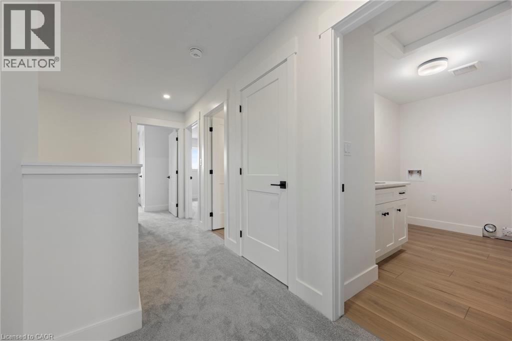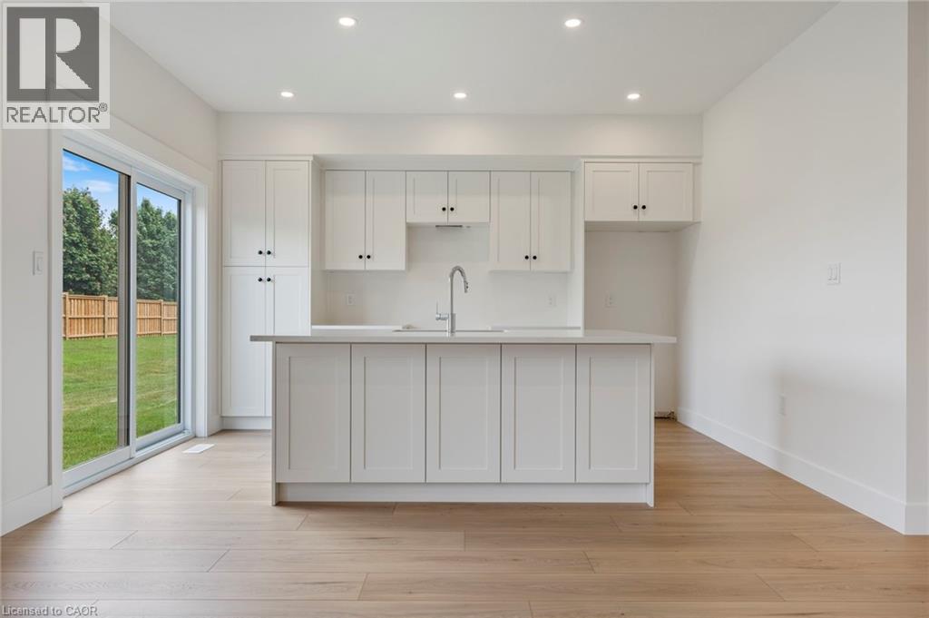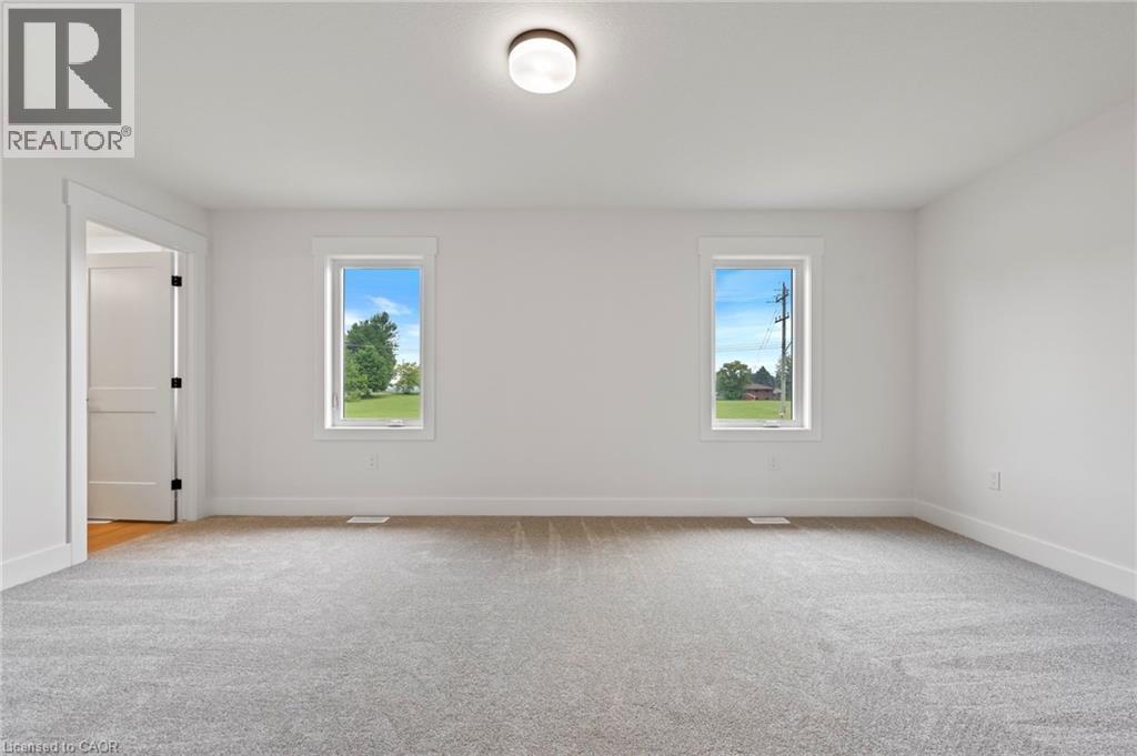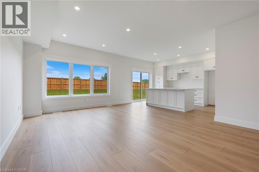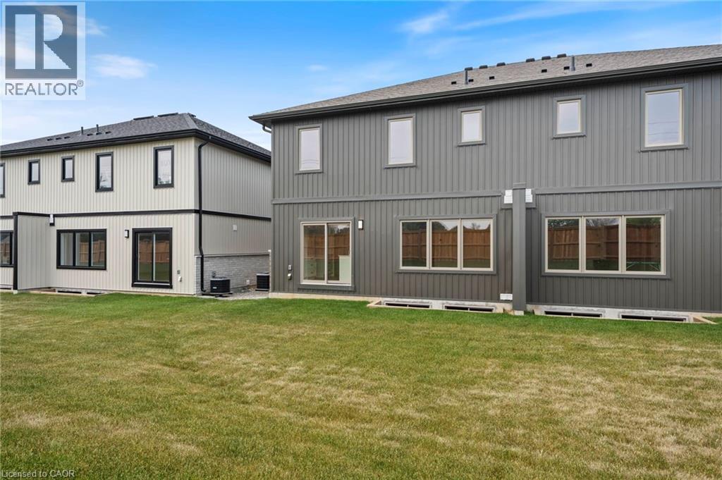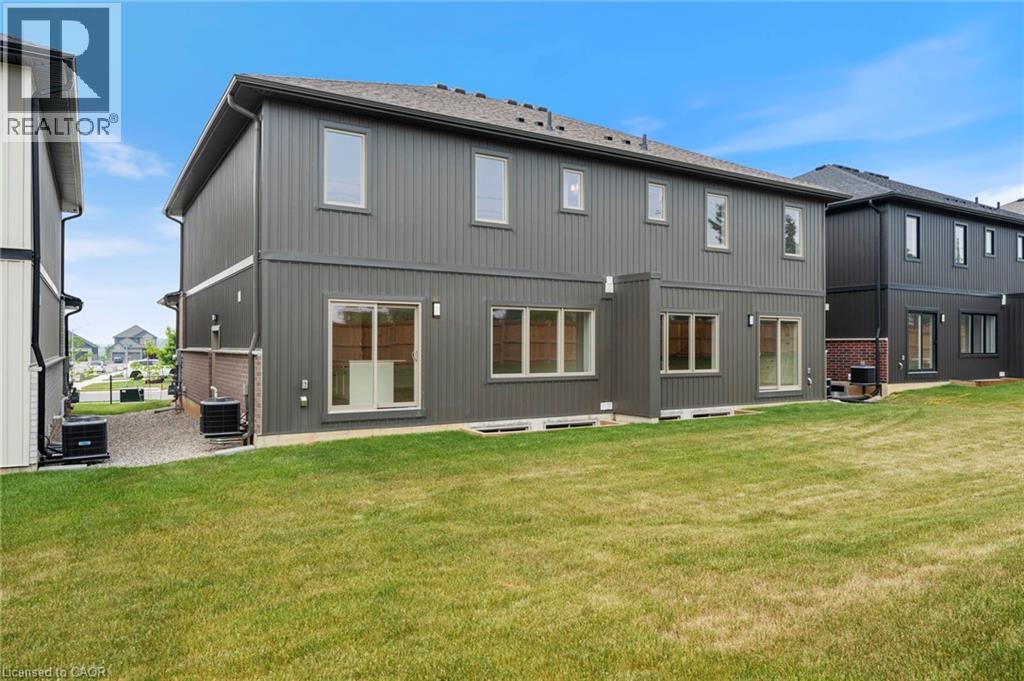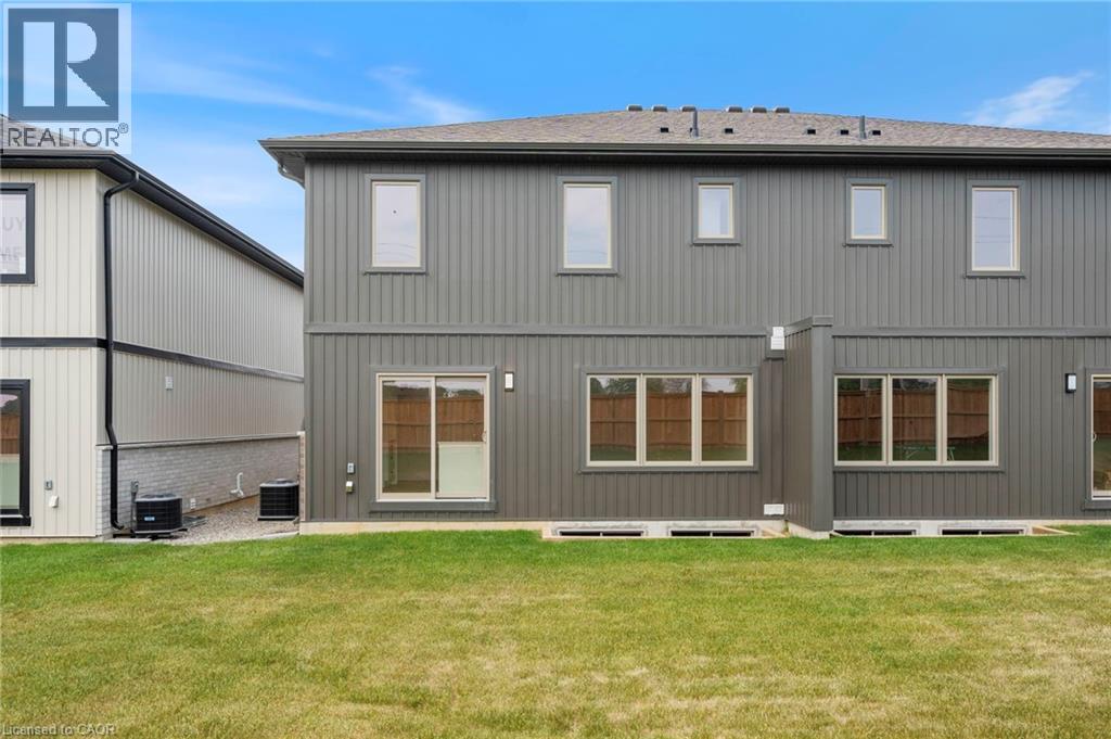 Potential Legal Suite with Framed Basement – Fall in love with this stunning semi-detached 2-storey home located in the Villages of Waterford subdivision in Waterford! Boasting 1,775 sq ft of thoughtfully designed living space, this home features a spacious 3-bedroom, 2.5-bath layout with upstairs laundry and an attached double-car garage. Step inside from the covered front porch into a bright foyer leading to an open-concept kitchen, dining nook, and great room. The kitchen is a chef’s dream, complete with custom cabinetry, quartz countertops, island with breakfast bar, pantry, pot/pan drawers, pull-out garbage/recycle bins, and soft-close doors/drawers. Durable luxury vinyl plank flooring runs throughout the main floor, upstairs bathrooms, and laundry room. The primary suite includes a 4-piece ensuite with tub/shower combo and a walk-in closet, while 9 ft ceilings on the main floor and 8 ft ceilings in the basement create an open, airy feel throughout. The basement is partially developed, featuring in-floor heating and the potential for a 1-bedroom legal suite, ideal for rental income or multi-generational living. The home also offers modern comforts such as central air, tankless hot water, programmable thermostat, fibre optic internet, and rough-ins for central vacuum and contemporary lighting. Outside, enjoy landscaped front and rear yards, fenced rear yard, durable brick, stone, and vinyl exterior, and ample parking with an 8 ft garage door plus driveway space for 2 additional cars. Conveniently located near schools, shopping, and grocery stores, this home is perfect for families or investors alike. Down has been framed for a future 1 bedroom and one bath suite. New construction, modern features, and endless possibilities – welcome home! Licensed Salesperson in the Province of Ontario has interest in Vendor Corp. (id:4555)
