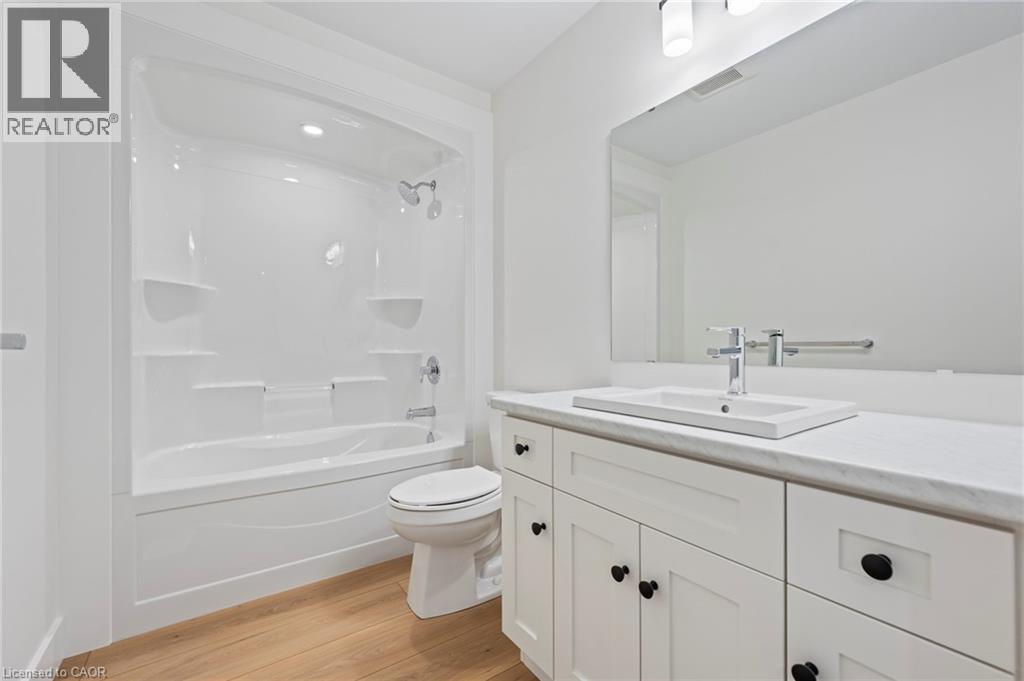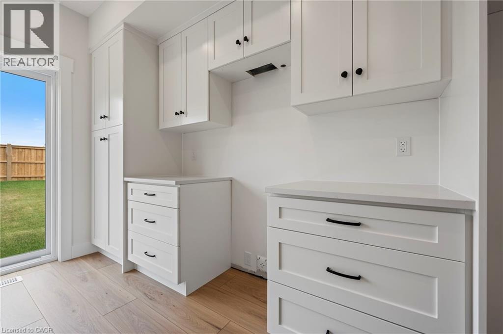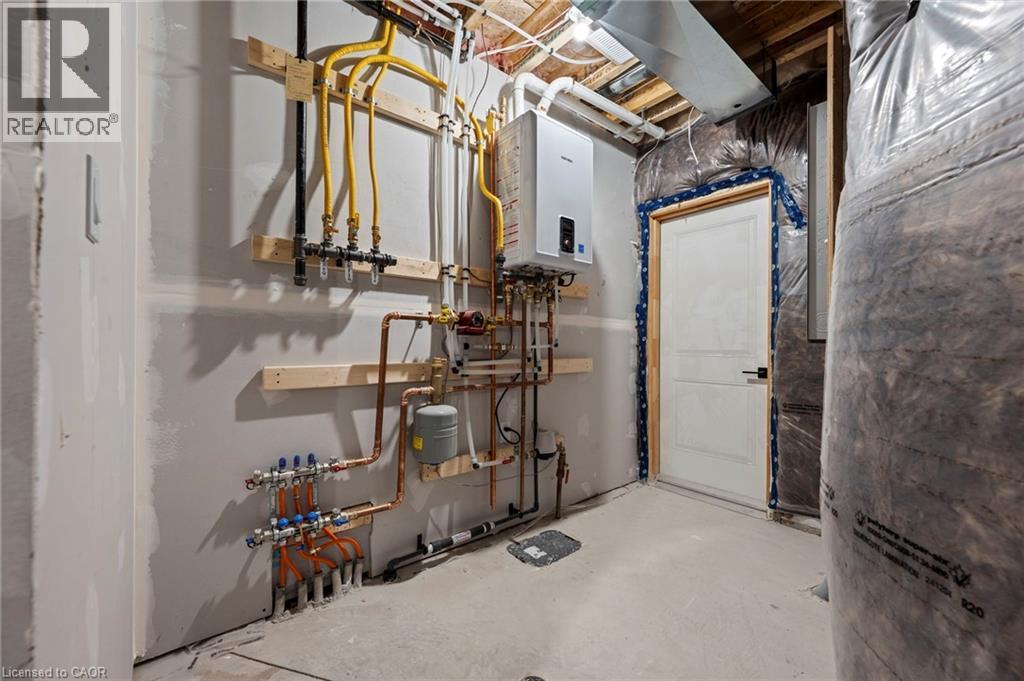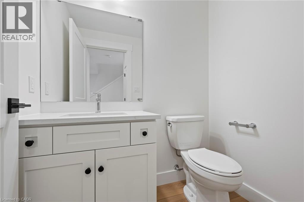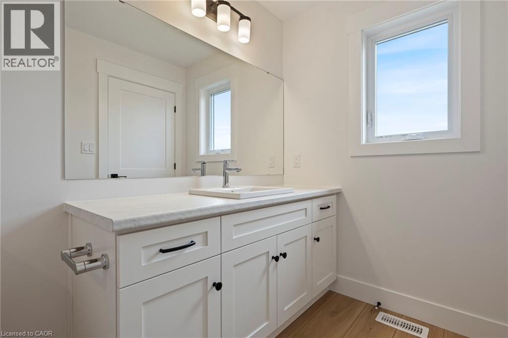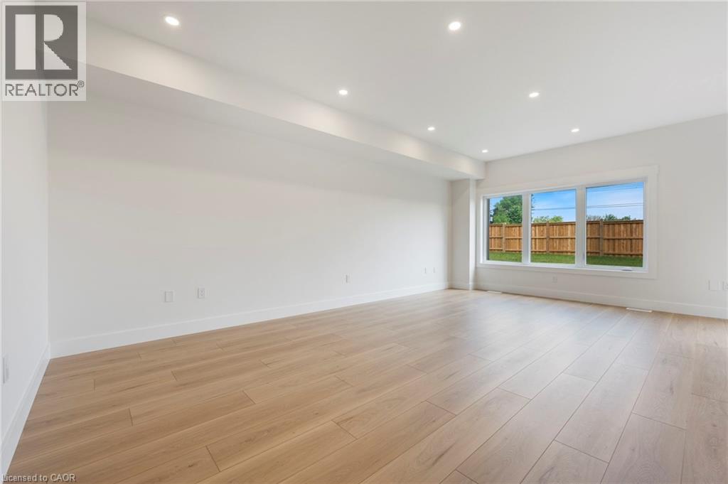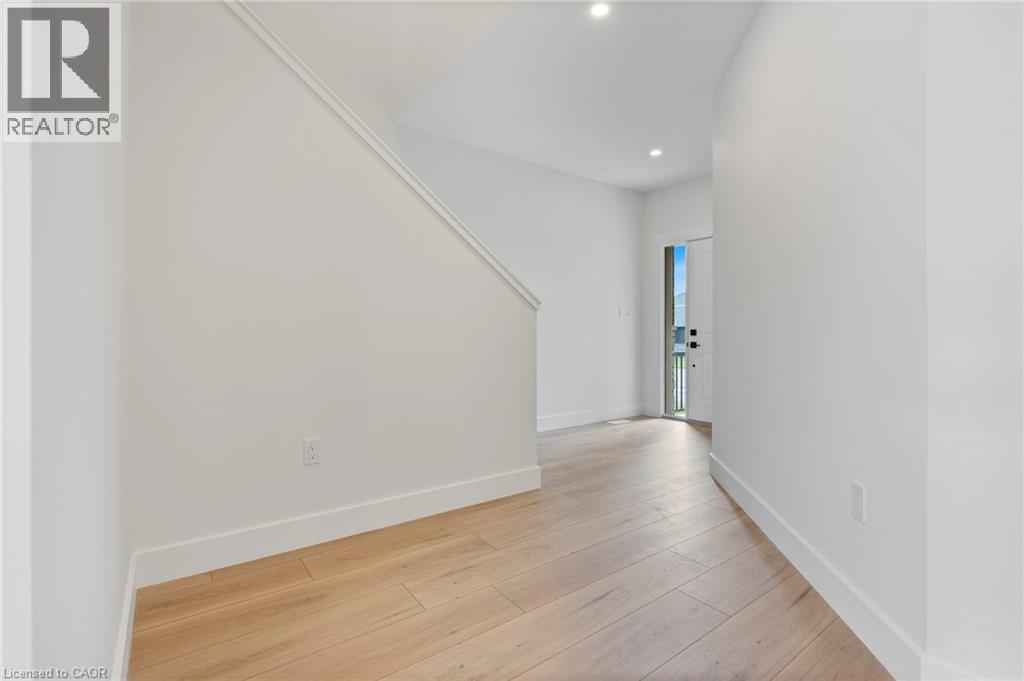 Potential Legal Suite with Framed Basement – Fall in love with this stunning semi-detached 2-storey home located in the Villages of Waterford subdivision in Waterford! Boasting 1,775 sq ft of thoughtfully designed living space, this home features a spacious 3-bedroom, 2.5-bath layout with upstairs laundry and an attached double-car garage. Step inside from the covered front porch into a bright foyer leading to an open-concept kitchen, dining nook, and great room. The kitchen is a chef’s dream, complete with custom cabinetry, quartz countertops, island with breakfast bar, pantry, pot/pan drawers, pull-out garbage/recycle bins, and soft-close doors/drawers. Durable luxury vinyl plank flooring runs throughout the main floor, upstairs bathrooms, and laundry room. The primary suite includes a 4-piece ensuite with tub/shower combo and a walk-in closet, while 9 ft ceilings on the main floor and 8 ft ceilings in the basement create an open, airy feel throughout. The basement is partially developed, featuring in-floor heating and the potential for a 1-bedroom legal suite, ideal for rental income or multi-generational living. The home also offers modern comforts such as central air, tankless hot water, programmable thermostat, fibre optic internet, and rough-ins for central vacuum and contemporary lighting. Outside, enjoy landscaped front and rear yards, fenced rear yard, durable brick, stone, and vinyl exterior, and ample parking with an 8 ft garage door plus driveway space for 2 additional cars. Conveniently located near schools, shopping, and grocery stores, this home is perfect for families or investors alike. Down has been framed for a future 1 bedroom and one bath suite. New construction, modern features, and endless possibilities – welcome home! Licensed Salesperson in the Province of Ontario has interest in Vendor Corp. (id:4555)