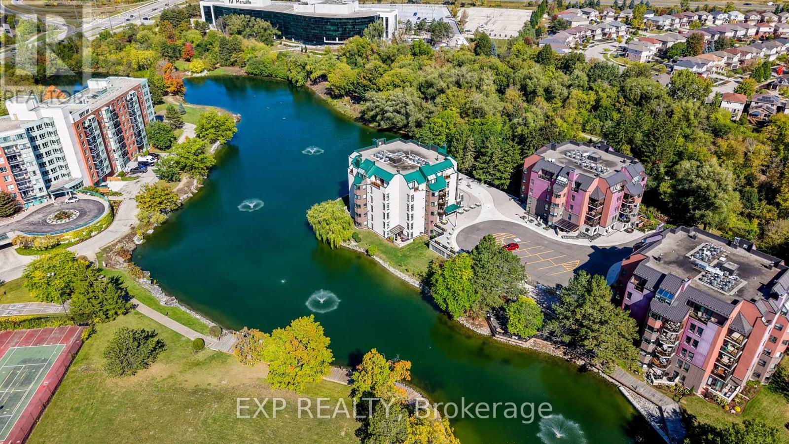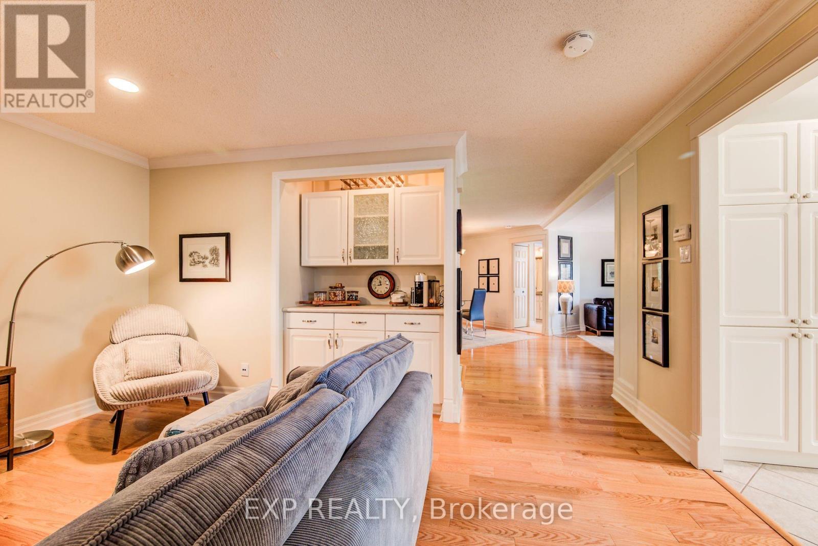This beautifully maintained 1,760 sq ft condo at 54 Blue Springs Drive, Unit 41 offers a rare opportunity to own in one of Waterloos most peaceful and picturesque communities. Designed for comfort and flow, the open-plan layout boasts multiple living and dining spaces, perfect for entertaining or quiet evenings by the fireplace. Oversized windows flood the space with natural light and showcase stunning views of the surrounding pond and forested trails. The thoughtfully designed galley kitchen features white cabinetry, granite countertops, and a stylish tile backsplash. Step out to the private balcony and enjoy coffee or cocktails while surrounded by birdsong and gentle breezes. With two spacious bedrooms, two bathrooms, and in-suite laundry, this home offers the ideal balance of style and practicality. The well-managed building includes underground parking, a storage unit, guest parking, BBQ area, and private trails, all on a beautifully landscaped property with water features. This is the ideal lifestyle for downsizers, professionals, or anyone seeking low-maintenance, nature-connected living without compromise. (id:4555)