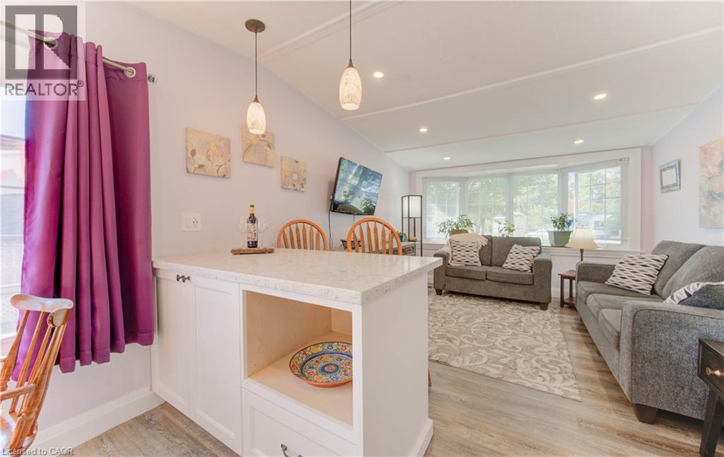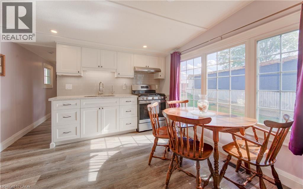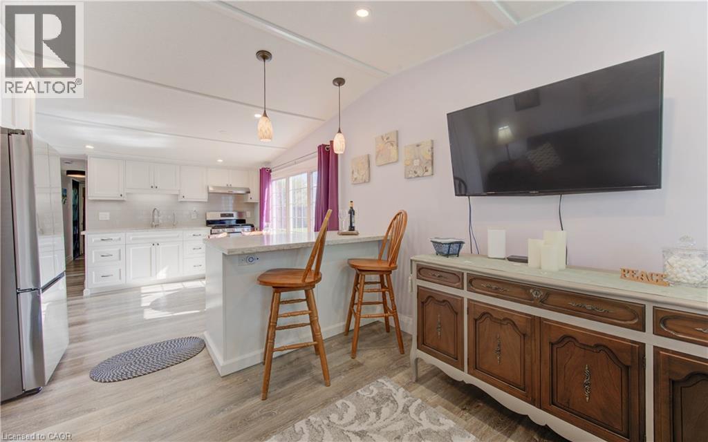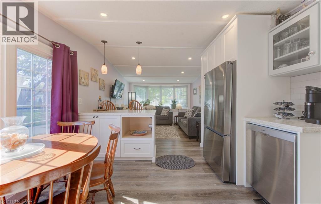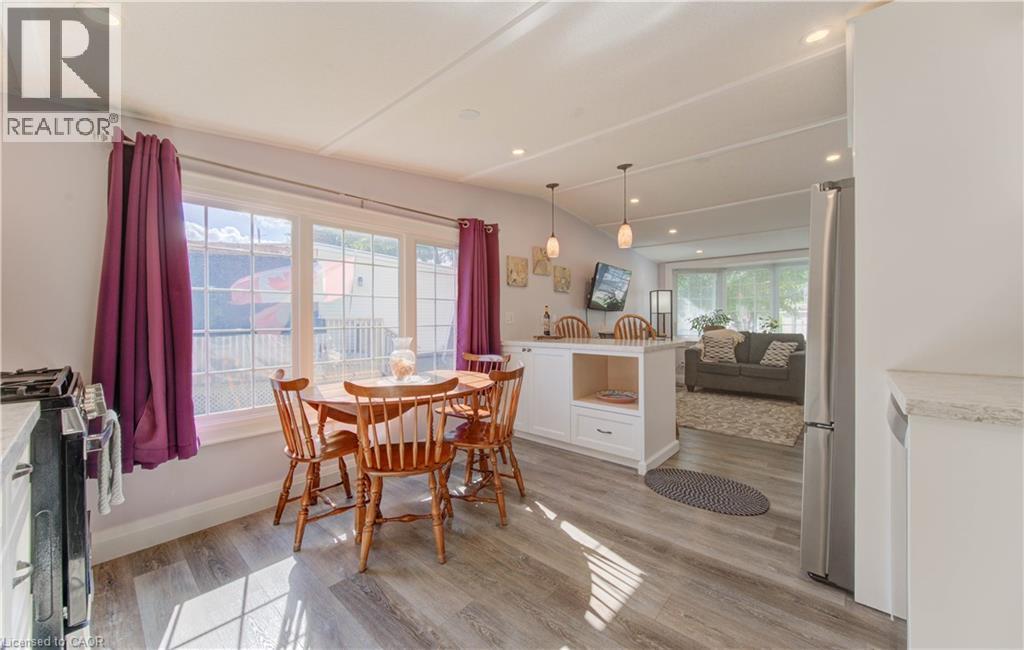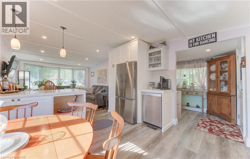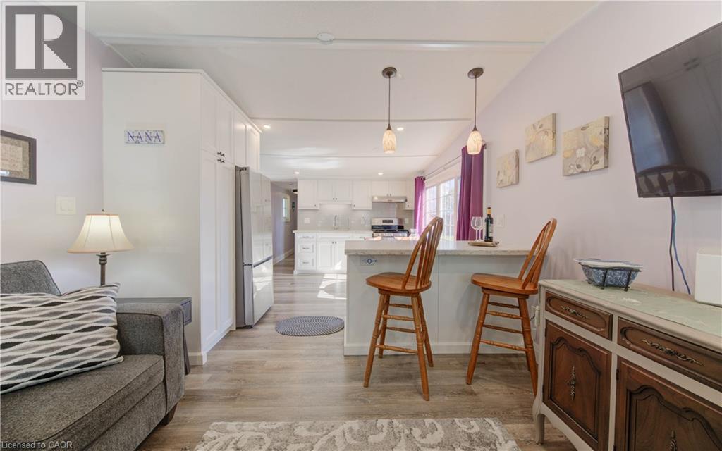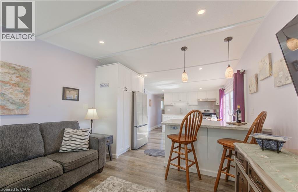 Incredible opportunity to live close to nature, in this updated and cozy home. Perfect for anyone that wants outdoor space and affordable year-round living. This lovely 2 Bedroom, fully winterized mobile home offers all the comforts and so much more than condo living. With parking for 2 and a gorgeous 10 x 30 deck (2 yrs) to relax on, you CAN have it all. Upgrades since 2021 include renovated open concept kitchen and living room, trim, pot lights, laundry and bathroom with double sink and walk-in glass shower. The kitchen boasts gas stove, tile backsplash, granite counters and breakfast bar. The living room is beautiful with Bay windows overlooking the shady front yard and gardens. With full-size washer/dryer, and a primary bedroom fully customized closet organizers and built ins, there is ample storage. The yard has multiple sheds for storing belongings and a wonderful community surrounding it. (front door 2024) roof (May 2025) Reverse Osmosis (R.O.) Water System installed Close to expressway for easy commuting Minutes from the vibrant St. Jacobs Market and local amenities (id:4555)