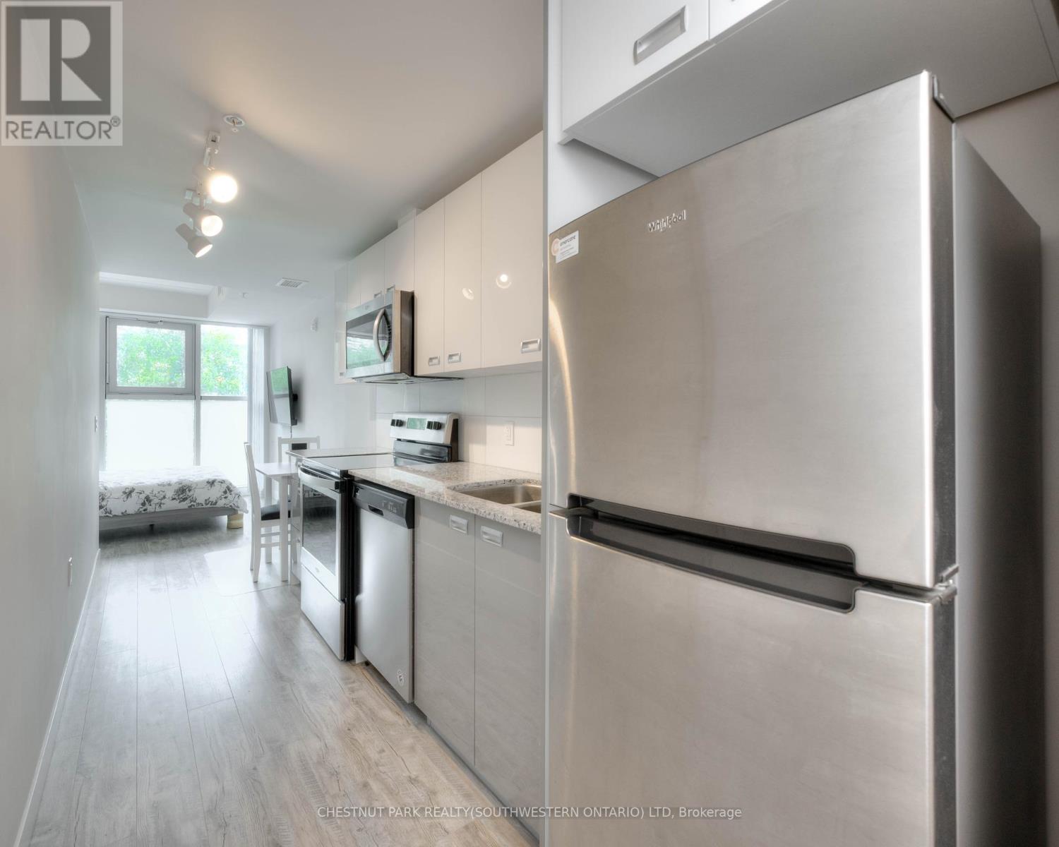 Chic Studio Condo in Prime Location Ideal for Students and Minimalists! Discover the perfect blend of style and convenience in this compact yet highly functional studio condo. Thoughtfully designed for the minimalist lifestyle, this unit includes modern in-suite laundry, sleek stainless steel appliances, and access to an array of top-tier amenities like a gym, roof top patio and study area all within a centrally located building. Situated just a short stroll from both Laurier University and the University of Waterloo, this condo offers unbeatable proximity to everything students could wish for cafes, shops, entertainment, and more. Fully furnished, this unit is truly turnkey, allowing you to move in immediately. With low condo fees that cover Internet, Water, Heat, and AC, this is an exceptional value. Plus, a quick closing is available, making it an ideal choice for those looking to settle before the next school term. Don't miss this opportunity to experience Waterloo living at its finest! (id:4555)