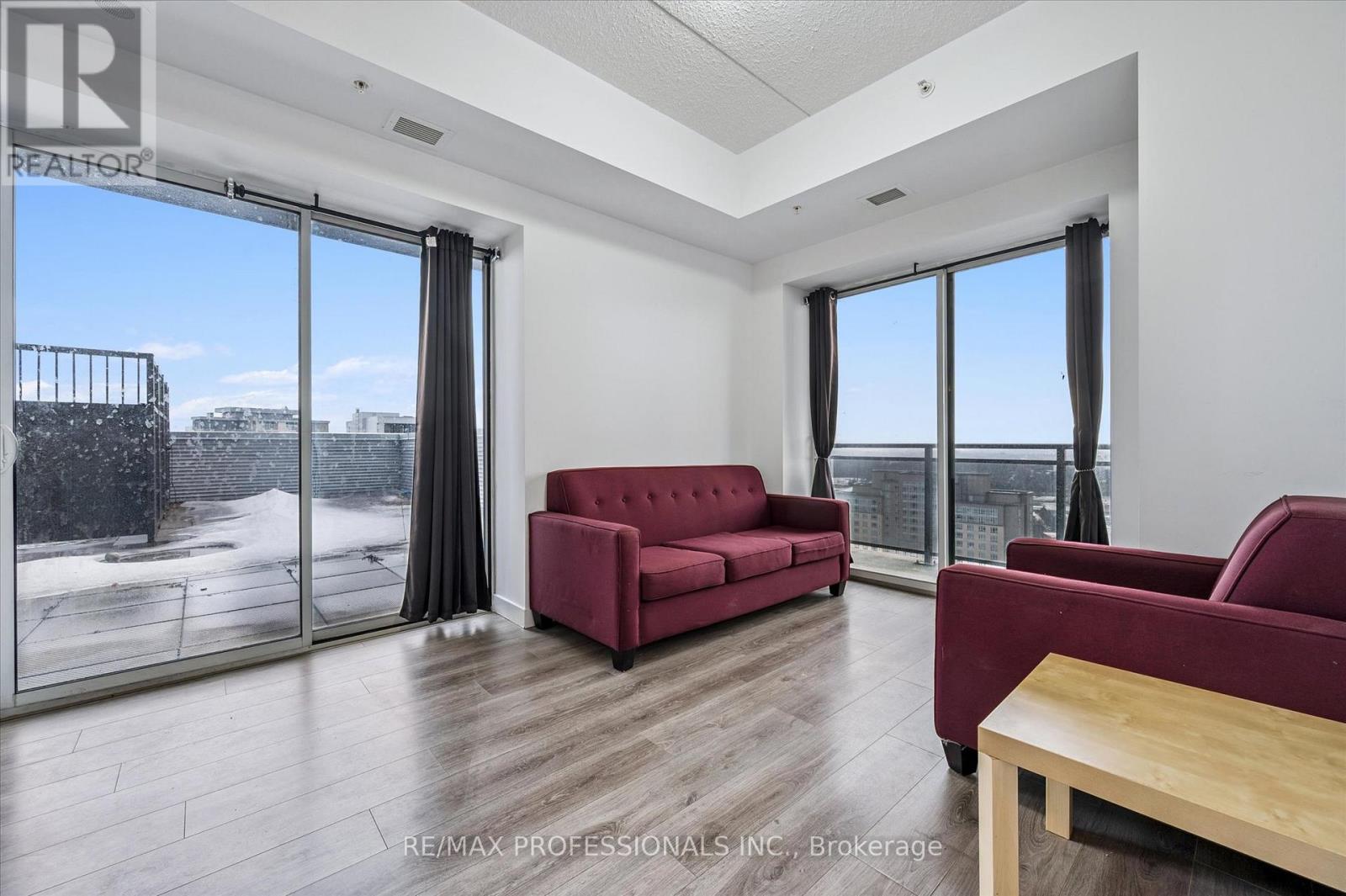 Welcome to this bright and spacious 2-bedroom plus den corner unit, featuring an incredible private terrace that truly gives the feel of penthouse-style living. The home offers two well-sized bedrooms, along with a large den that can easily function as a third bedroom or home office, providing excellent flexibility. Situated in the highly desirable University District, you're just a short walk to the University of Waterloo, Wilfrid Laurier University, transit, restaurants, and everyday conveniences. This well-designed suite features 2 full bathrooms, a walkout to the private terrace from the living room, an additional balcony off the living room, and a walkout balcony from the primary bedroom-ideal for enjoying outdoor space from multiple areas of the unit. The kitchen includes stainless steel appliances and an island with breakfast bar, perfect for everyday living and entertaining. Residents can enjoy excellent building amenities, including a fitness center, meeting area, and party room. This beautiful corner unit, with its rare combination of multiple outdoor spaces and a versatile layout, offers outstanding value in one of Waterloo's most sought-after locations. ***One underground parking space is available for an additional cost. (id:4555)