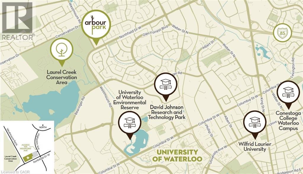 ARBOUR PARK - THE TALK OF THE TOWN! Presenting new stacked townhomes in a prime North Waterloo location, adjacent to the tranquil Laurel Creek Conservation Area. Choose from 8 distinctive designs, including spacious one- and two-bedroom layouts, all enhanced with contemporary finishes. Convenient access to major highways including Highway 85, ensuring quick connectivity to the 401 for effortless commutes. Enjoy proximity to parks, schools, shopping, and dining, catering to your every need. Introducing the Holly 2-storey model: experience 1427sqft of thoughtfully designed living space, featuring 2 spacious bedrooms + den, 2.5 bathrooms with modern finishes including a primary ensuite, and a private balcony. Nestled in a prestigious and tranquil mature neighbourhood, Arbour Park is the epitome of desirable living in Waterloo– come see why! ONLY 10% DEPOSIT. CLOSING 2026! (id:4555)