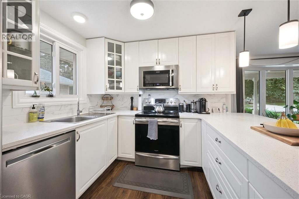 Stunning Legal Duplex Bungalow on a highly sought after Crescent in Waterloo! This extensively renovated property is the perfect addition to any investment portfolio. Featuring two fully updated units, including a legal basement apartment completed with permits in 2020 — this investment property offers both style and practical design. With fully separate heating and cooling systems for each unit and independent gas and hydro meters, tenants will pay and gas and hydro and landlord covers water. The upper unit boasts 3 bedrooms and 1 bathroom, with a bright and open concept layout. The kitchen is a showstopper with quartz countertops, stainless steel appliances, and a breakfast bar with seating that opens to the family and dining rooms. The lower unit offers 1 bedroom plus a den, complete with individual heating controls for each room, wall-mounted AC, and a gas fireplace. The kitchen provides generous storage and countertop space plus a breakfast bar. Metal roof plus both units feature in-suite laundry and a double-wide driveway with parking for up to 6 vehicles. The large fully fenced lot features a spacious wood deck for tenants to enjoy and total privacy in the backyard with mature trees plus a car port Located in one of Waterloo’s most desirable neighbourhoods, just steps from transit, close to expressway access, parks, green space, shopping, and all amenities. The upper unit is occupied by an exceptional AAA+ tenant and the lower unit is ready for your own tenant selection or personal use! (id:4555)