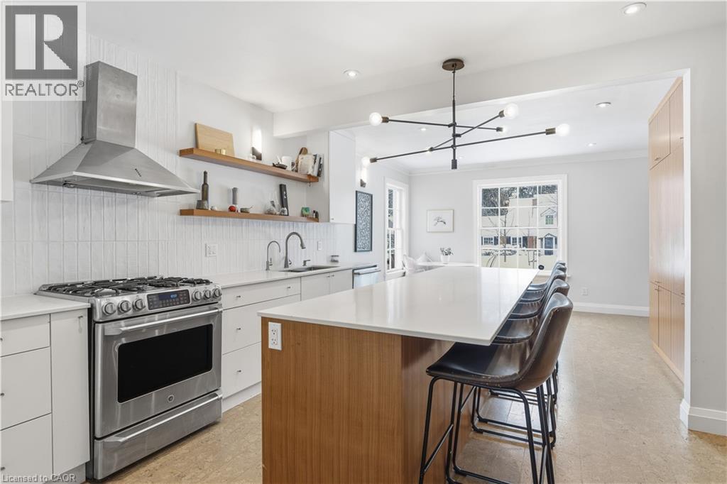 A rare offering in a prime Olde Westmount location, this beautifully renovated home sits on an exceptional 70 ft x 250 ft private, tree-lined lot with no visible neighbours. Offering over 2700 square feet of total living space, the home is thoughtfully designed for both everyday living and entertaining. The main floor is anchored by a massive, modern kitchen with Elmwood cabinetry featuring eco-conscious materials. The huge windows that flood the space with natural light, loads of counter space with center island make this an exceptional space for entertaining. The formal living room features large windows, built-in bookshelves and wood burning fireplace. This space flows seamlessly to an open-concept spacious dining room ideal for hosting large gatherings. Additional main-floor highlights include a 2-piece powder room and a sunken family room with wood stove and stunning picturesque views of treed backyard. The family room leads directly to a massive 250-foot-deep, private, tree-lined backyard with western sun exposure, offering exceptional outdoor enjoyment. The space easily accommodates a hot tub, two-tier deck, and a generous kids’ play area, while still providing ample room for entertaining and relaxation. The upper level features hardwood flooring throughout and a spacious primary bedroom with a 5-piece ensuite. Two additional generously sized children’s bedrooms, a dedicated kids’ bathroom, and a convenient upper-floor laundry room complete this well-designed second level. The lower level offers additional functional living space, featuring a rec room with a wood-burning fireplace, a 2-piece bathroom, a dedicated home office with windows and ample storage. A unique opportunity to own a move-in-ready home on one of the largest and most private residential lots in the Olde Westmount neighbourhood, close to parks, schools, UpTown Waterloo, LRT, Cigi, Perimeter Institute and Waterloo Park. (id:4555)