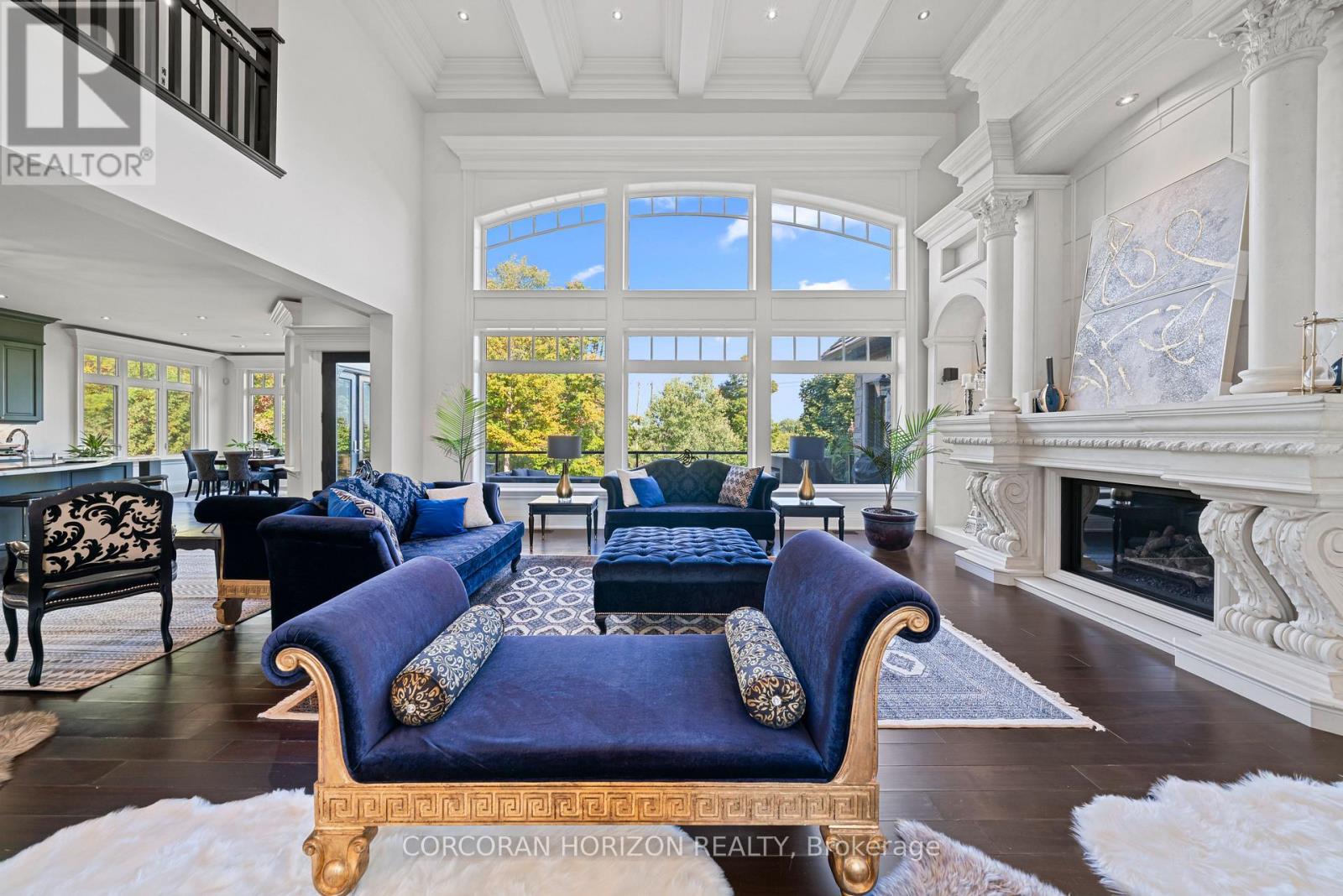 A Masterpiece of Craftsmanship and Permanence! Nestled beside a protected natural landscape with scenic year-round views of the Grand River, 546 Woolwich Place offers artistry, luxury, and privacy. With direct private access to the Grand River Trail from its gated yard, this home stands as a true legacy estate. The exterior features hand-chiseled Indiana limestone, an Enviroshake hurricane-rated roof, and a custom 9' African Mahogany front door. Professionally designed lighting highlights the architecture, while mature landscaping boxwoods, maples, and walnuts thrives under a six-zone irrigation system. Two driveways add rare functionality. Inside, every detail reflects craftsmanship. Solid wood architraves, 9.25" baseboards, and solid wood doors with platinum hardware set the tone. Exotic Red Laurel and Cocobolo hardwood floors flow throughout, anchored by a grand maple staircase with wrought iron railings. Radiant floor heating provides year-round comfort. Elegant plaster crown mouldings, Swarovski Schonbek chandeliers, and natural gas fireplaces enhance the ambiance. The primary suite is a spa-like retreat with book-matched Carrara marble, steam shower with body jets, two-person tub with Rubinet Swarovski crystal fixtures, and a linear fireplace set in Turkish stone. The powder room shines with platinum-infused Italian tiles and Swarovski sconces. A custom cherrywood study, crafted by artisans who built for notable successful Canadians, features 13' coffered ceilings and a Texas Longhorn leather-inset desk. All cabinets throughout the kitchen, laundry, and primary bedroom are Downsview cabinets. Wellness amenities include a Western Red Cedar sauna with cold plunge. A heated 900 sq. ft. triple-car garage with insulated cedar doors, smart home monitoring, and a Viessmann boiler system complete this extraordinary home, where timeless craftsmanship meets modern luxury amid unobstructed river and waterfront views. (id:4555)