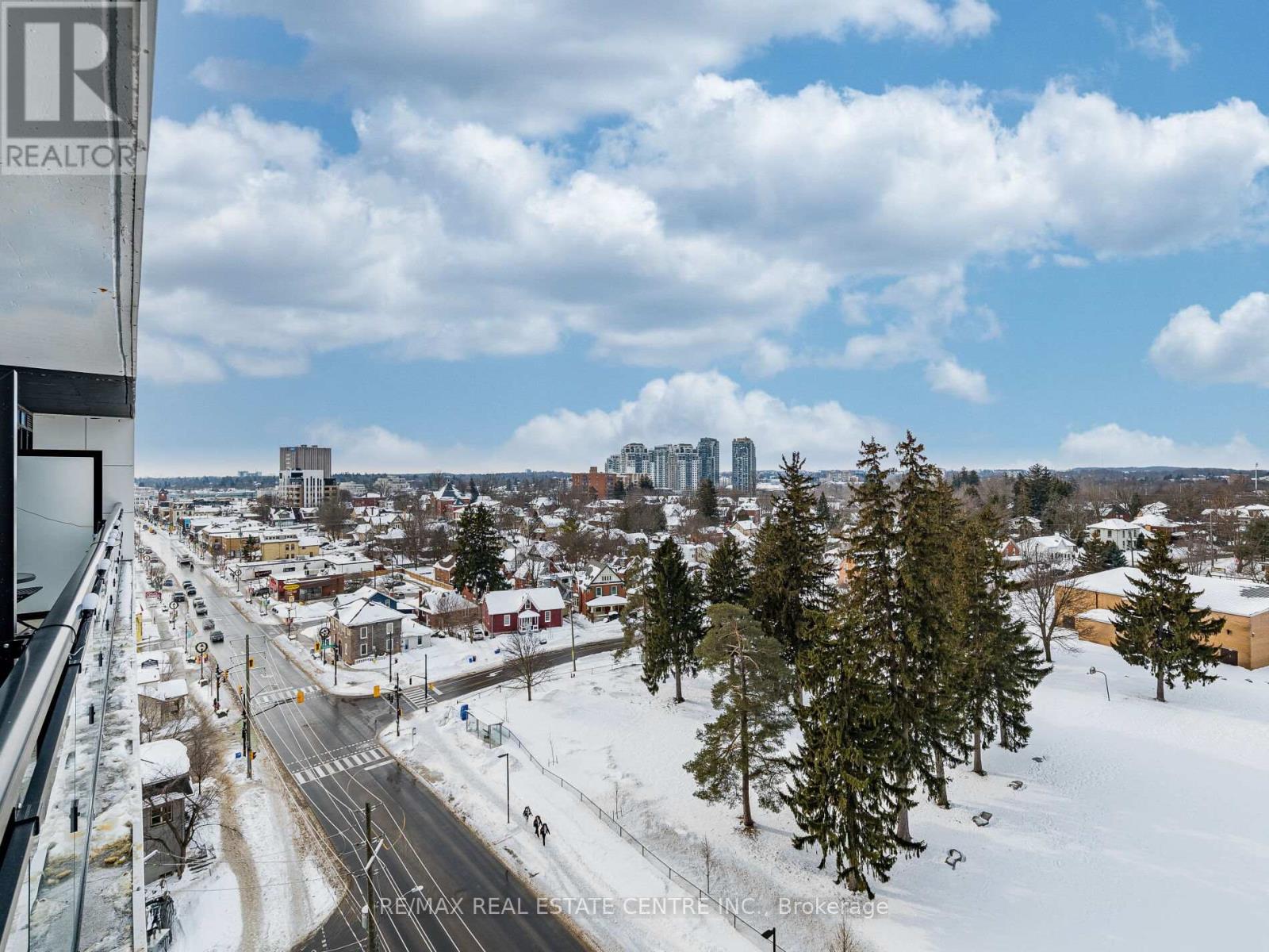 Welcome To One 28 Condos On King Street. This Luxury 1 Bedroom + Den Condo Located Just Minutes From Downtown Waterloo, Wilfrid Laurier, University Of Waterloo & Technology Park. Bright & Open Concept Modern Functional FP With Spacious Living, Dining, Kitchen Area, 9'Ceilings Throughout & Walk Out To Balcony With Unobstructed View. This Unit Also Comes With A Spacious Den That Can Be Converted Into A Second Bedroom. Tenant pays all utilities. Living/Dining & Bedroom photos are virtually stagged. (id:4555)