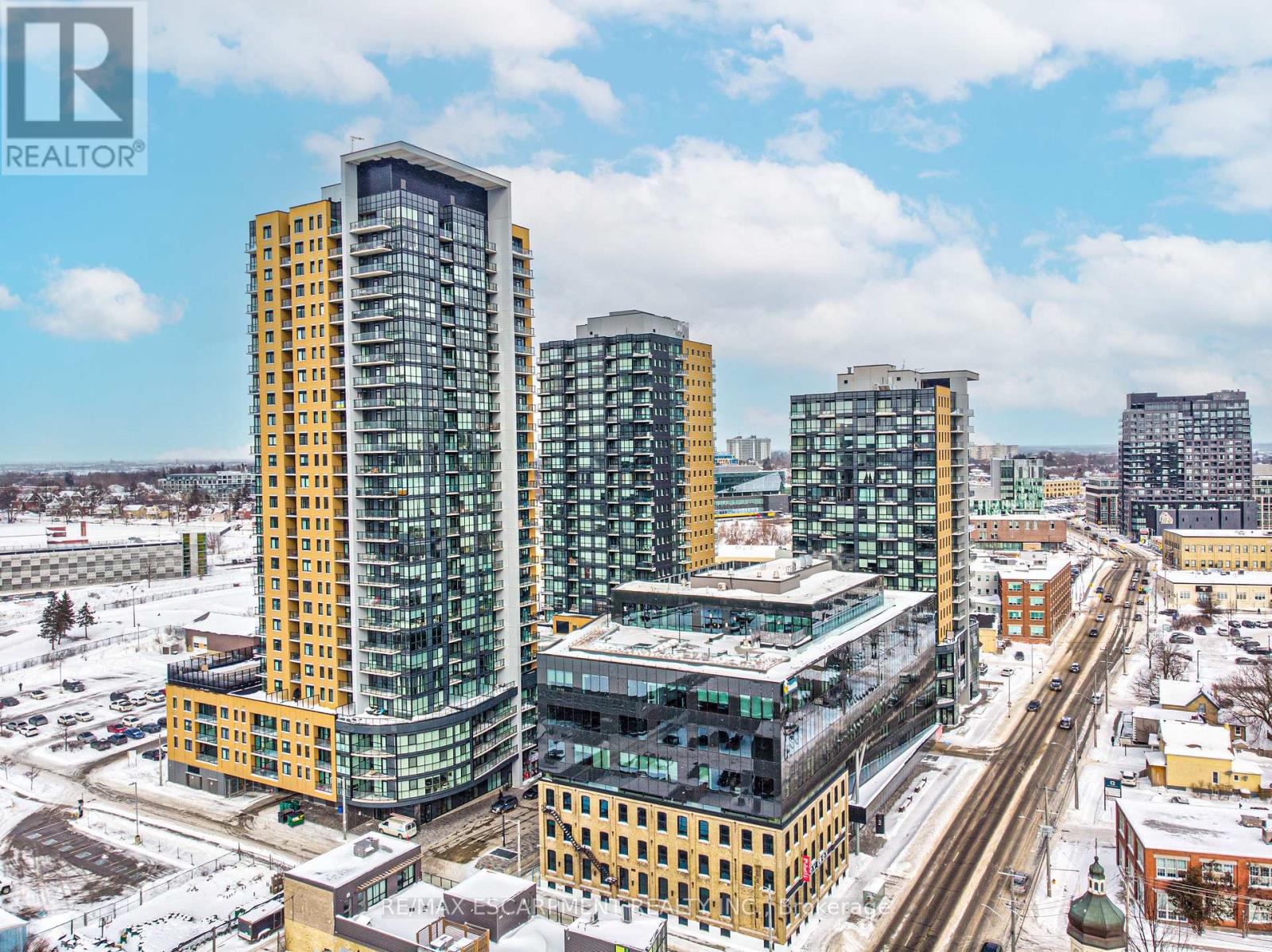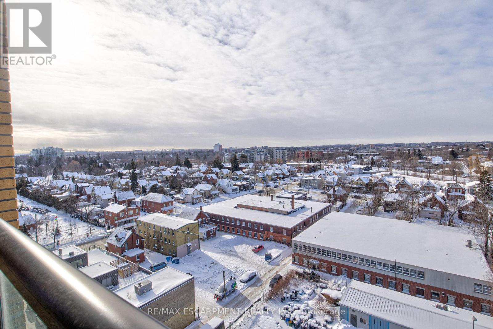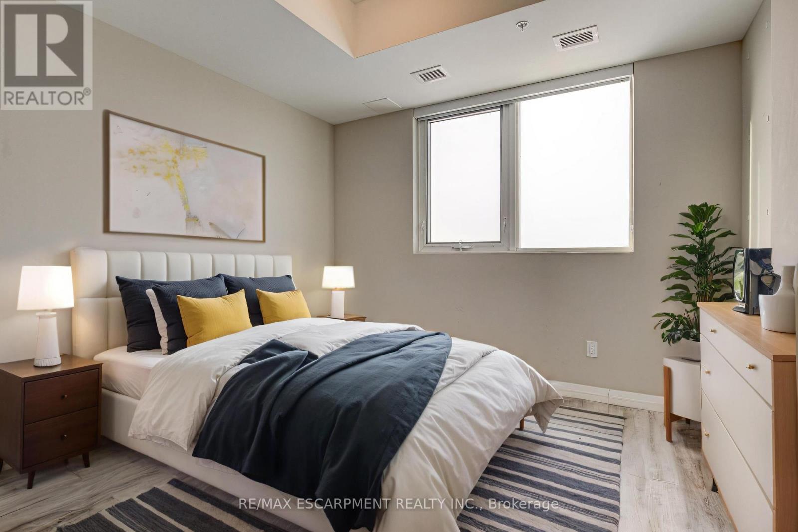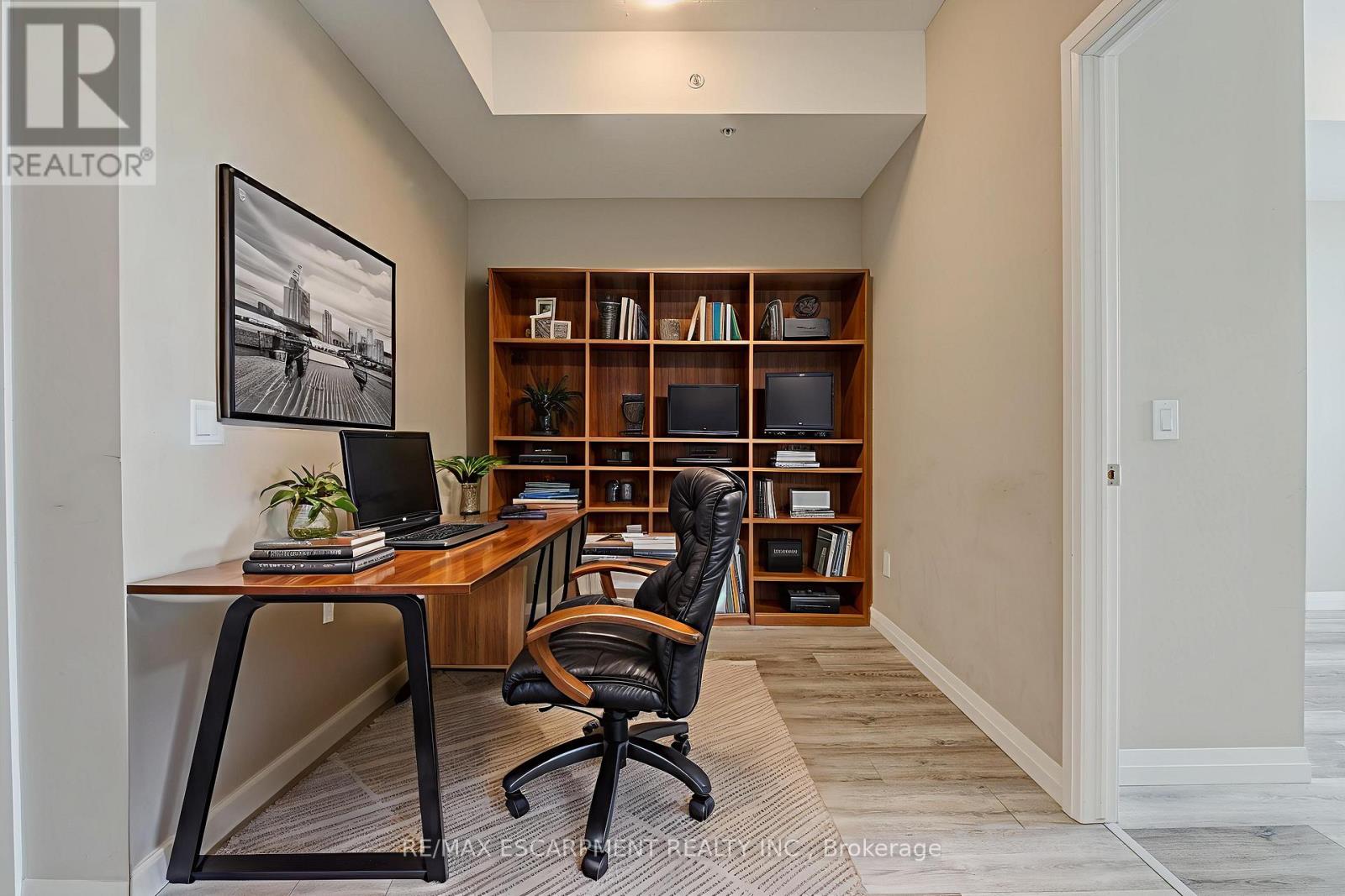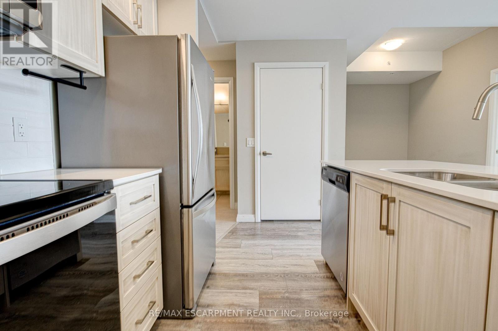 Located just steps to downtown Kitchener and the beautiful Victoria Park, this 1 bedroom plus den condo at 108 Garment Street offers a welcoming place to settle into city living. Completed in 2022, the unit features a practical layout and a kitchen that truly anchors the space.Upgraded appliances and cabinetry, a double sink, dishwasher, and generous counter space make it easy to cook at home, while the extra-long peninsula comfortably seats three to four-ideal for casual meals or hosting friends. The living area flows easily from the kitchen and opens to a private west-facing balcony, offering a quiet place to unwind in the afternoon and evening. The den adds valuable flexibility, working equally well as a home office, extra storage, or cozy reading nook. The bedroom is comfortably sized, and the unit is completed by a contemporary bathroom and the convenience of in-suite laundry. Indoor garage parking for one vehicle and a storage locker are included with the unit. Residents also enjoy access to a well-equipped fitness room, yoga space, party room, and an outdoor terrace featuring a pool, basketball court, BBQ area, and plenty of seating for gathering with friends. Ample visitor parking next door makes hosting easy. With shops, transit, dining, and the tech district just outside your door, this home offers an easy, low-maintenance lifestyle in a central location. (id:4555)