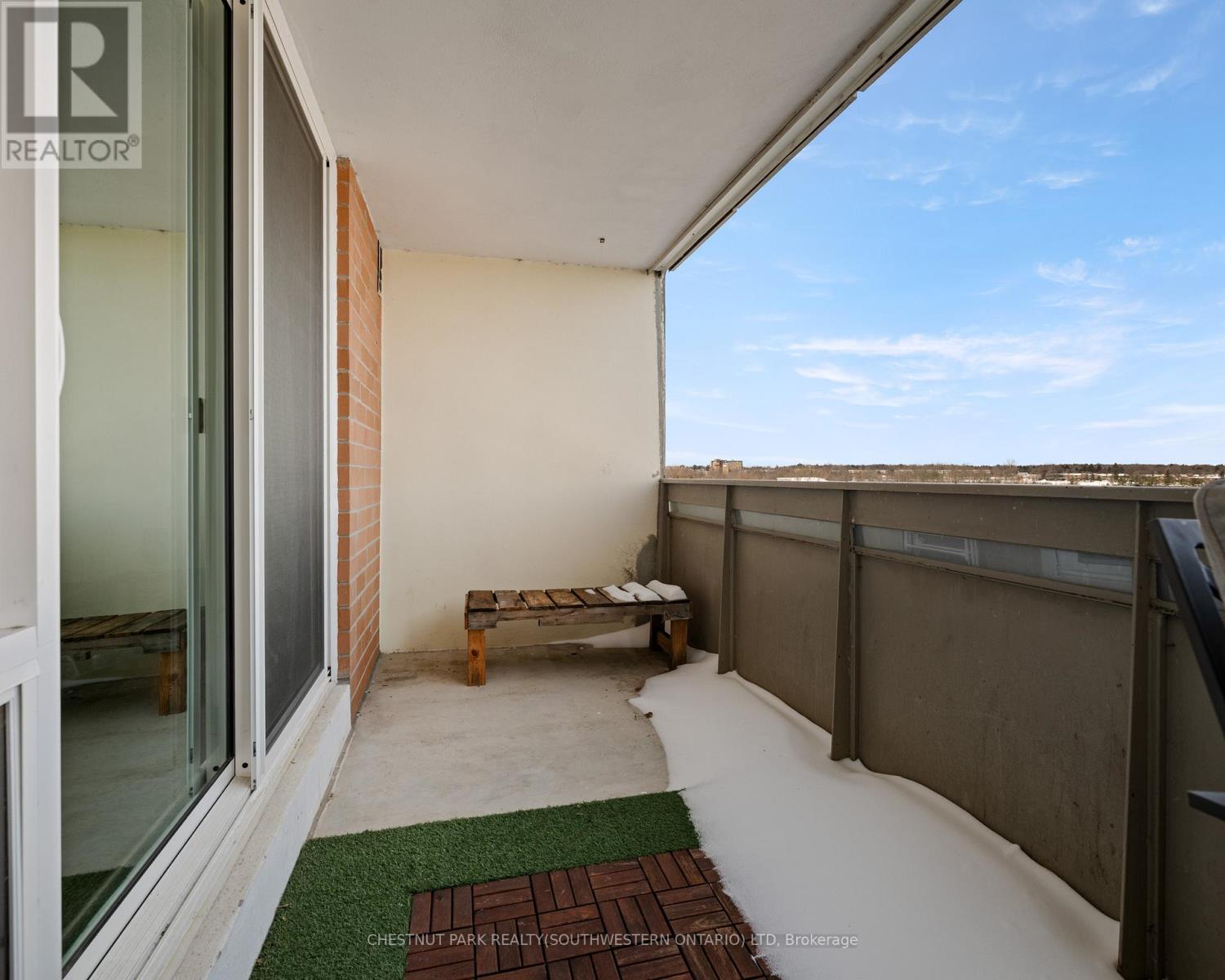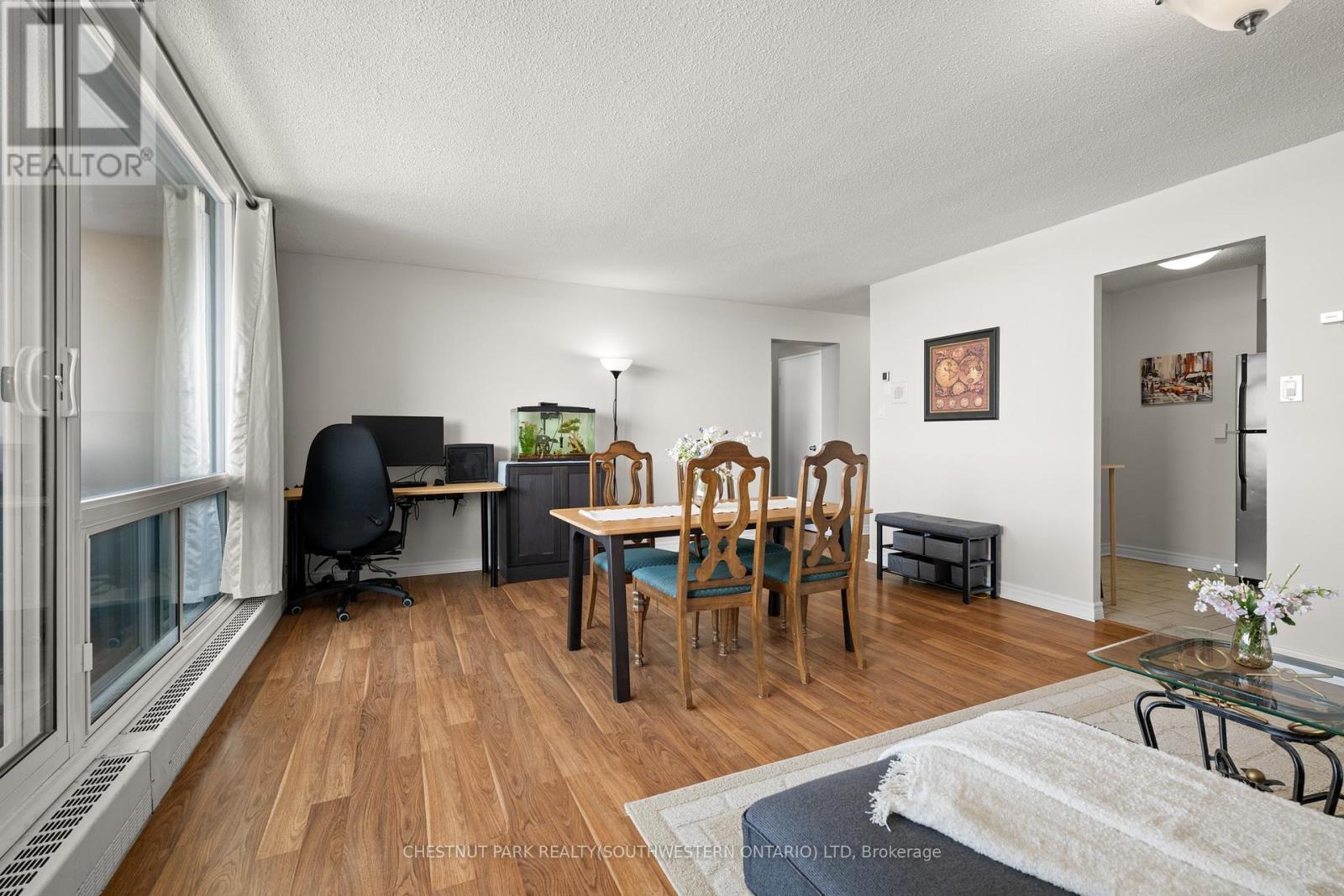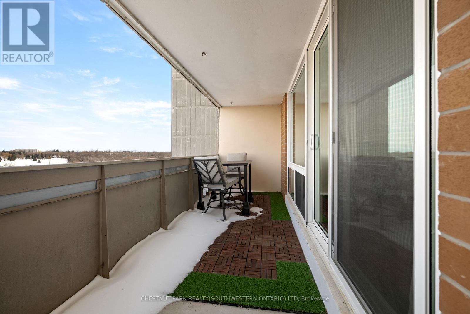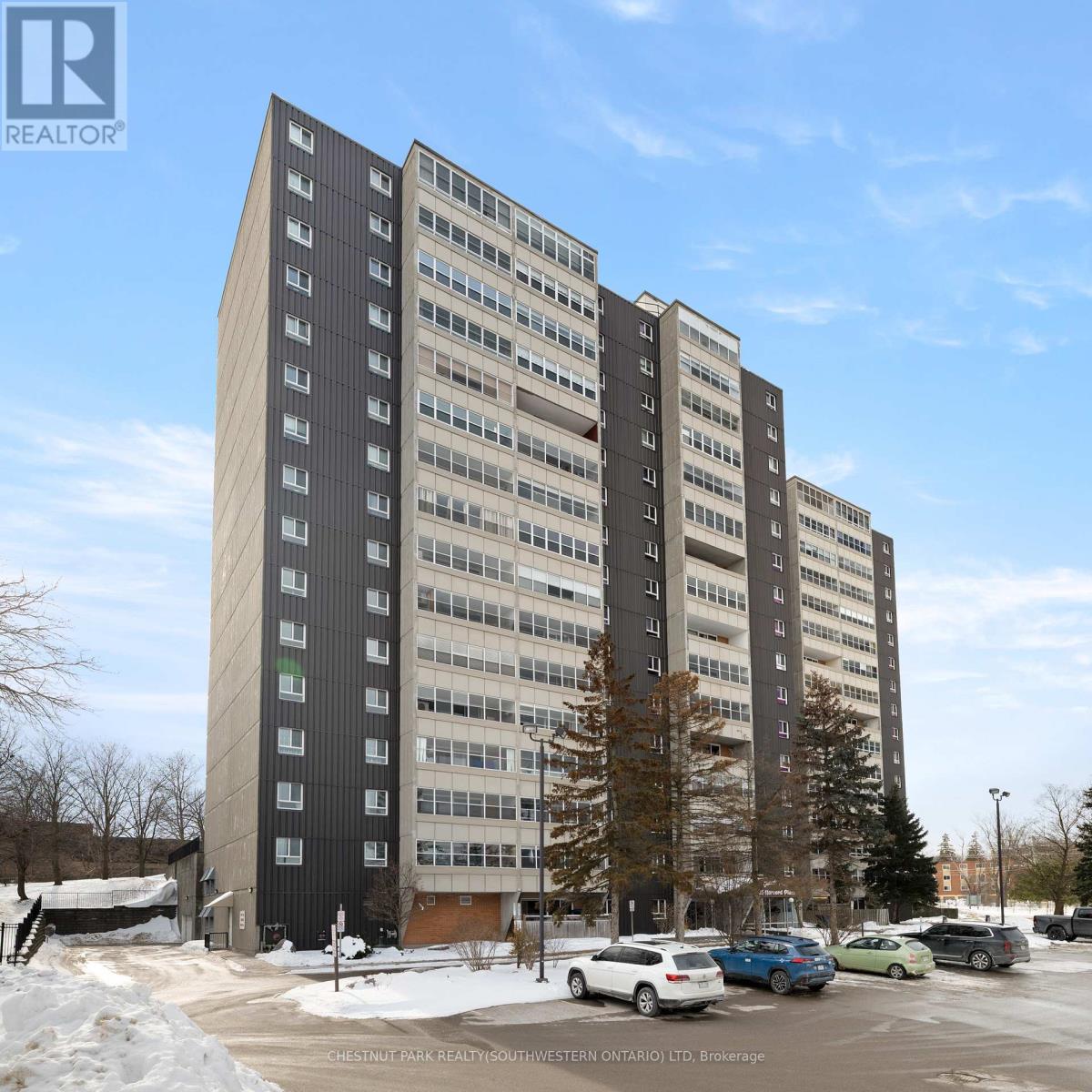 Located on the 10th floor of Bluevale Tower in East Waterloo, this large one-bedroom unit offers northeast views and a comfortable layout. The building is well managed and known for its strong community. It is conveniently located near Glenridge Zehrs, with easy access to the expressway and everyday amenities. While close to the universities, it is not a student-focused building, making it a good fit for professionals or downsizers. All utilities, including hydro, heat, and water, are included in the condo fees, keeping monthly costs predictable. Building amenities include separate men's and women's gyms with saunas, a woodworking shop, a tennis court, and underground parking. The unit has been freshly painted with several updates already completed, offering a move-in-ready option. (id:4555)