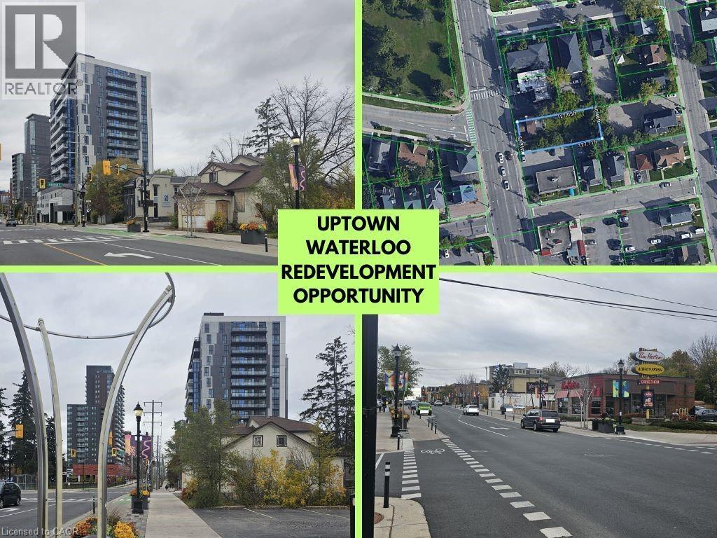 Exceptional Development Opportunity in the heart of Uptown Waterloo! Prime location at the coveted intersection of King Street and Central Street, ideally situated between University Avenue and Bridgeport Road. This 50 ft x 125 ft lot offers outstanding potential for redevelopment with zoning that allows construction up to 18 storeys (U1-60 – Uptown Core). Concept plans (available in attachments) propose an 11-unit building with a total of 41 bedrooms and 3 commercial units on the main level — or bring your own design to take full advantage of this unique zoning. The property is within walking distance to both the University of Waterloo and Wilfrid Laurier University, surrounded by a vibrant mix of retail, dining, and amenities. This is one of the most desirable sites in Waterloo Region, offering excellent exposure, strong growth potential, and ideal suitability for a new commercial or mixed-use development. The existing structure is being sold “as is, where is” and must be demolished by the Buyer. The City of Waterloo has expressed support for new business and redevelopment initiatives in this area. Don’t miss this rare opportunity to secure a premium Uptown Core property with exceptional potential for future growth. (id:4555)